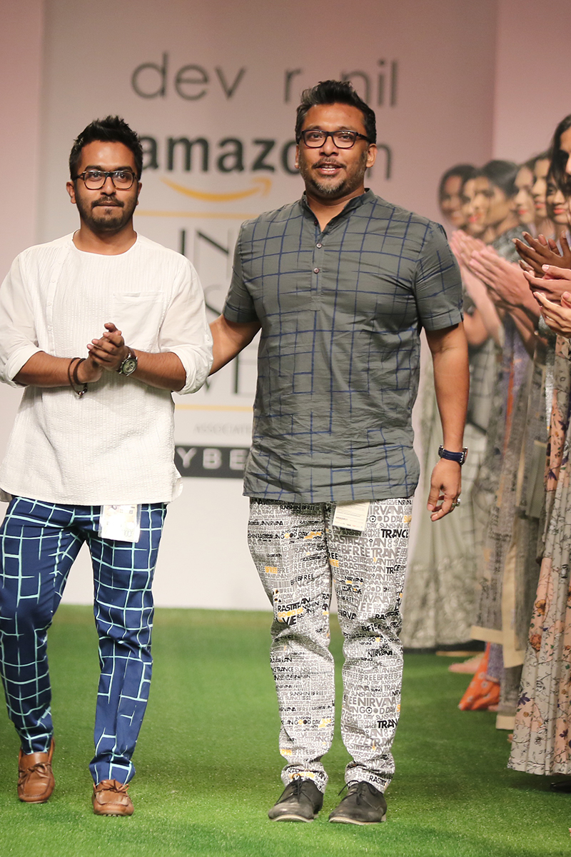 Dev and Nil, fashion graduates from India and Australia respectively, are recipients of ELLE India Magazine Style Awards 2012 for their contribution towards Indian fashion. For the last ten years they are primarily catering to both mens and womens wear in Prêt, diffusion and couture segments. Their menswear designs are the biggest sellers from Eastern India.n ndev r nil stands for contemporary, quirky, quality and a certain amount of timelessness in their appeal. Luxury in textiles, in-house weaves, prints and textures is what they bring about every season.n nThey find fashion in everyday objects; simple yet thoughtful; delicate and layered; styled not to overpower but to compliment.n nTheir clientele includes actors like Sonakshi Sinha, Sonam Kapoor, Vidya Balan, Kajol , Tabu, Deepika Padukone to name a few. n nLast year they launched their first flagship Store at an old warehouse located in 144, Remount Road, Alipore, Kolkata which melds the modern, industrial and Art Deco styles. With that they have gone into interior designing and curating various art event; Thakur Dalan for the Neotias being one of them. Soon a pub designed by them is coming up in the heart of Kolkata. n nFilm costume is another passion they are taking very seriously starting from Onirs I Am to the just released period piece Shesher Kobita which has received a lot of critical acclaim specially for the costumes .n