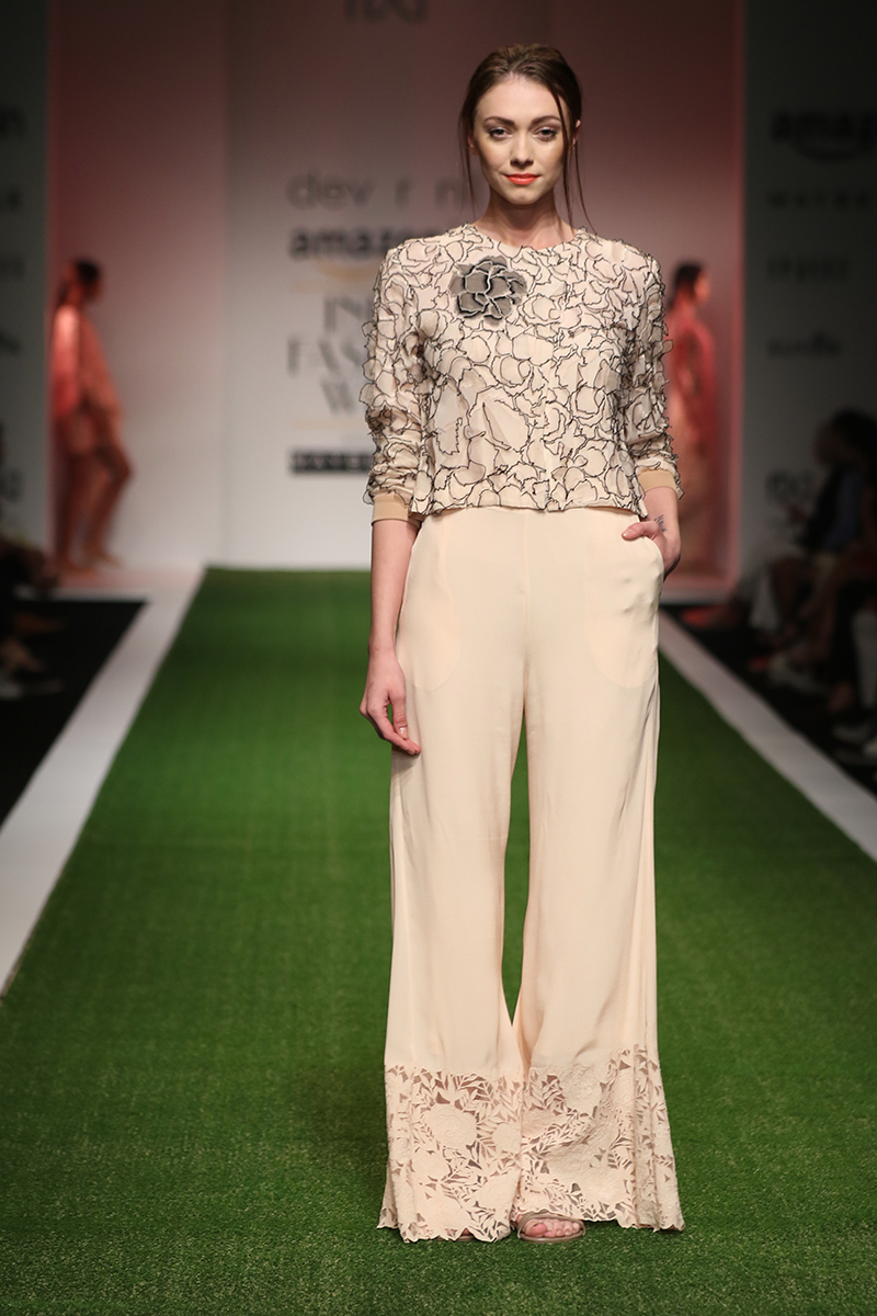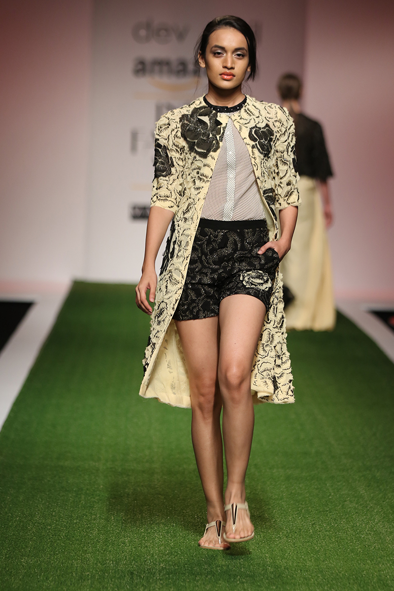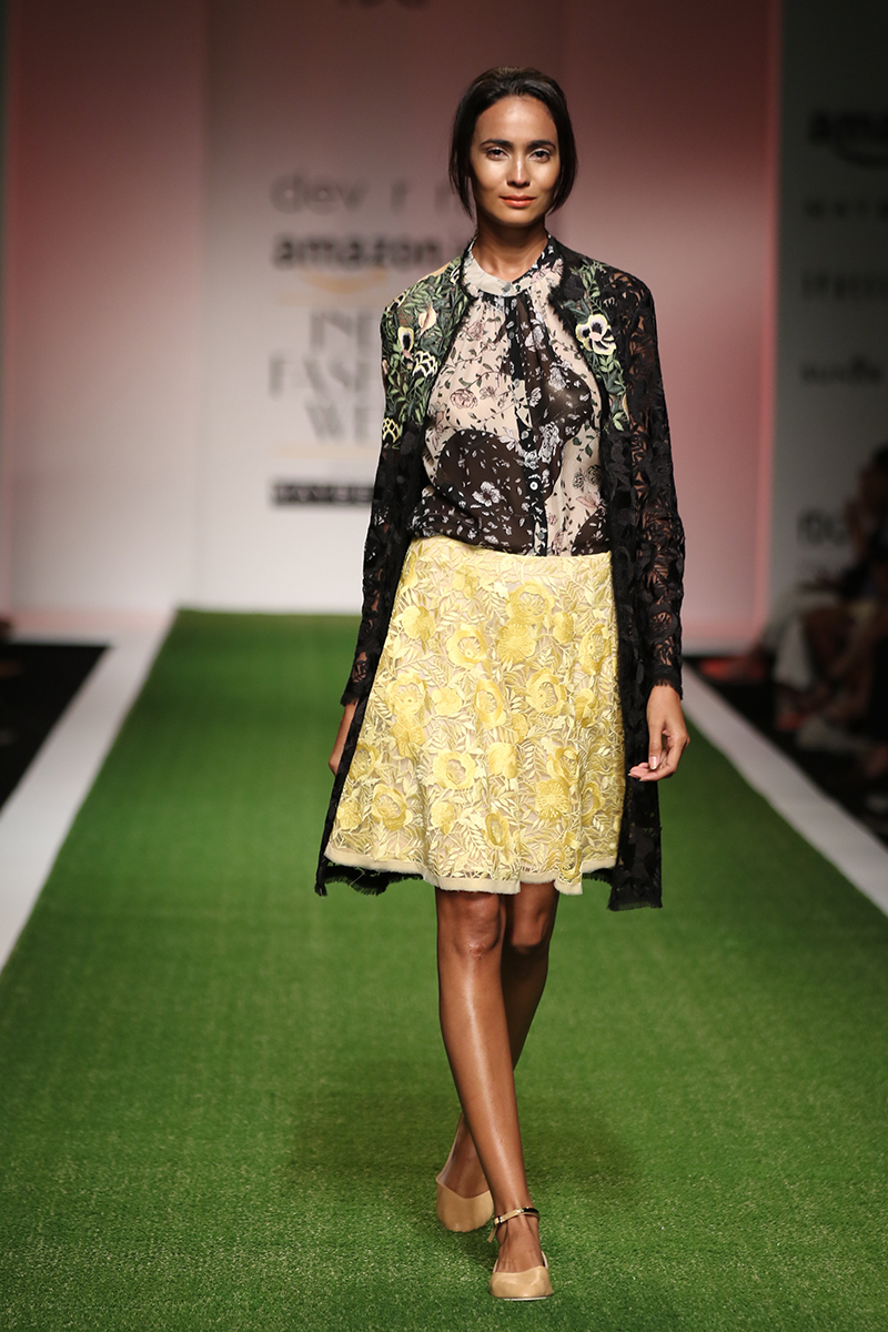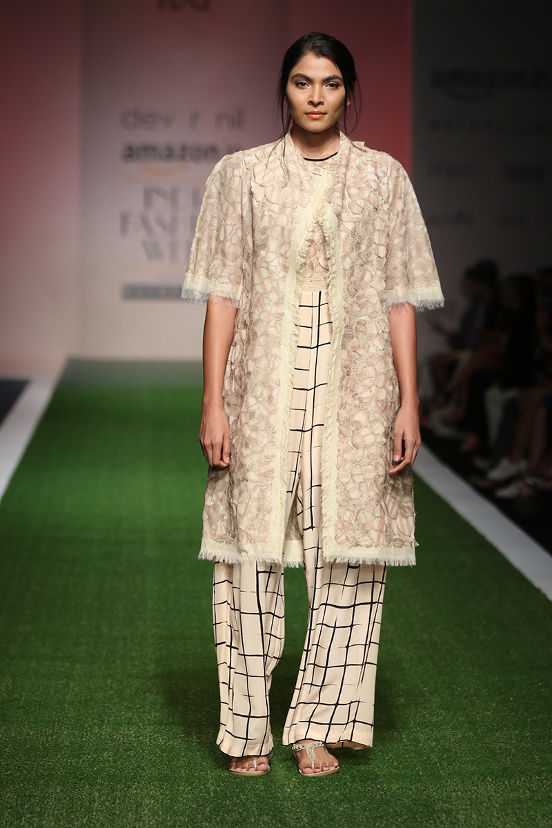 n nPrints dominated by floral and foliage and textures that are inspired by nature go hand in hand. Indigenously developed lacework and appliqué embroidery that plays hide and seek conforms the comfort of being in your own skin.n nSimple monochromes with the burst of tangerine and mango brighten up the mood as we take a break from the mundane and try to cleanse our soul in the journey of Lifen nBuyer Contact:nAnjishnu LahirinM: +91 8336939990nE: anjishnu@devnil.comnW: www.devnil.comn nMedia Contact:nRashi BhimaninM: +91 9810949626nE:rashibhimani@gmail.com