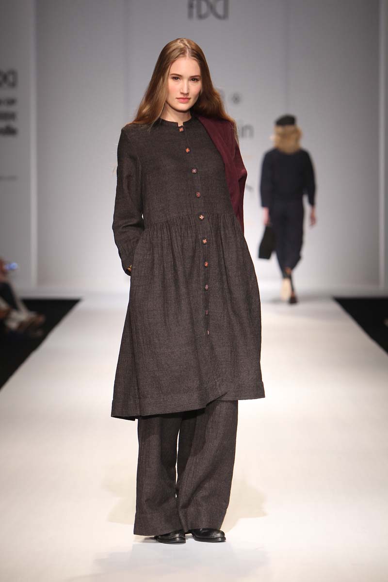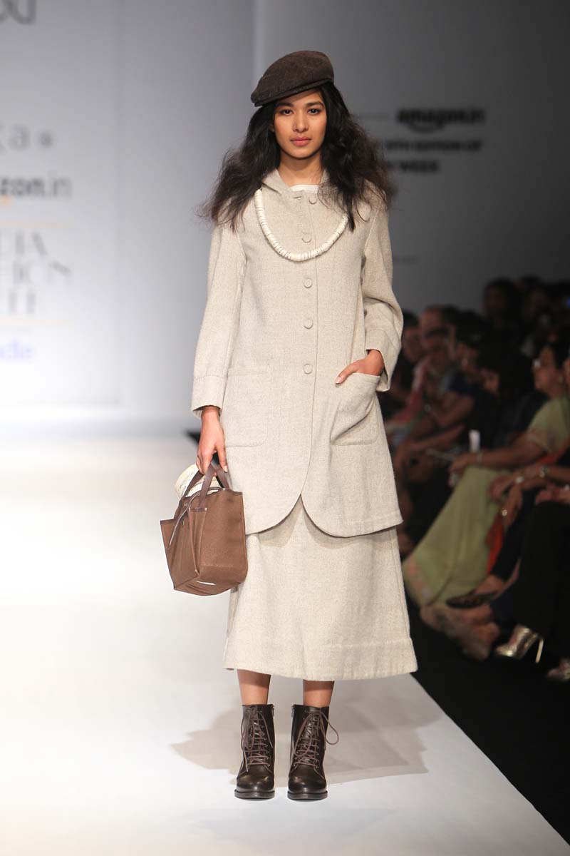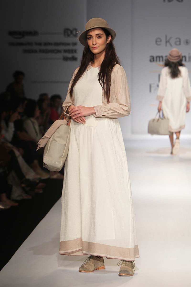 eka` means one in Sanskrit & many other languages, we describe it as one of a kind product for women, who wear their heart on their sleeves & attitude in their clothes. The collections attempt to transcend boundaries of shape, age and cultures to offer universally adaptable clothing ideas.n nThe fashion statement thoughtfully created is, unique, ageless and individualistic.neka` offers a refreshing simplicity and an unpretentious elegance, for a free spirited woman, which extends beyond the cultural & seasonal trends. The garments are simple shapes, not machined and ornamented flamboyantly, that randomly follow the lines of the body, and fall unrestricted. Colour palette is derived locally to allow explorations of fabric and appeal to multicultural aesthetic.n neka` explores Indian sustainable textile techniques, handmade indigenously in smaller crafts sectors in rural India, to create contemporary seasonal collections. the inspiration is authenticity in nature, people andnplaces.n nA note to the seekers/keepers, the Autumn Winter 2015 collection is drawn from within. The collection takes inspirations from native environment & collaborates in slow fashion movement.n nAW2015 has an honest approach & is built on the principles of craftsmanship & authenticity.it comes wrapped in warm rustic tones, side by side with pure see thru pearly off-whites. Outsized & feminine silhouettes are crafted with genuine handcrafted materials.n n n Buyer’s Contact:Sandeep DuanM: +91 9810316058nT: +91 124 4266843nE: sandeepdua@eonclothing.netn W: www.eka.com n Media Contact:Rina Singh/ Surabhi ChauhannM: +91 9810305528 / +91 9810610019nT: +91 124 426 6843nF: +91 124 4266021nE:rinasingh@eonclothing.net / surabhi@lovestruckcow.com