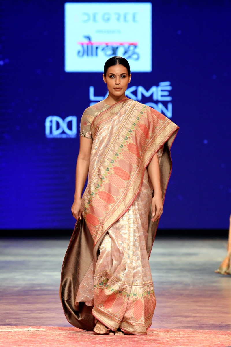 The Jamdani weave is considered the most complex technique in the country and the line displayed the creations from Dhaka, Benares, Kota, Srikakulam, Uppada, Venkatgiri, Kashmir and Paithan.