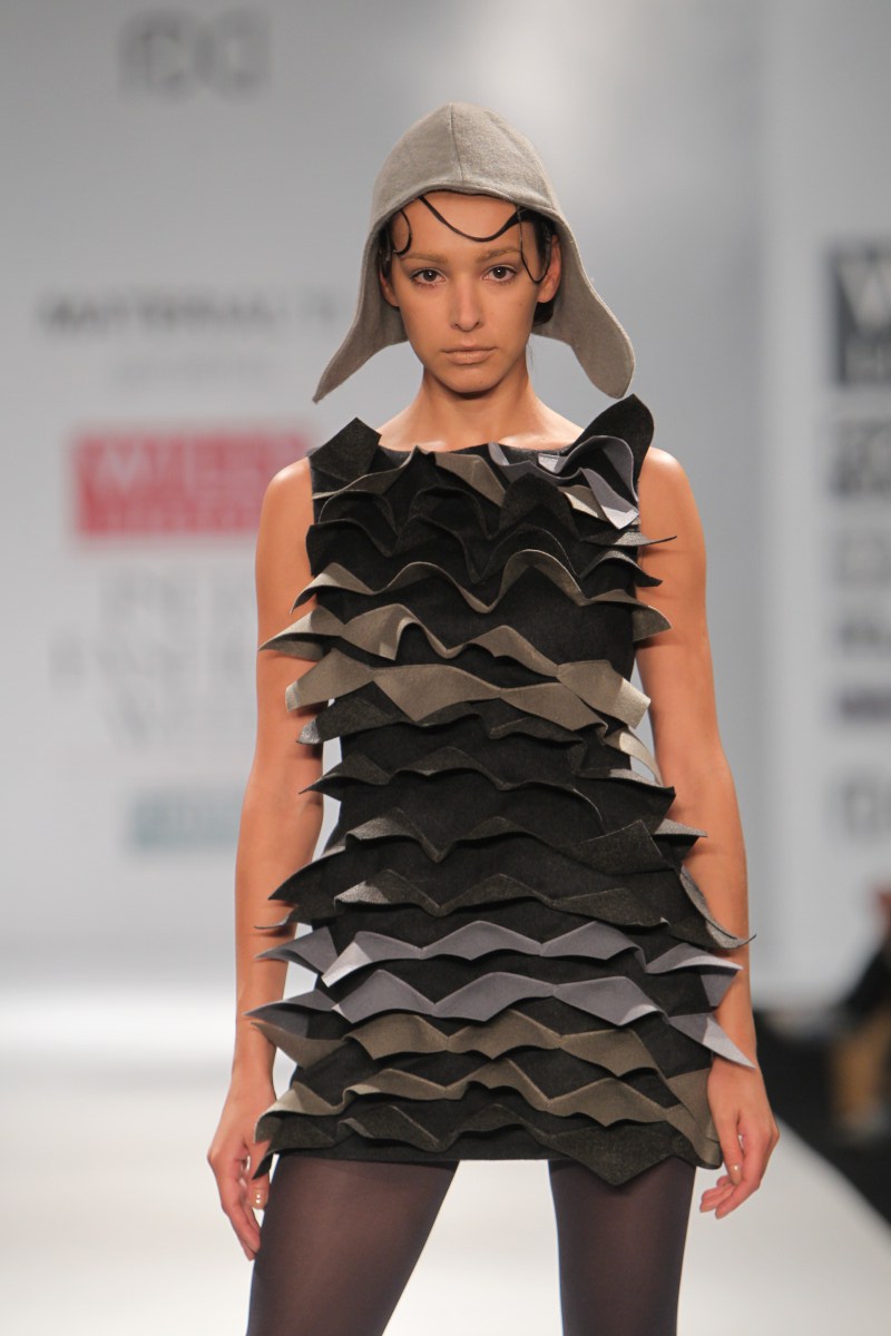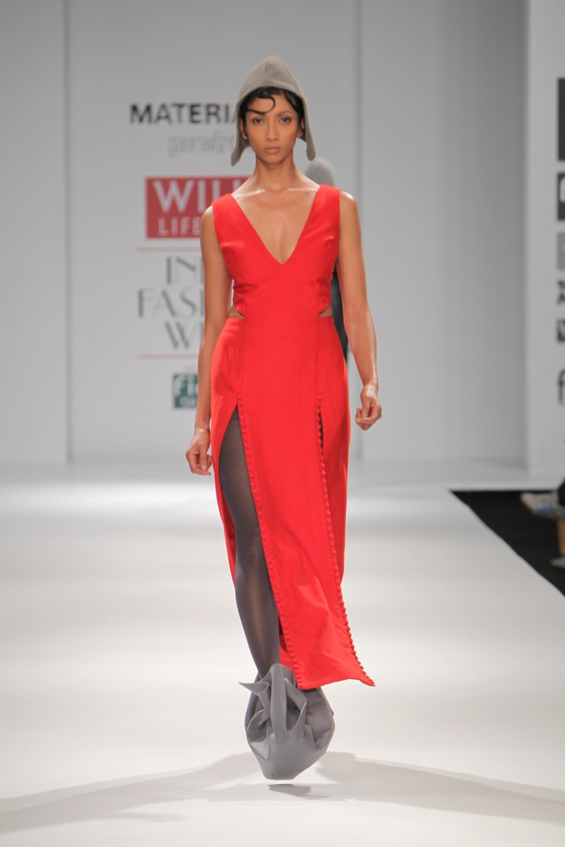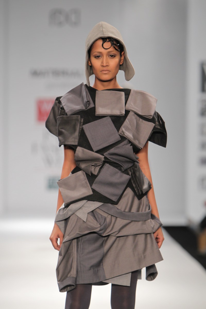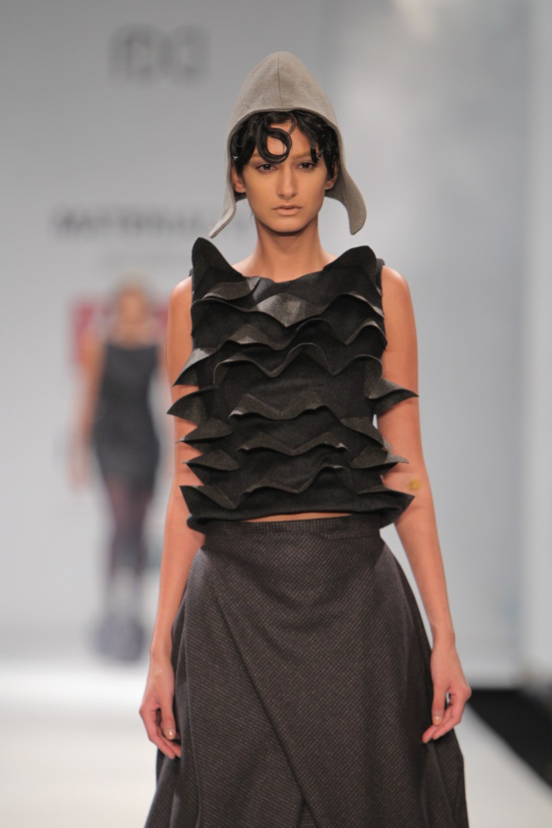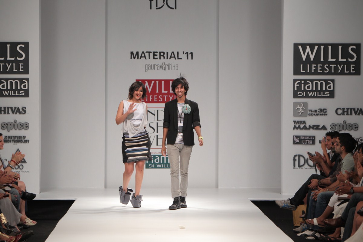 Having spent their formative years in Delhi, Gaurav and Ritika invariably find themselves taking cues from the fast paced industrial chaos of the capital city. The haphazard geometry of city architecture finds reflection in their work, and has therefore taken them on a tangent different from the more popular explorations of traditional Indian kitsch. n nWhile working on drafts they use a synthesis of self developed pattern-making techniques alongside traditional methods of draping to create distinct silhouettes. Their challenge lies in harmonizing their line-based architectural inspirations with the curves of the human body.n n BUYERS CONTACTnN: Ritika Gupta nM: +91 9312675511nE: gauravandritika@yahoo.co.inn nPRESS CONTACTnN: Gaurav Jagtiani nM: +91 9810004307