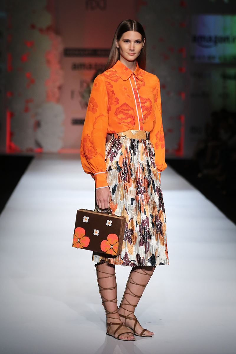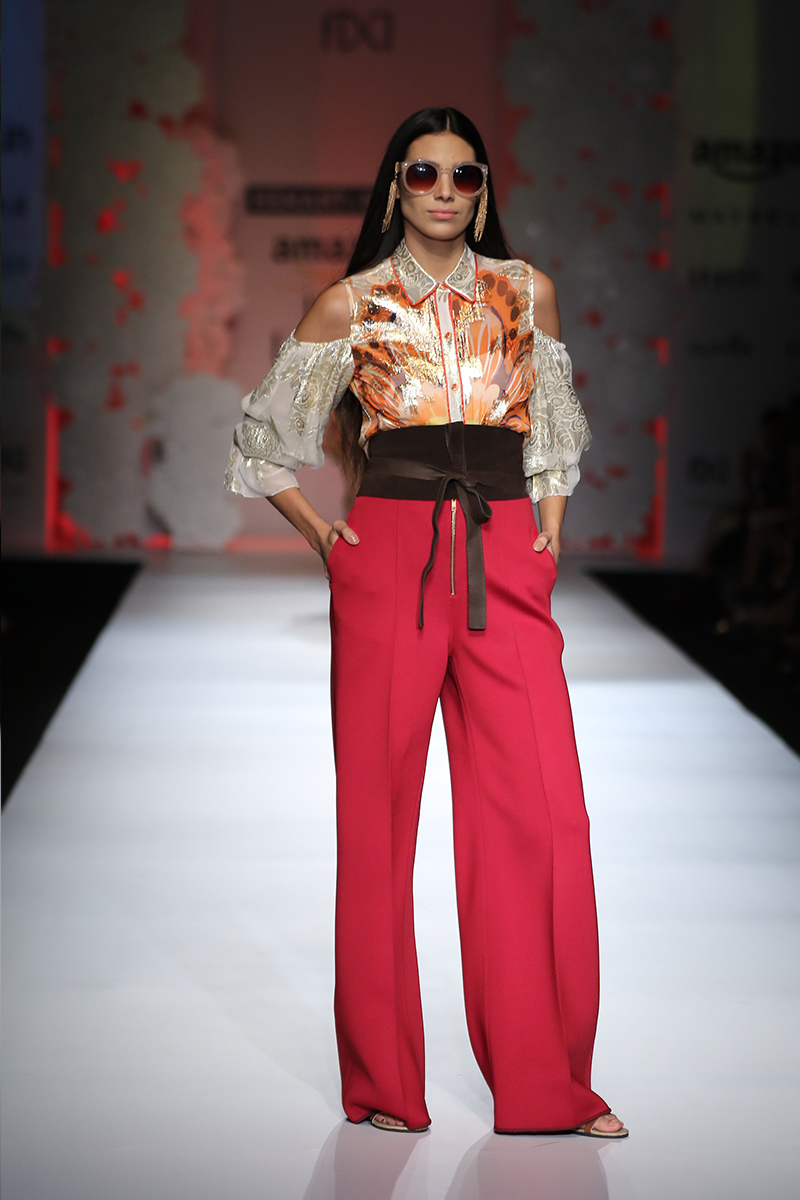 Hemant & Nanditas forte lies in array of prints developed by fusing various traditional and contemporary elements. They intermingle trends and styles to create something that is true to their sensibilities. Their individualistic statement is something people look up to and their designs go beyond admiration. They are also developing quirky accessories such as neckpieces, bags, belts, caps, bracelets and headbands, under the label Hemant&Nandita Accessories.