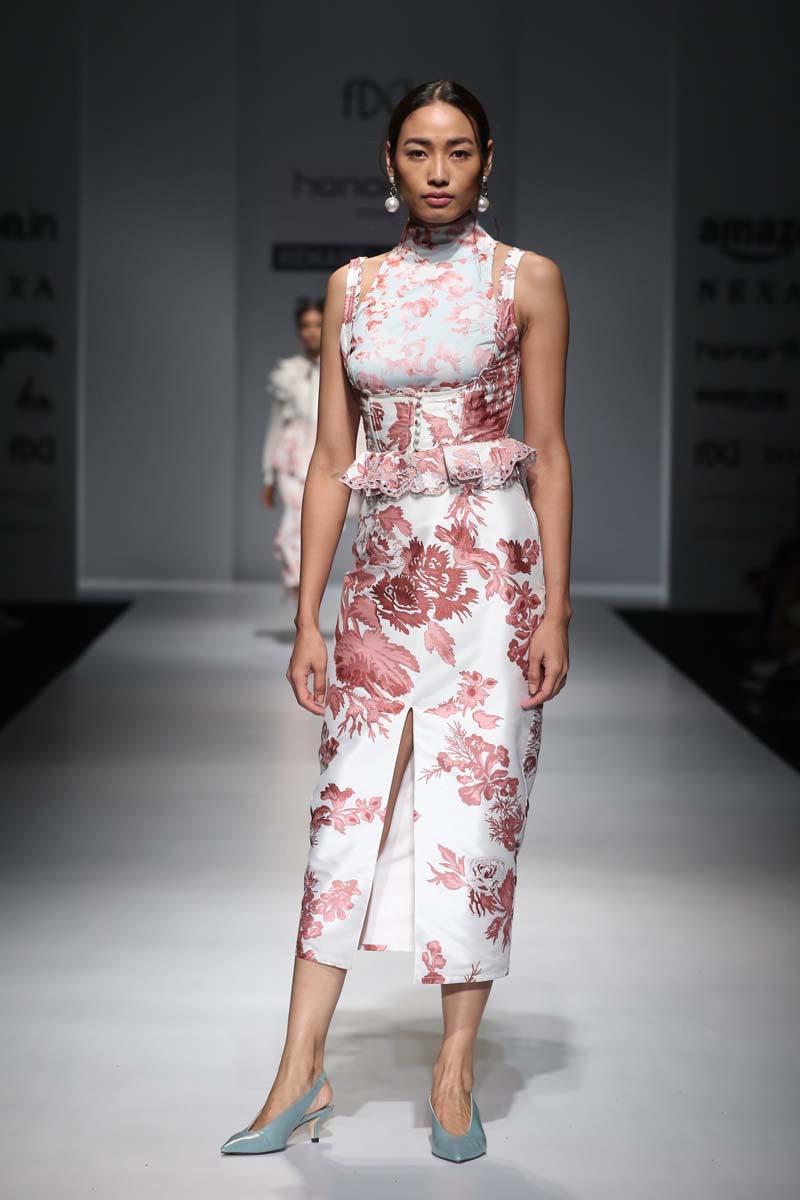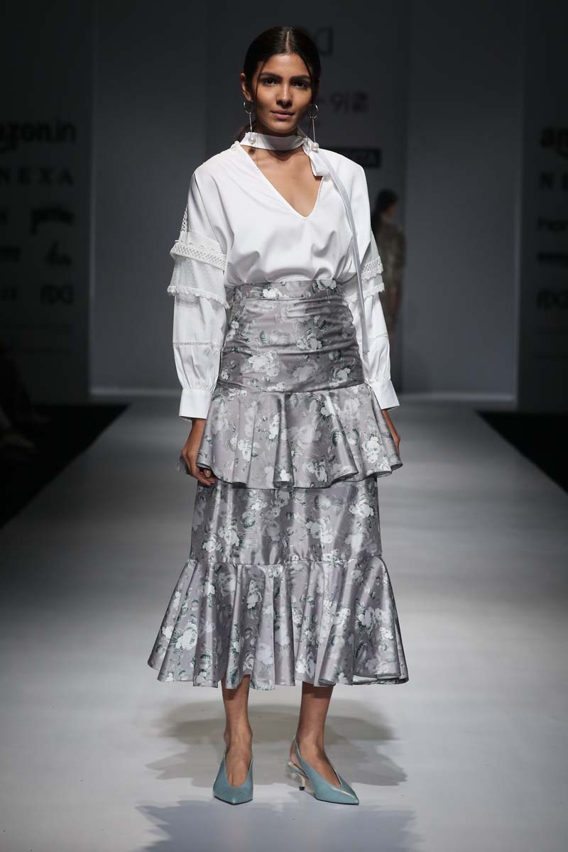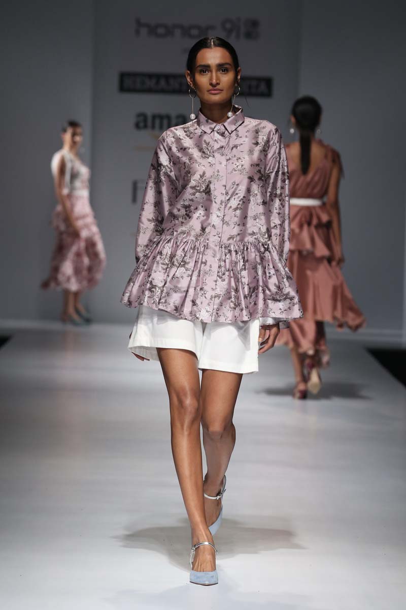 nThis season is all about the return of last century chic, which reflects in the Hemant & Nandita SS?18 collection. The design tone is a rich hybridization of couture and Victorian delight. Inspired from the old and made for the new (millennial), this collection adopts dramatically proportioned and romantically inclined looks.