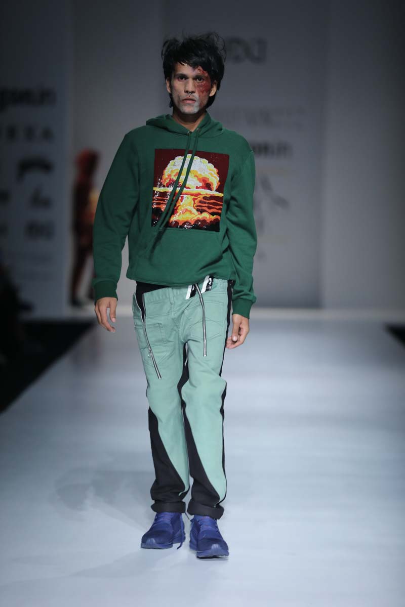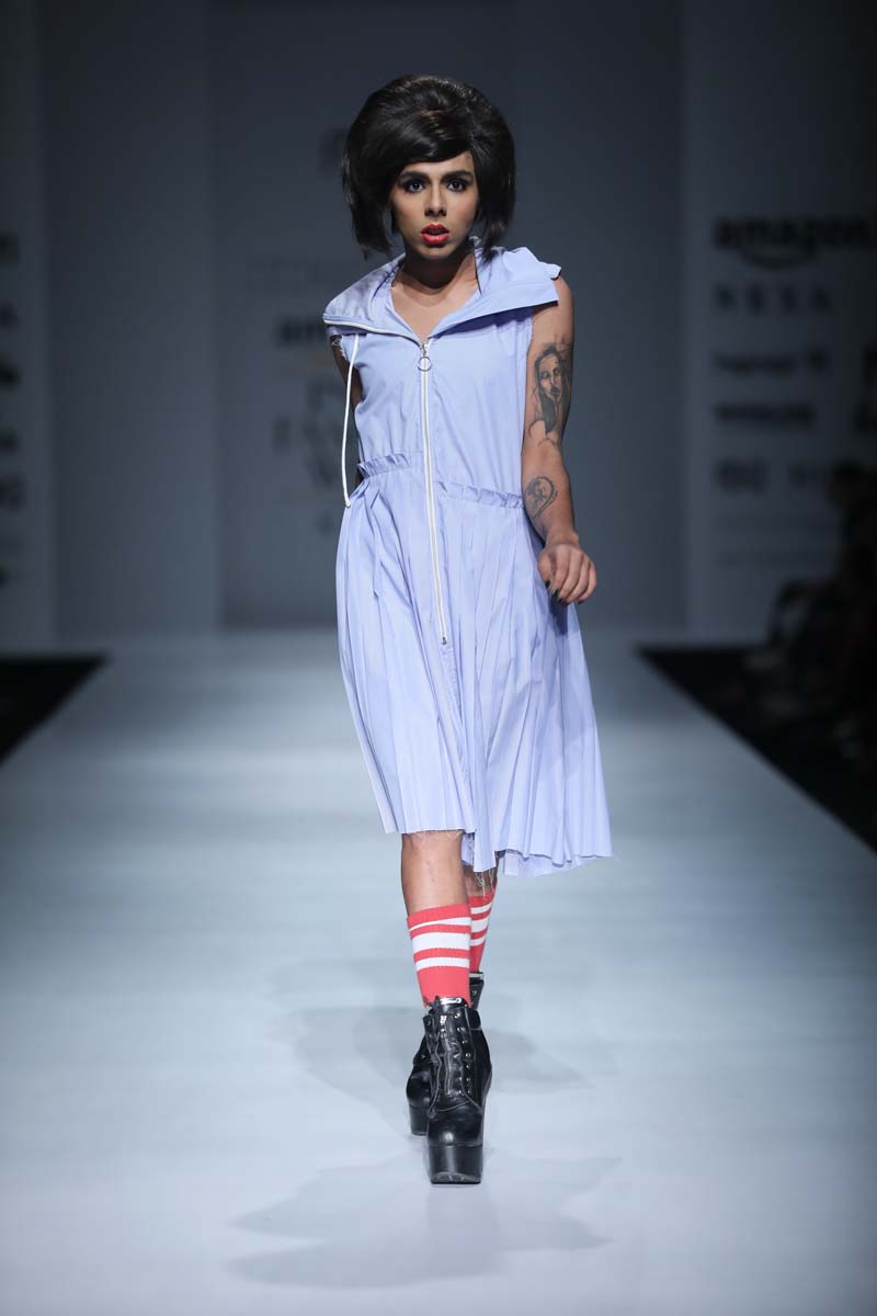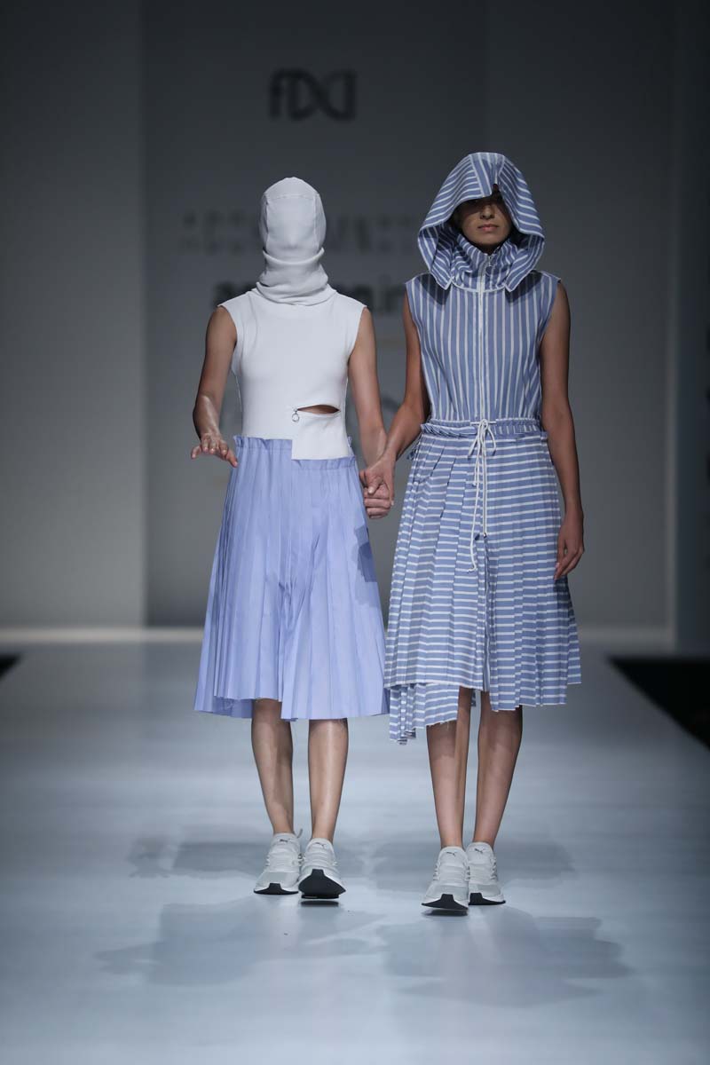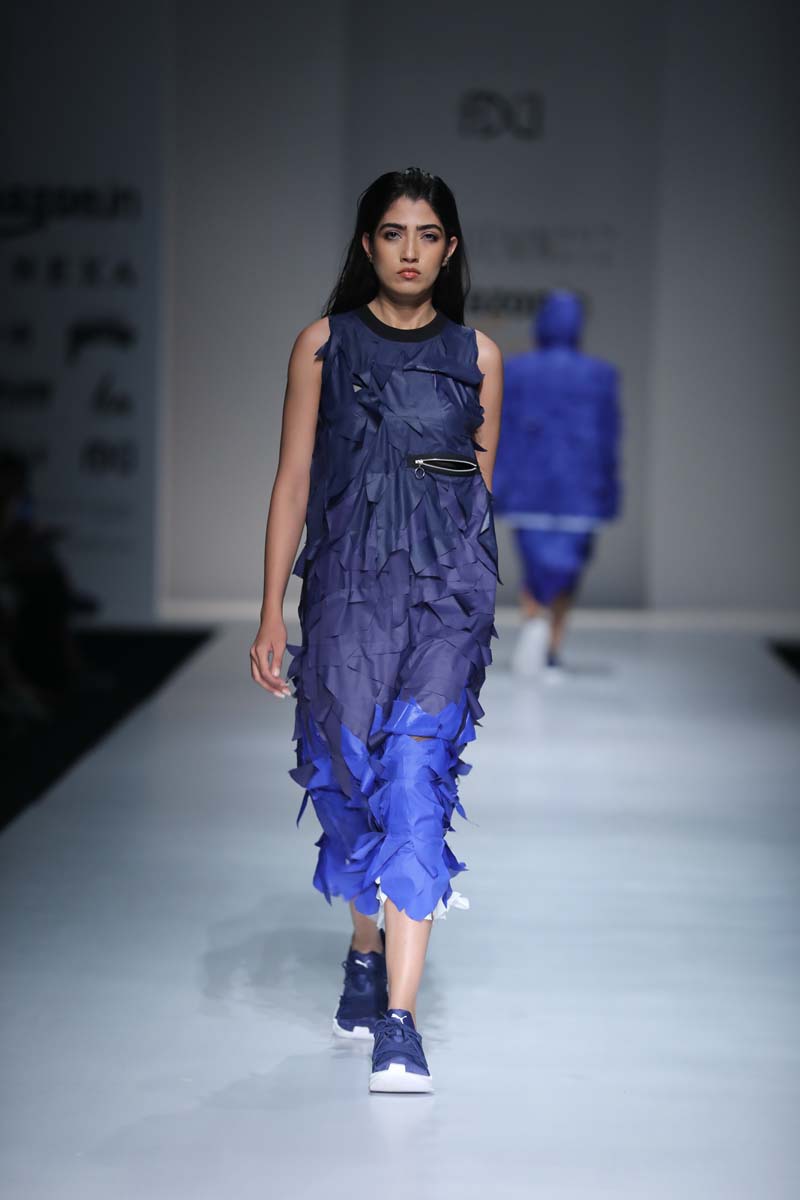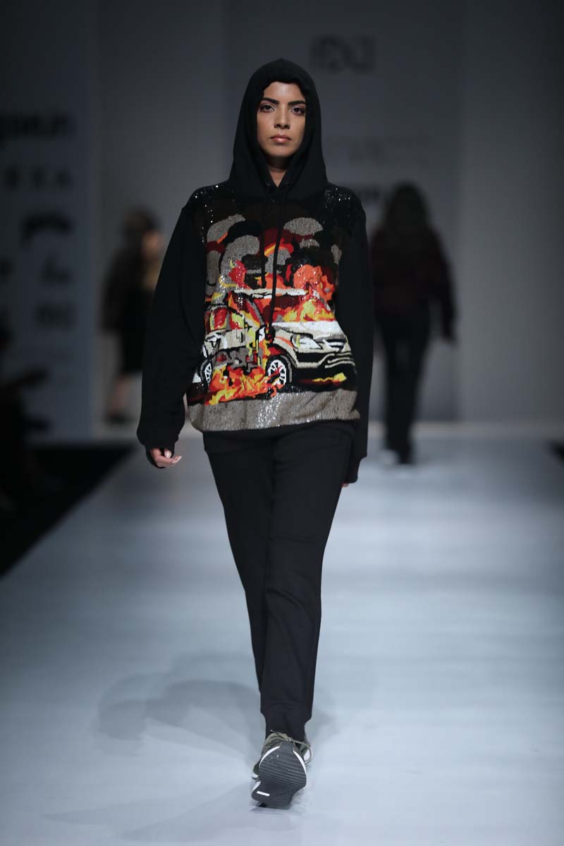 nThe collection is heavily influenced by the socio-economic and political ambience of our times which is far from ideal. Up cycled denim, day dresses, statement t-shirts and luxe athleisure make up the collection.