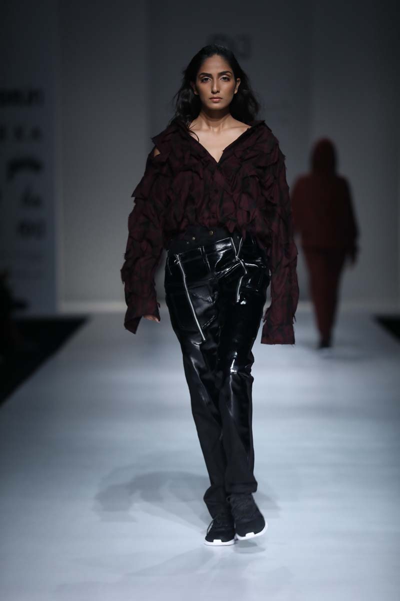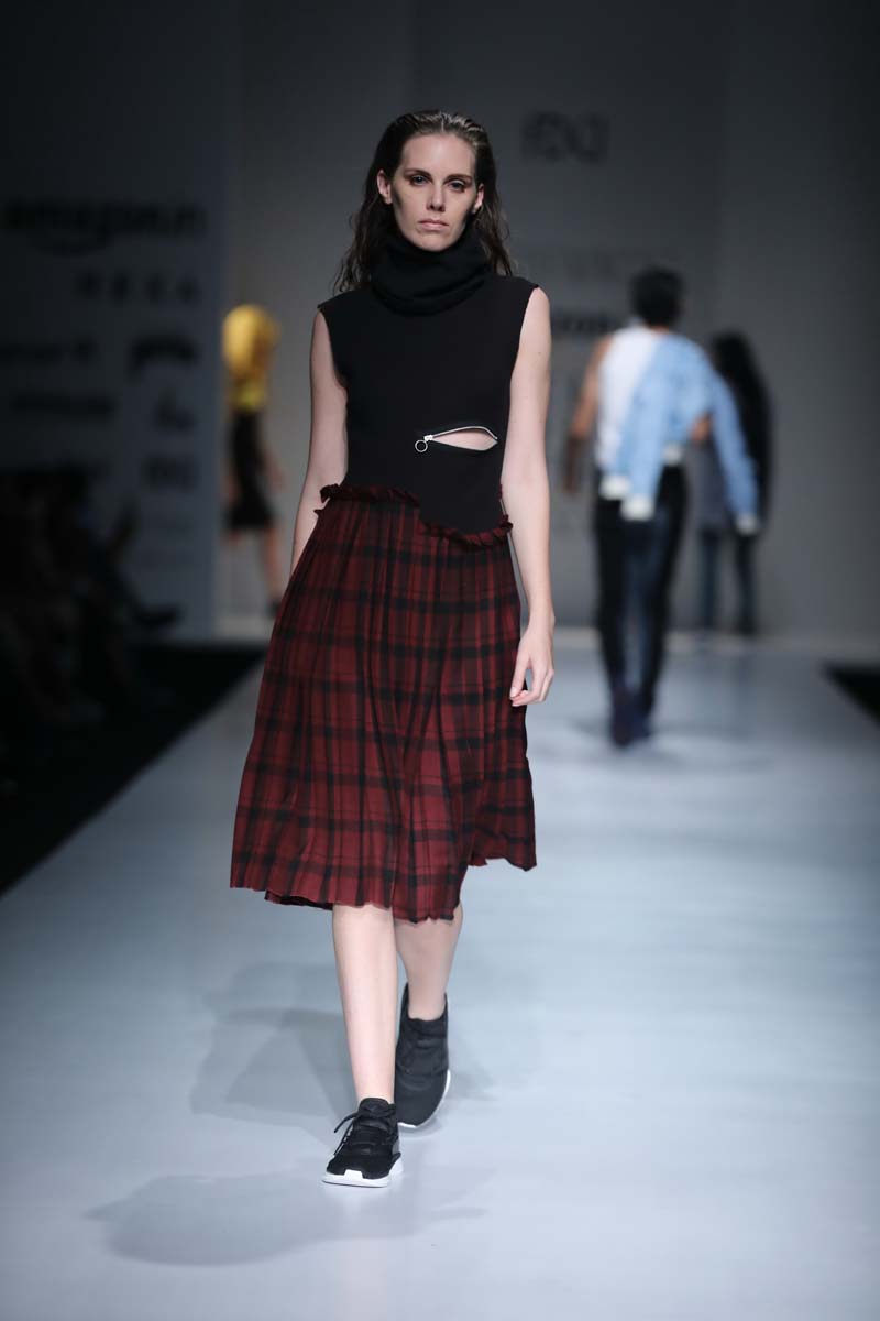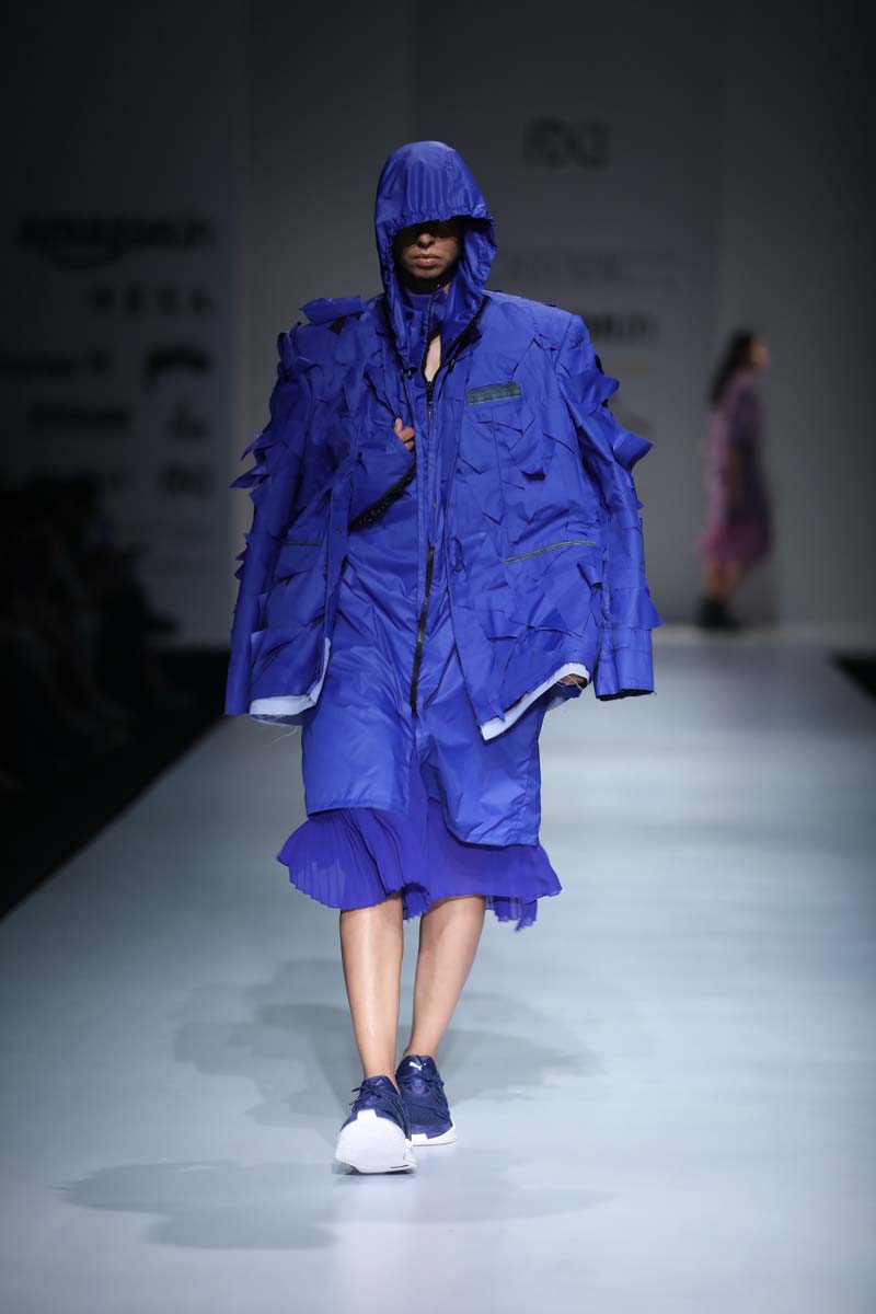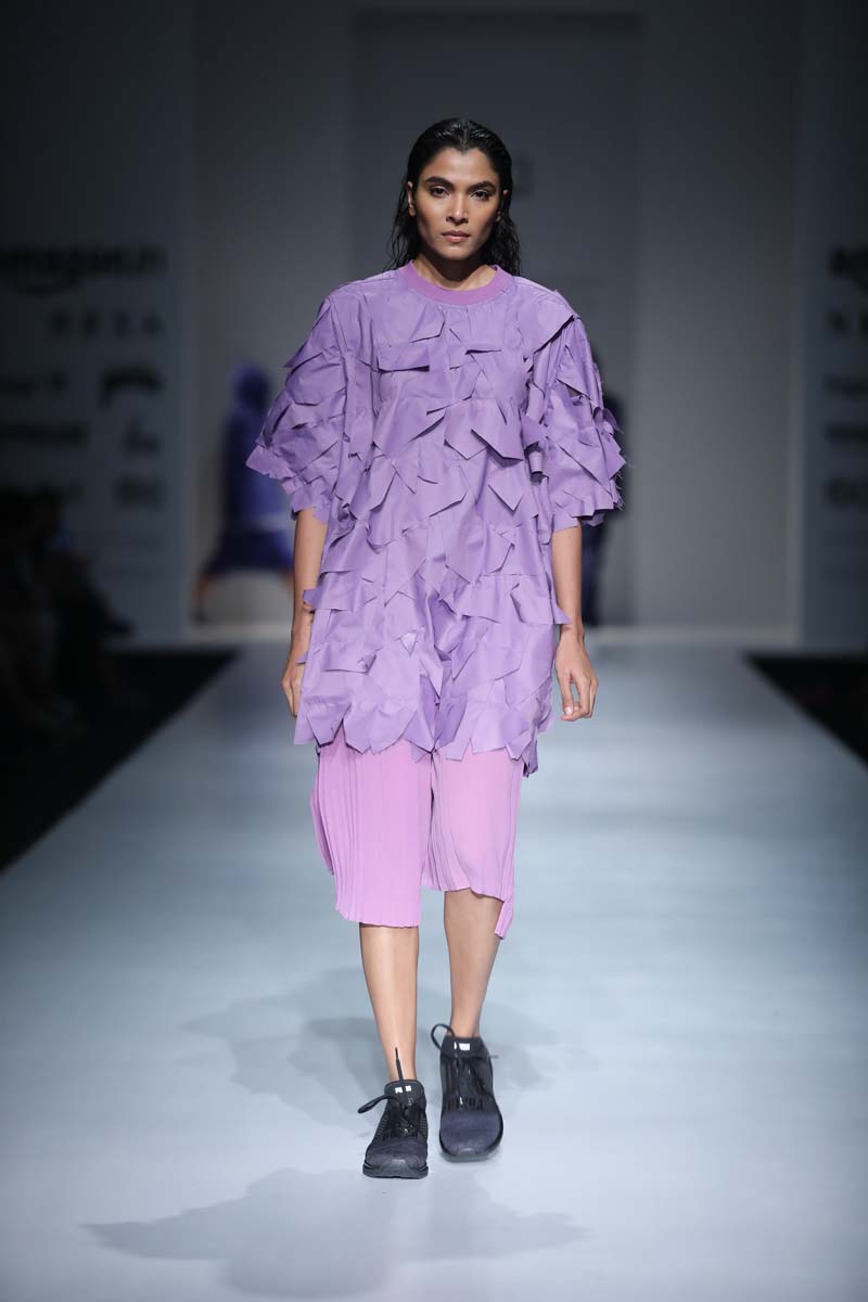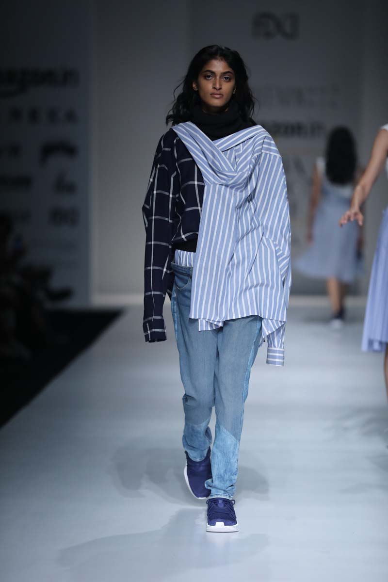nThe collection is heavily influenced by the socio-economic and political ambience of our times which is far from ideal. Up cycled denim, day dresses, statement t-shirts and luxe athleisure make up the collection.