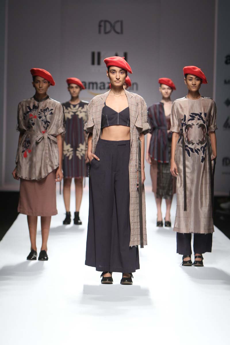 This fall IKAI takes a journey through an illustrators notebook.The season embraces the hand-done pen and paper illustrations against a grid and stripe background. Cruise through original artworks of animals, portraits and autumn leaves. The minute details from the notebook along with the half done scribbles in a staid palette of paper brown, charcoal and black with wild ginger accent evoke nostalgia and warmth.