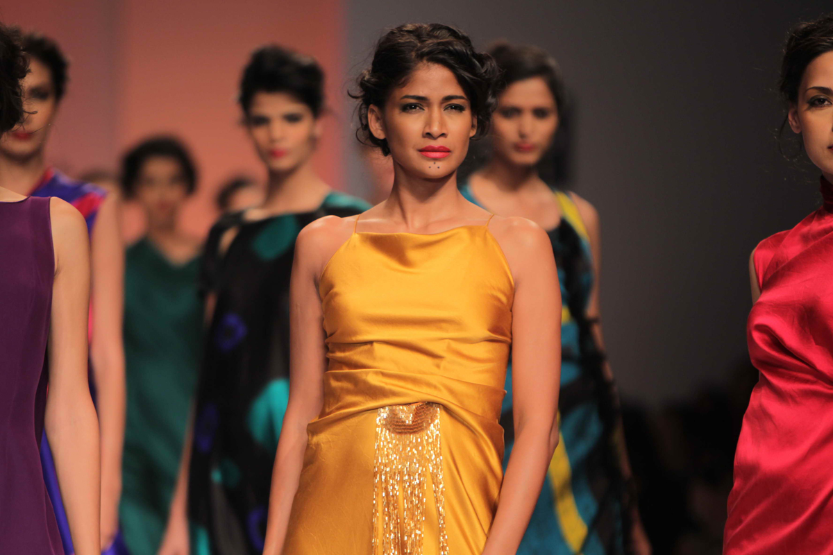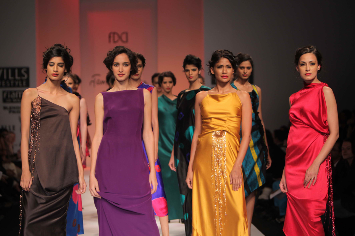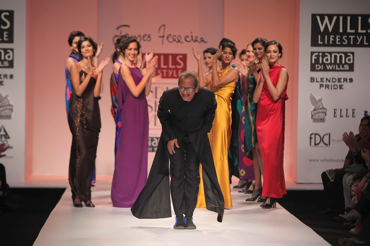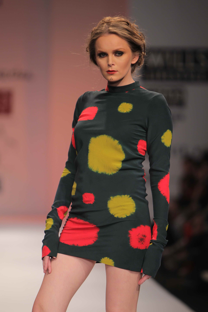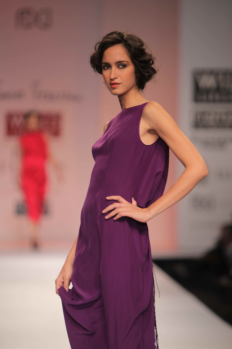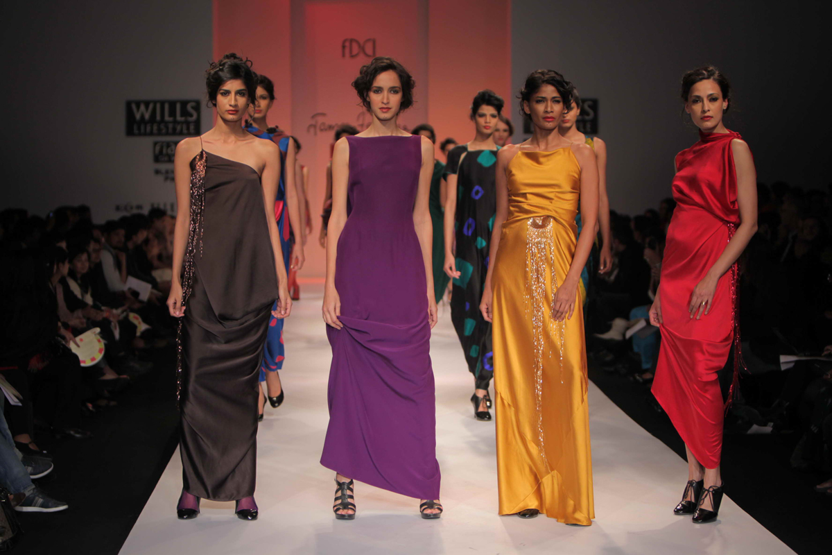 For Autumn/Winter 2012/13, James Ferreria carries forwardnhis love affair with Khadi. Woolen shawls of Gujrat, oversizednbandhani shirt dresses and trousers are paired with vibrantnhand dyed, hand woven woolen khadi shawls. Their rich colorsninspire a line of winter batiks on wool crepe and draped andnsculpted satin cocktail dresses and gowns.