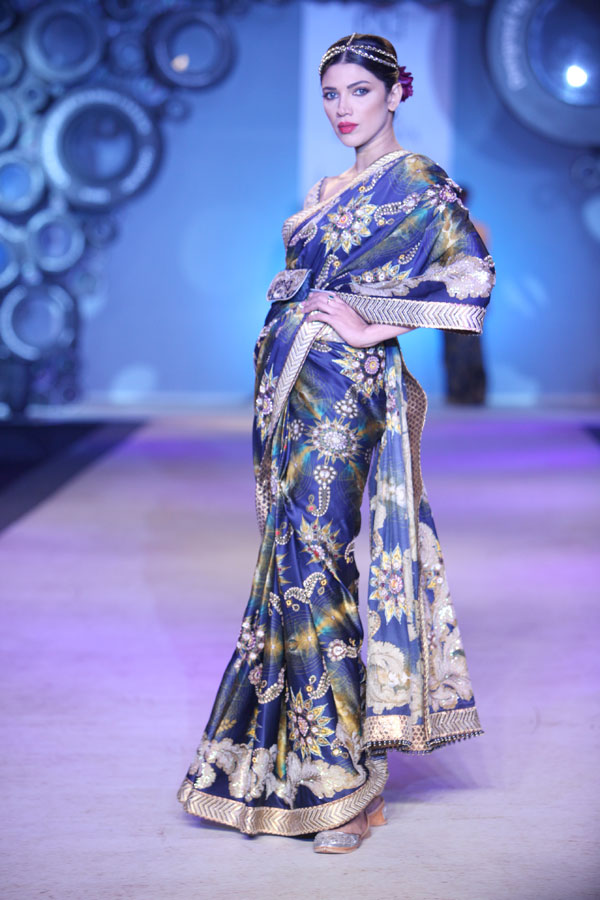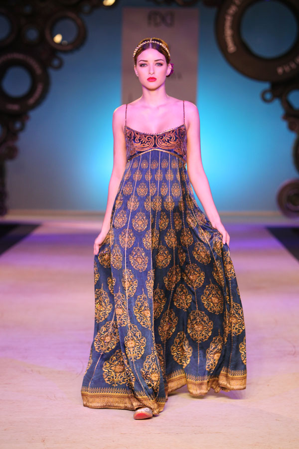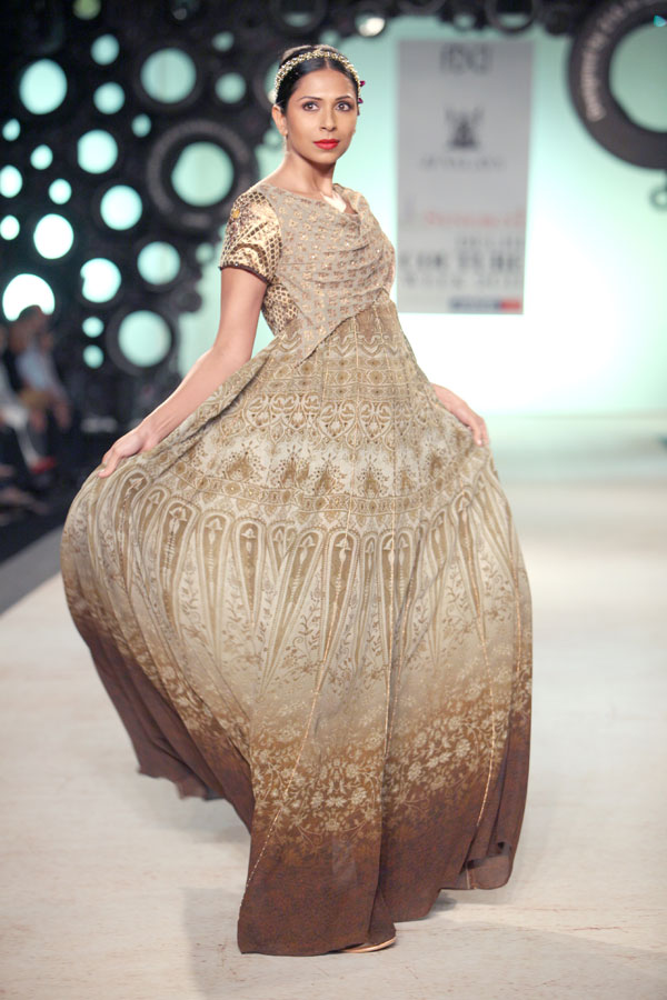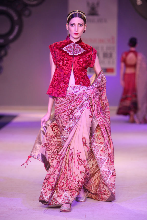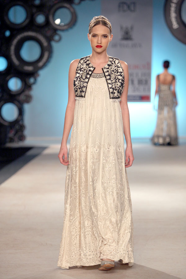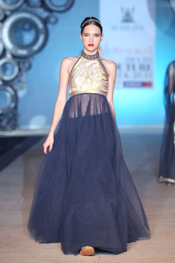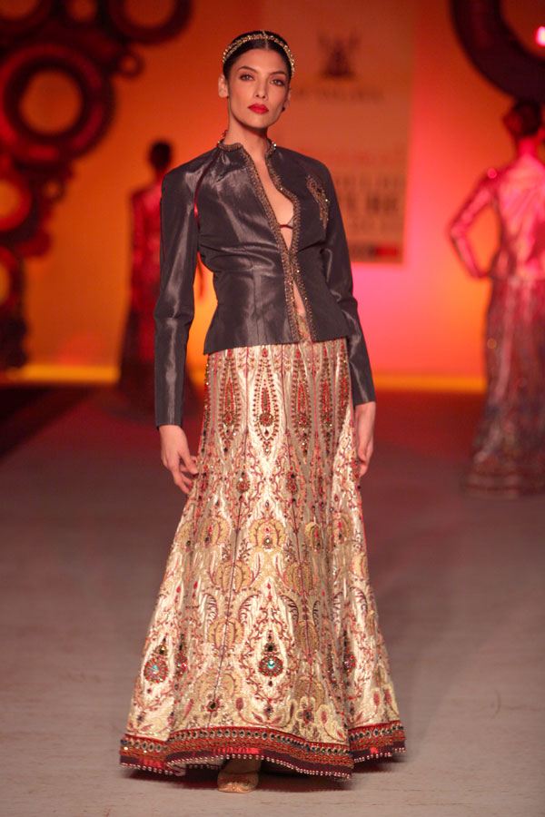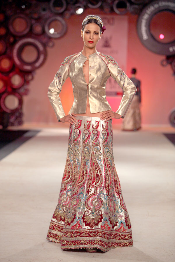 The year 2011 introduced JJ Valaya as a fine art photographer to the world. It is therefore no coincidence that this season’s fashion lines also stand inspired by the evolving palate of the still image; starting with Black & White, Sepia, Natural and finally culminating in todays Digital undertones. This fascinating journey of colors, though distinctly blue-blooded Valaya in spirit, also reflects, very subtly, this incredible evolution within the colors.n nWhilst the camera may have had a hold on JJ Valaya since his initiation into fashion, the resultant magic ensured the pace for his latest collection: not retro, yet remarkably resplendent and glorious. The collection, very holistically, emphasizes fluidity in perfect harmony with the tailored. n nBUYERS CONTACT nRubina DhankarnM: +91 98730 65345nT: +91 11 49007000/+91 11 41020737n E: rubina@valaya.comn W: www.valaya.comn nPRESS CONTACTnDeep Gupta/ Ishita AggarwalnM: +91 93111 20208/ +91 88005 54489nT: +91 124 4539444nE: deep@pacemediamilestone.com