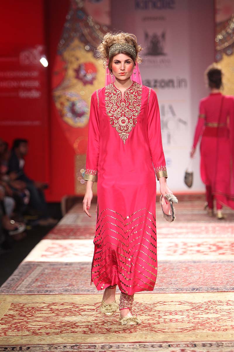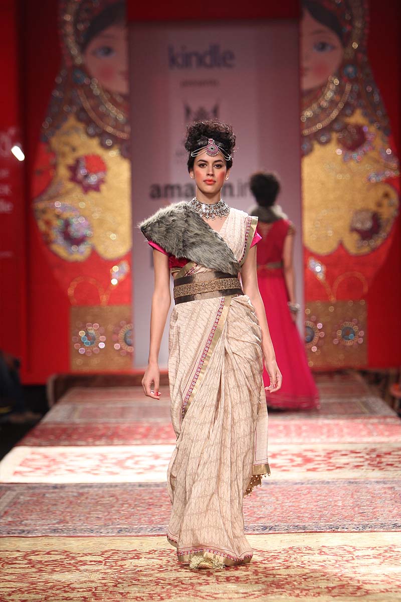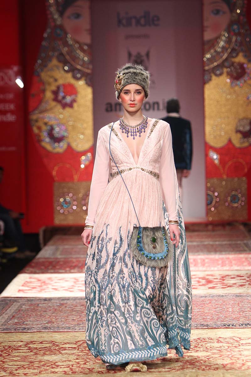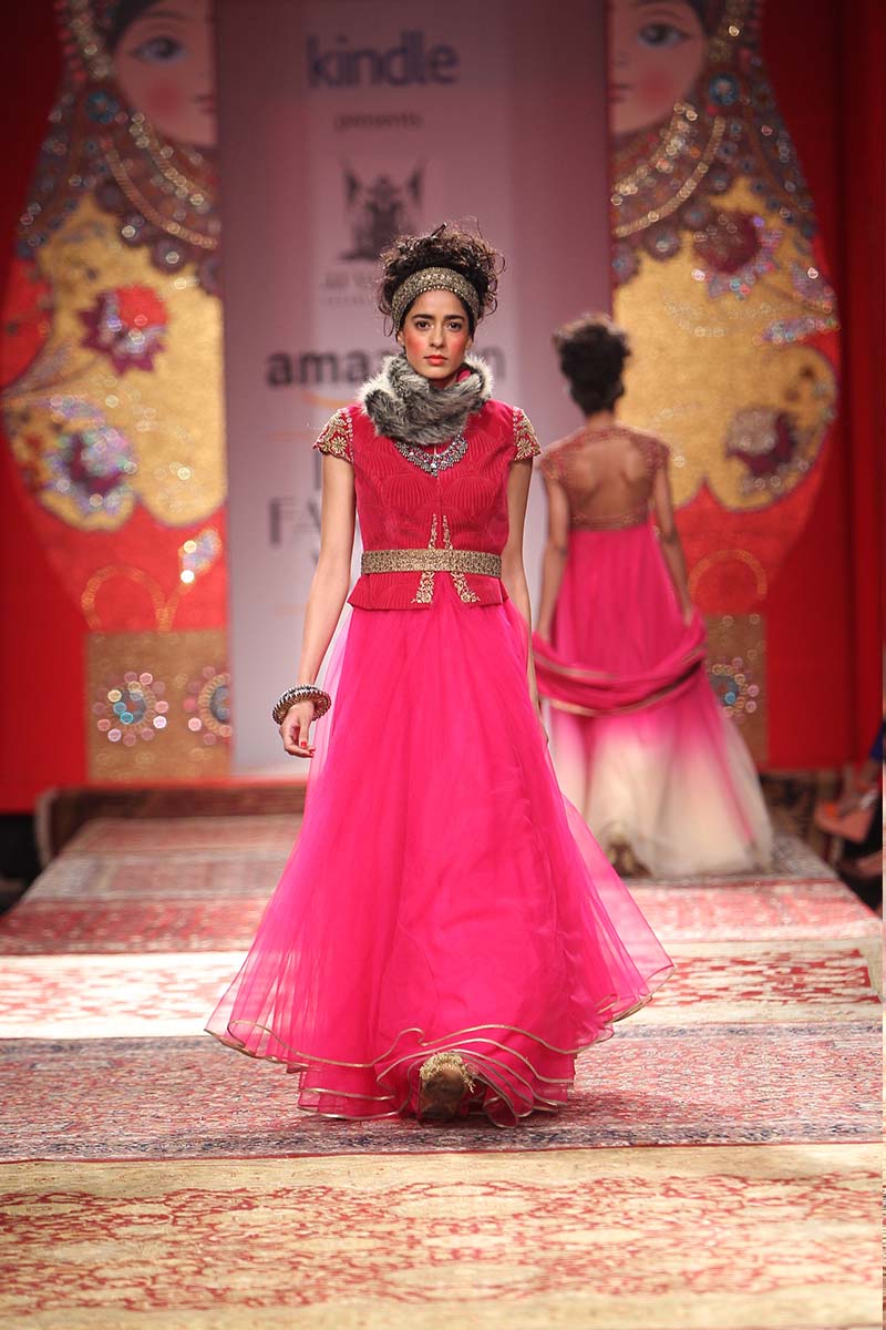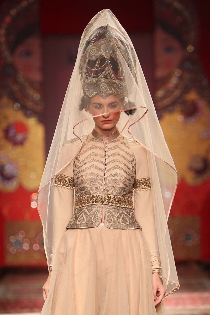JJ Valaya is one of India’s most respected Fashion and Luxury Lifestyle entities. Estd. in 1992, the House of Valaya showcases Couture, RTW and Home lines. The brand today encompasses Couture, Ready-to-wear, Uniform Design, Valaya Luxury Weddings and Home. n nA larger than life approach to fashion & Lifestyle has been a signature of this maverick Maharaja! It is the marriage of the uniqueness of Indias craft and tradition with the energy and the ever-changing nature of contemporary fashion that sets the pace for this luxury brand. The brand continues to develop its unique positioning, maintain and grow its unyielding brand recognition while adhering to the highest quality standards in design. n nThe label caters to markets in India, Middle East, UK, USA, South Africa and Australia.n nTitled “THE BOLSHOI BAZAAR”, this season we infuse elements of Russia and India for an eclectic, yet powerful collection.n n