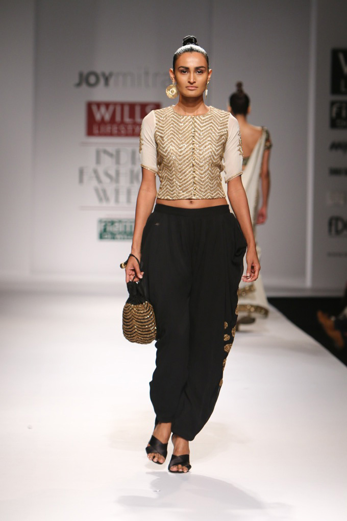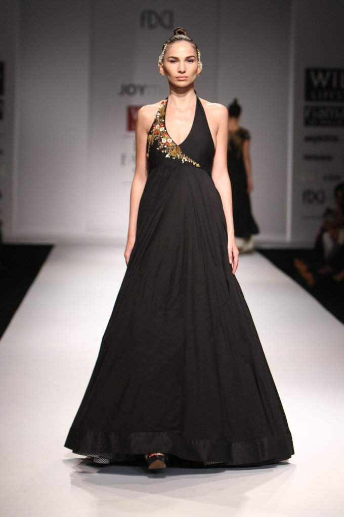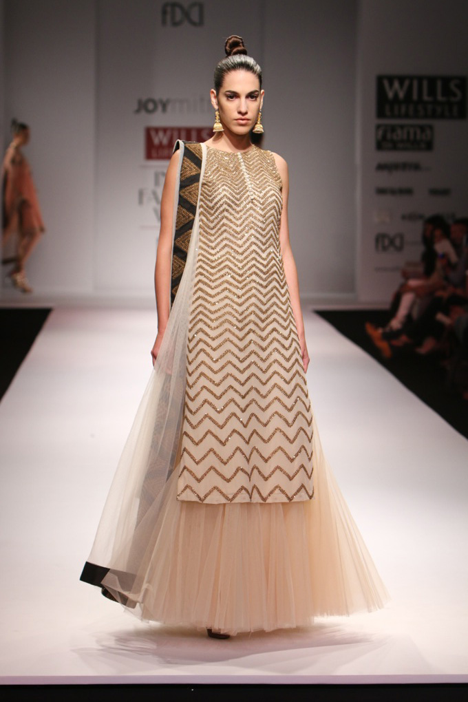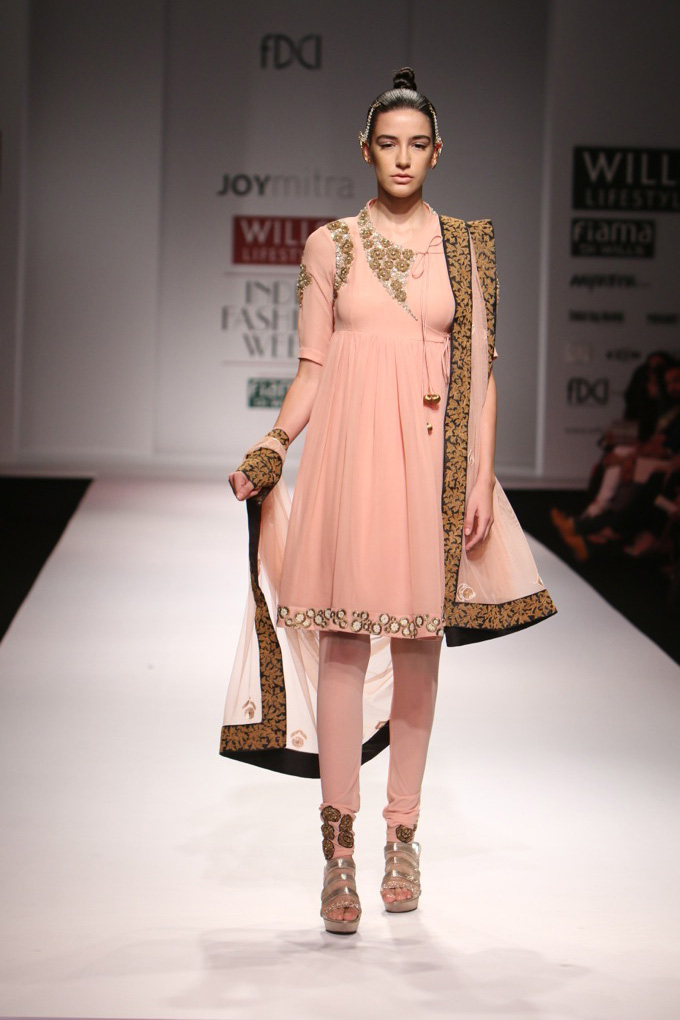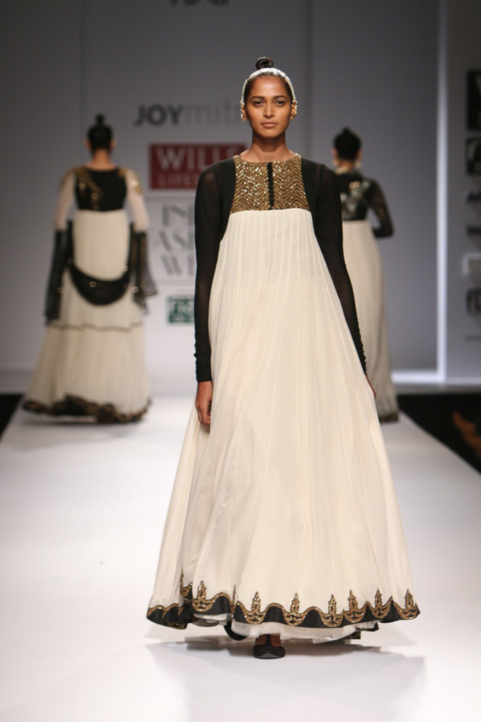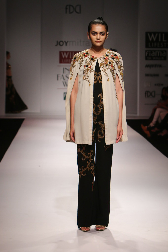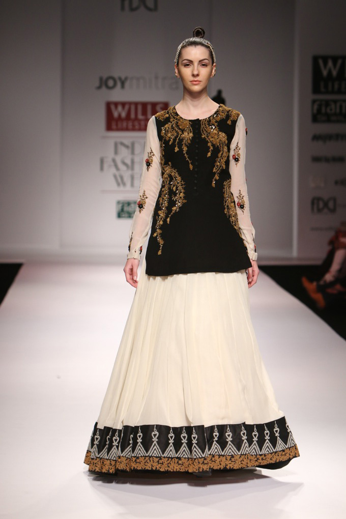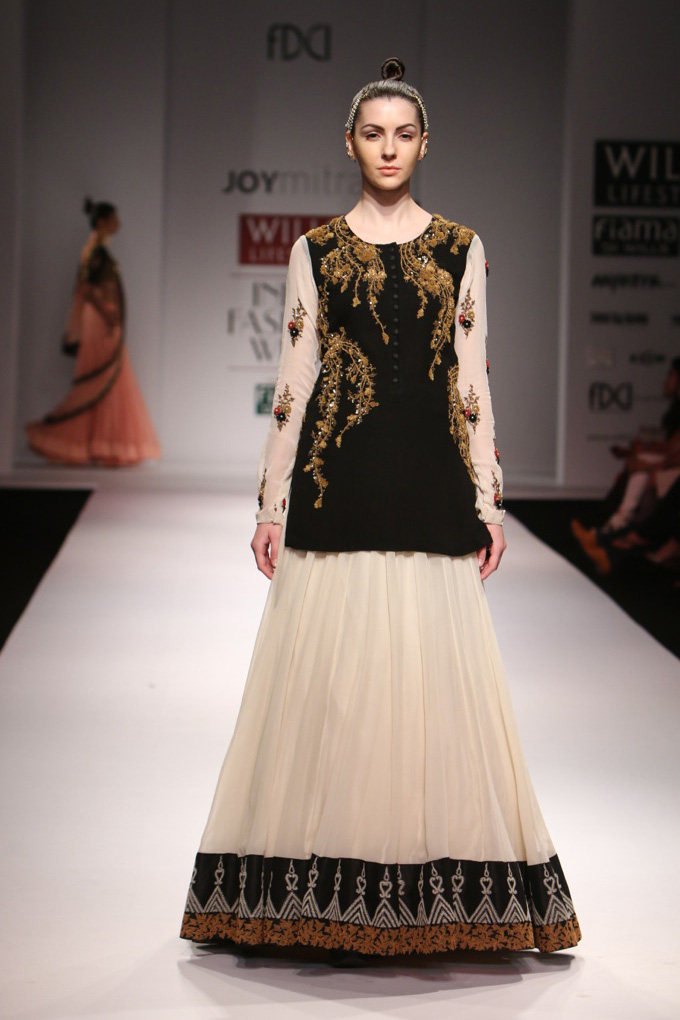 JOY MITRA Fashion was born of the founders passion for fusion haute couture accessible to a broad consumer segment.. Established in 2006 the company has passed its prove up phase and is now poised for high growth both in the Indian market and over seas.n nNIFT graduate JOY MITRA DESIGNS philosophy is to keep his creations simple yet elegant. The Brand stands for classic Indian feel in a contemporary style; Timeless classic garments with a strong fragrance of Indian soil and culture.n nThis season Joy Mitra brings the “Music Room”. Inspired from 1958 classic film Jalsaghar by Satyajit Ray. It depicts the days of decadent zamindar (Landlord) of bengal and east India. The mystery and grandeur of that era. n nPlaying with creams and blacks, with some intervals of peach and pink, a lot of embroidery zardosi work thread work has been incorporated to give a defined look.n nBuyers Contact:nJoy Mitra / Shubhra Raina nM: +91 9810495238/ +91 9871035151nE: joysdesigns2012@gmail.com / speak2joydesigns@gmail.com n nMedia Contact: nShubhra Raina/ Akshat KapoornM: +91 9871035151/ +91 971120835 nE: joysdesigns2012@gmail.comn n