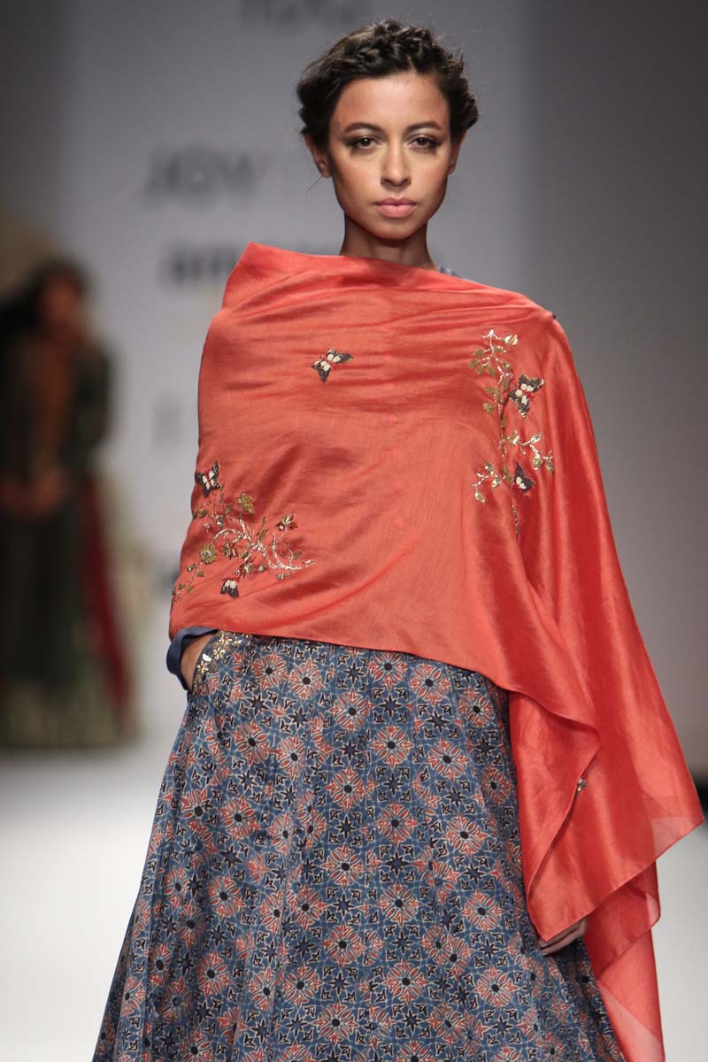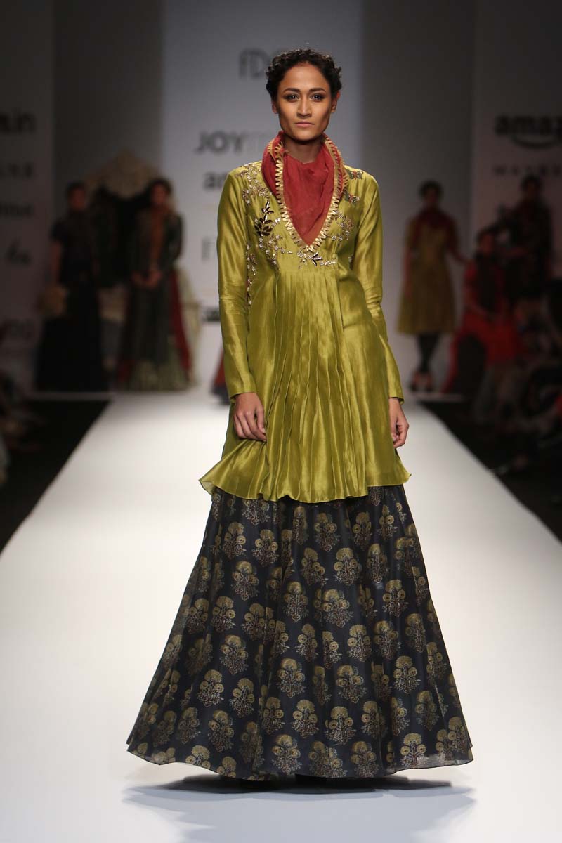 This A/W’16 JOY MITRA presents the classic Ajrakh prints and intricate gold embroideries in a contemporary avatar with a twist that will just set the right mood in for the coming season.