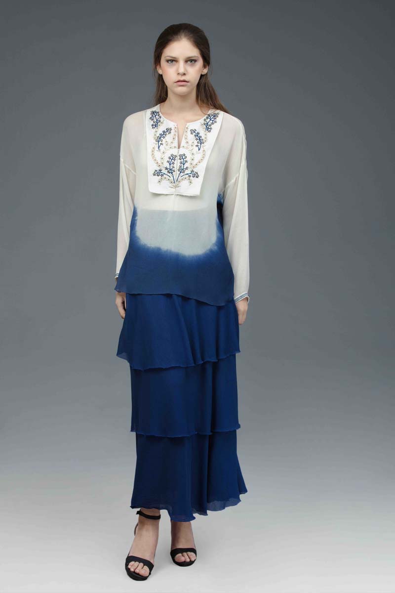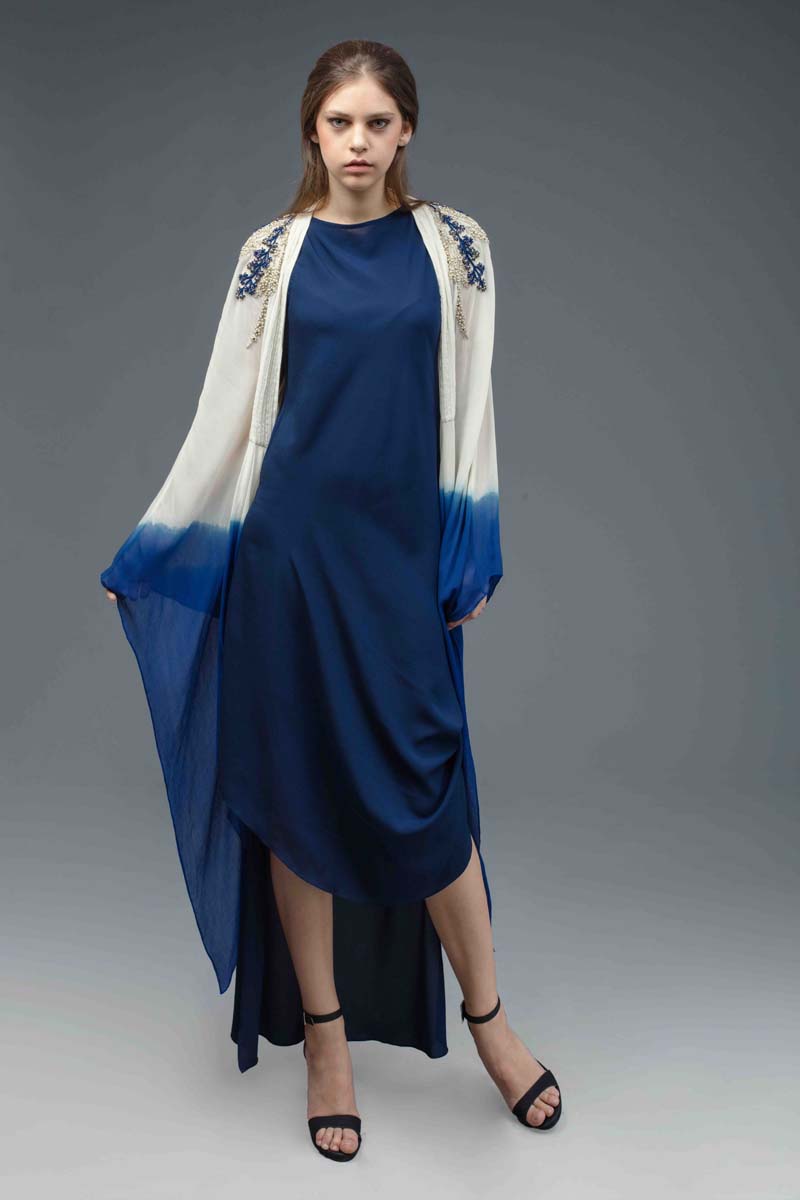 Inspiration is taken from the traditional IZNIK motifs. Embellishments include traditional resham, zardozi, pearl work and new tie and dye techniques.