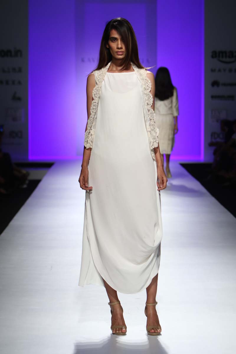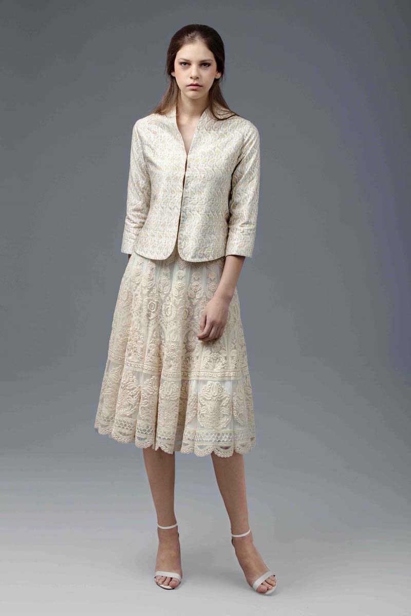 The silhouettes are essentially gilets, tiered skirts, draped dresses, tunics and creative pants with an aesthetic color palette moving from vanilla cream to icy peach, red and cobalt blue combined with whites.