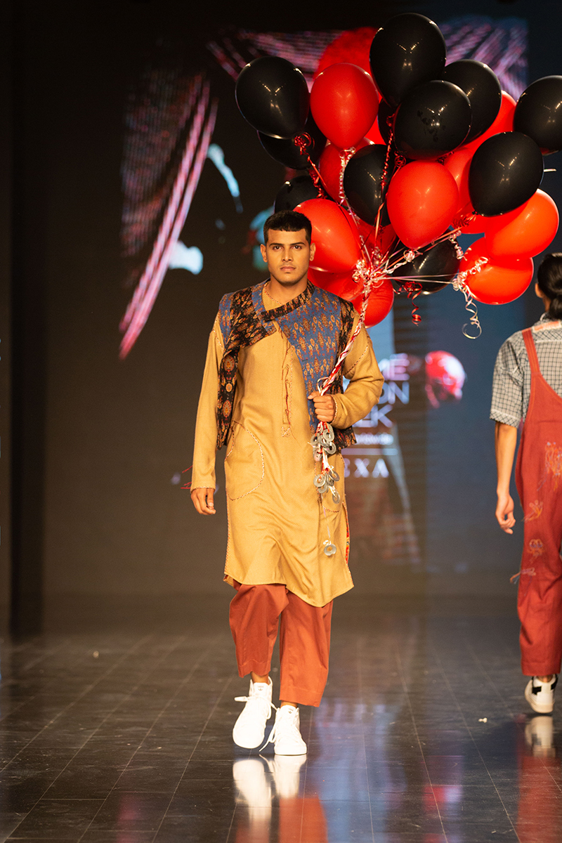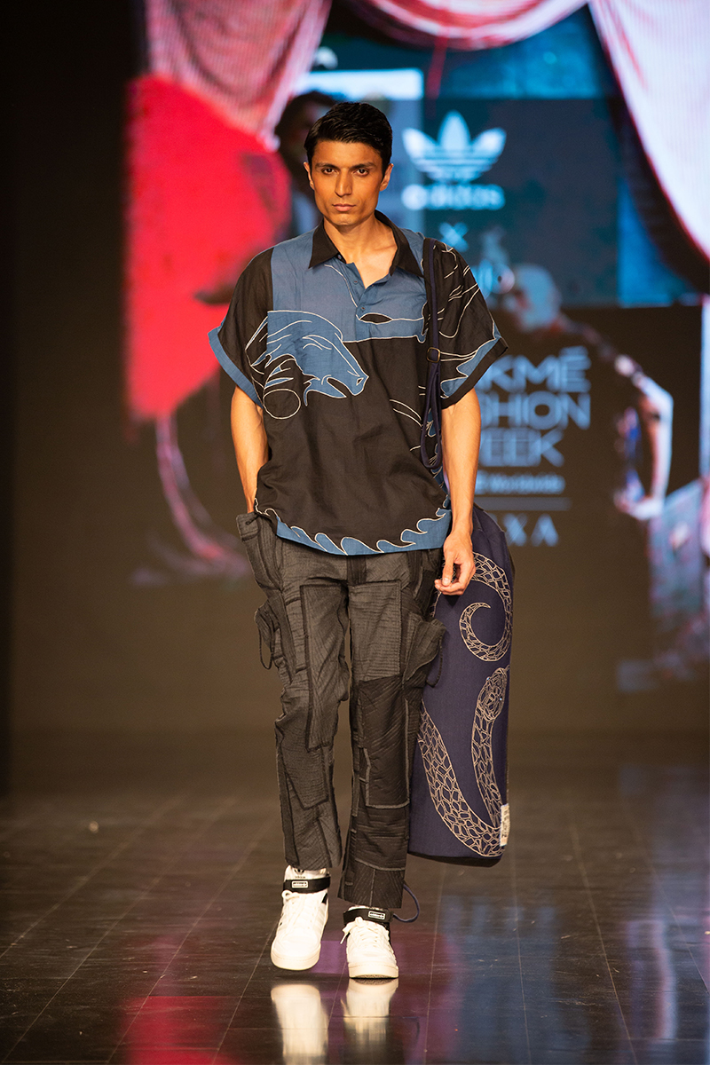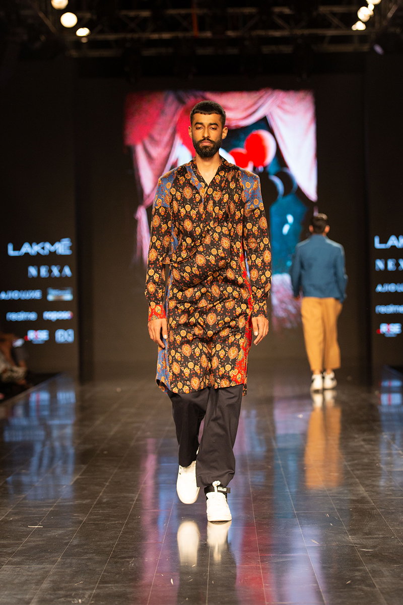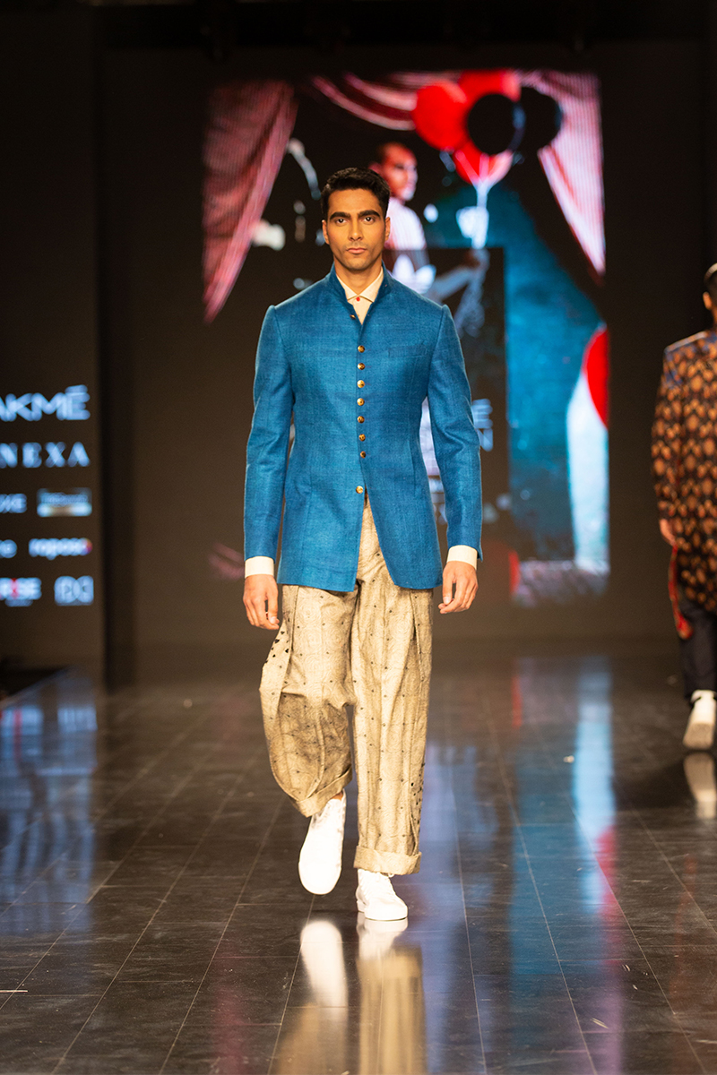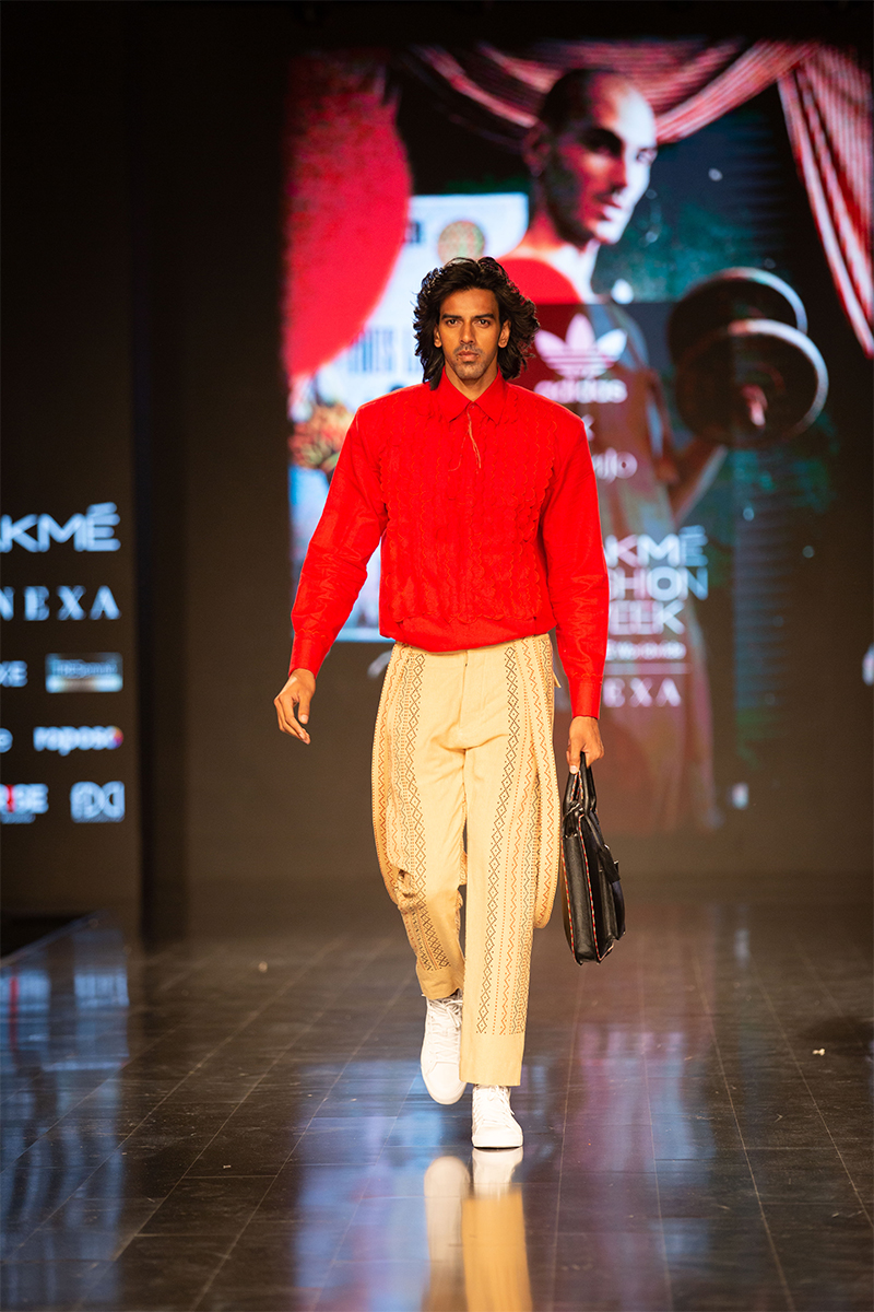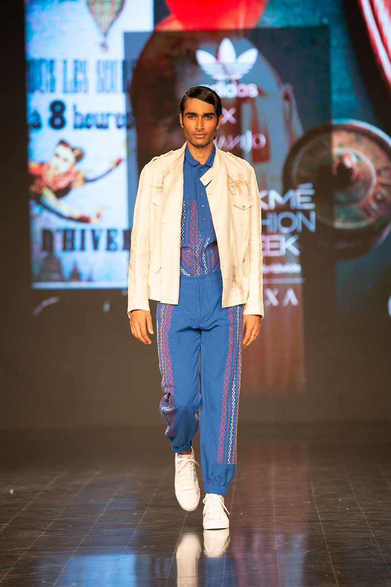 The collection is a dedication, to the spirit of the never ending show. A dedication to our craft, where we have brought together crafts hailing from the nooks and corners of our country. A mish mash of handlooms, indigenous embroideries, artisanal textiles into handcrafted pieces celebrating Indian craftsmanship, put together in cuts and styles that talk in a globally relatable language. Street wear, that literally comes from Indian street with a very artful flavour to it. An ode to a saying that goes like – the show must go on.