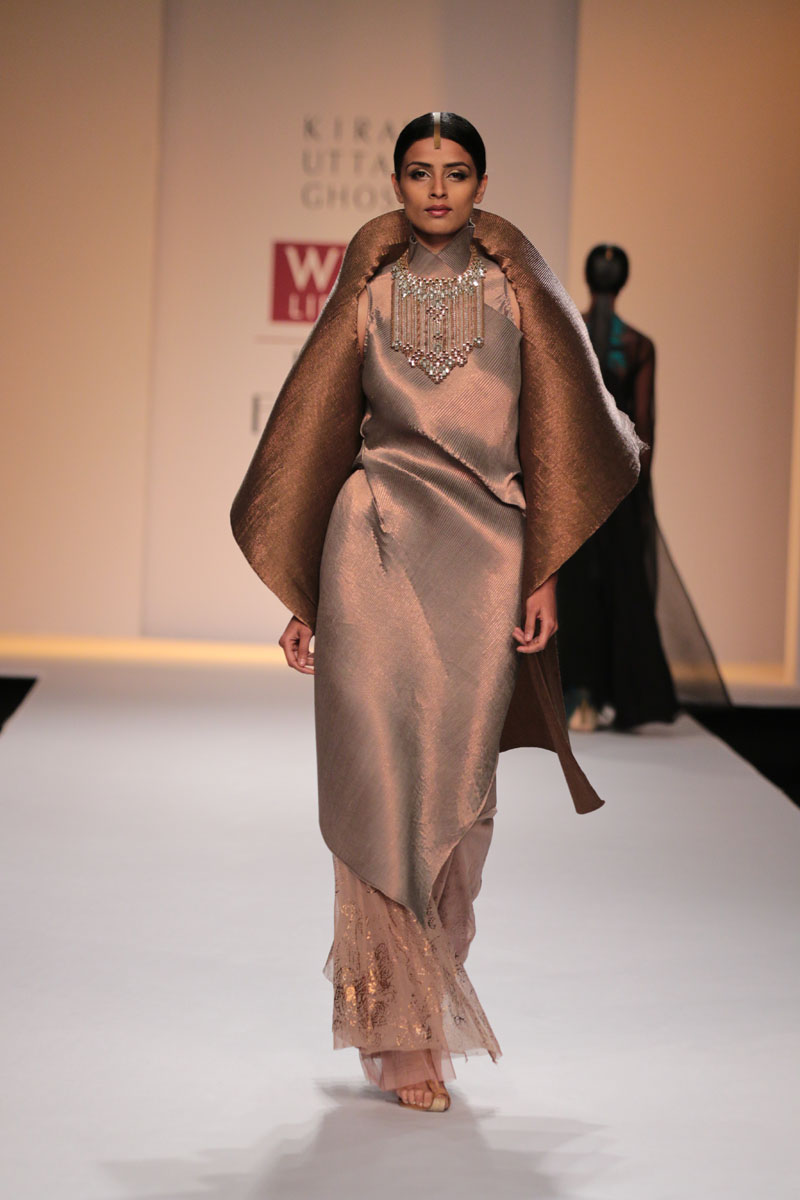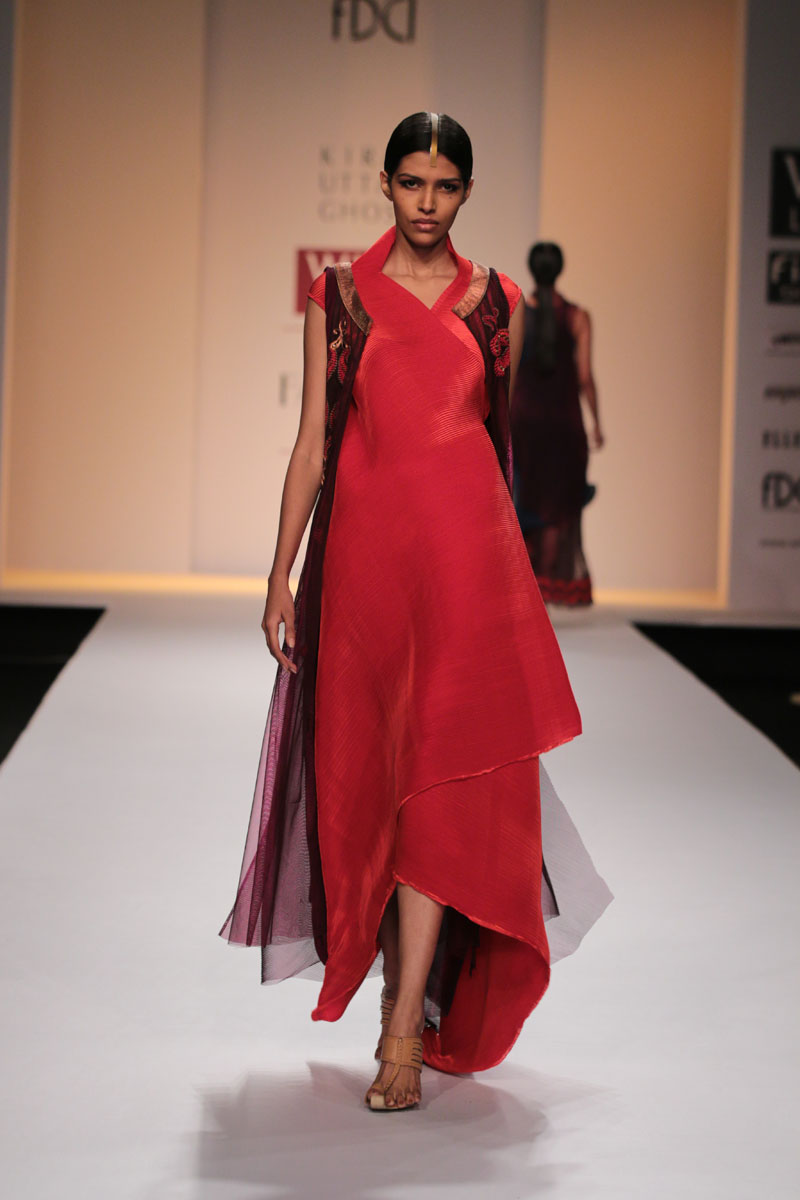 nThe main markets the designer caters to are India, USA and UK.nThe Autumn Winter range of womens wear includes kurtas, lehengas, shararas, sarees, sarongs and kurtis in my signature techno colors with a strong and slim silhouette.nFashion to her is, “To elevate the woman within, adding not just glamour, but something special and ultimately fabulous.”n nBuyers ContactnShrutikirti DujarinM: +91 33 24860476nT: + 91 33 24860476nE: kiranuttamghosh2007@gmail.comnW: www.kiranuttamghosh.comn nMedia ContactnRashi Rohatgi KhannM: +91 9810174614nE: rashi@wfive6@gmail.com