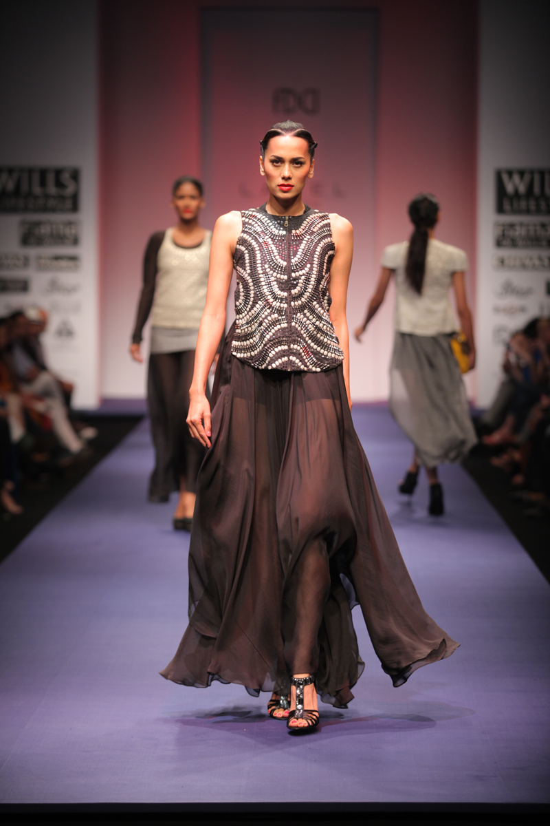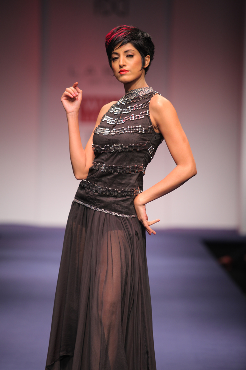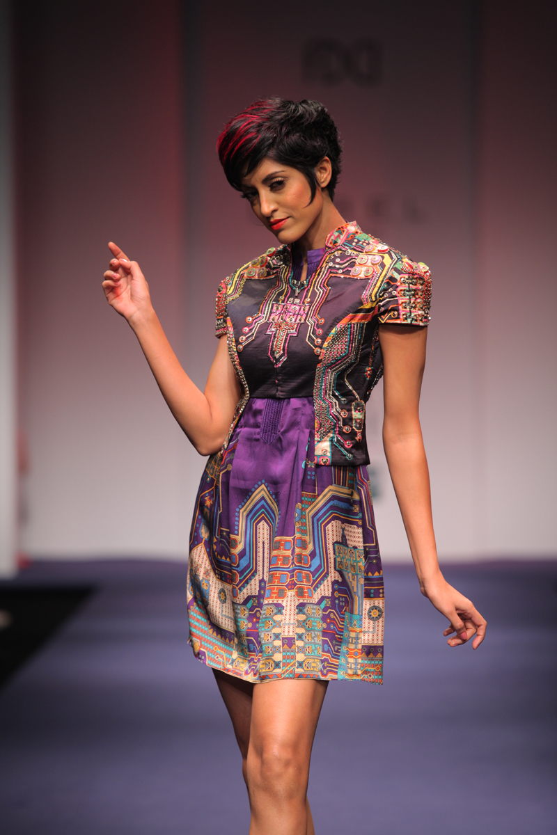 This new era brings with it an age of technology and invention. Perplexing digital graphics, optical fiber communication channels, smart gadgets are descriptive of the diverse technology surrounding us.n nThis technological era serves as the inspiration of the Spring-Summer 2012 collection. The collection encompasses bold and sexy looks with chic metallic accentuations. The intrepid feel of the collection is a reflection of the new age woman.n nThe fabrics are soft and delicate silk crepe, flat chiffon, dupion, cottons with hues tending towards midnight black, dusky beige, exquisite indigo and striking silver.n nBUYERS CONTACT nPooja NandanM: +91 9711160791nT: +91 124 4004001/2/3/4/5/6/7/8nE: pooja.nanda@ritukumar.comnW: www.ritukumar.comn nPRESS CONTACTnNeha DagarnM: +91 9810413997nT: +91 124 4004001/2/3/4/5/6/7/8nE: neha.dagar@ritukumar.comnW: www.ritukumar.comn