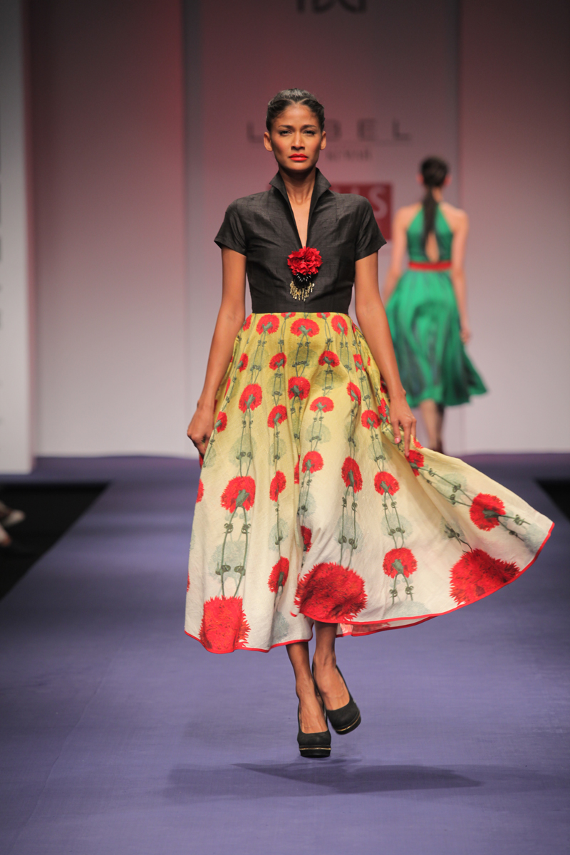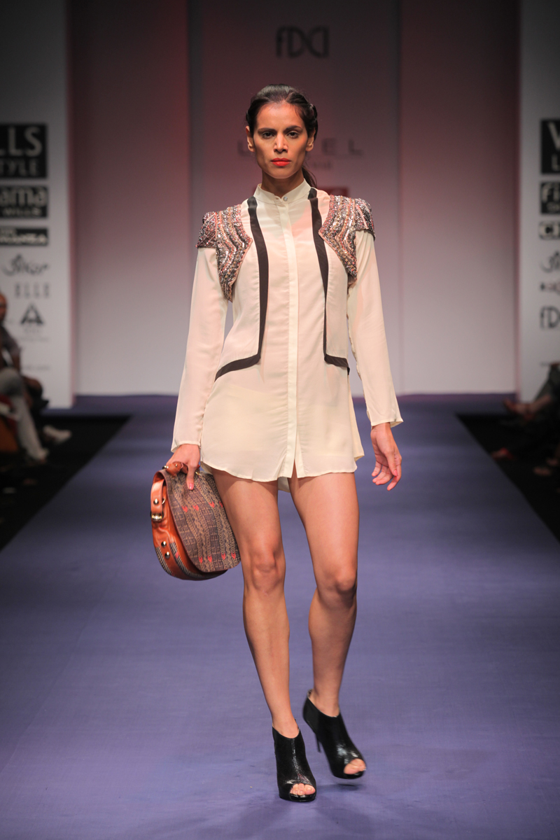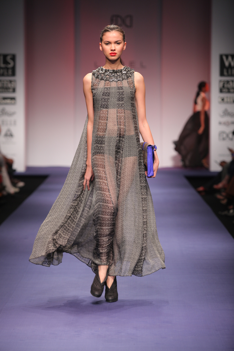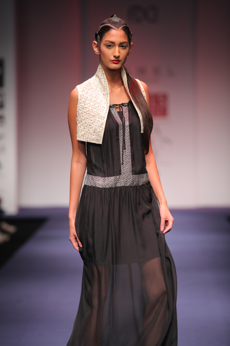 This new era brings with it an age of technology and invention. Perplexing digital graphics, optical fiber communication channels, smart gadgets are descriptive of the diverse technology surrounding us.n nThis technological era serves as the inspiration of the Spring-Summer 2012 collection. The collection encompasses bold and sexy looks with chic metallic accentuations. The intrepid feel of the collection is a reflection of the new age woman.n nThe fabrics are soft and delicate silk crepe, flat chiffon, dupion, cottons with hues tending towards midnight black, dusky beige, exquisite indigo and striking silver.n nBUYERS CONTACT nPooja NandanM: +91 9711160791nT: +91 124 4004001/2/3/4/5/6/7/8nE: pooja.nanda@ritukumar.comnW: www.ritukumar.comn nPRESS CONTACTnNeha DagarnM: +91 9810413997nT: +91 124 4004001/2/3/4/5/6/7/8nE: neha.dagar@ritukumar.comnW: www.ritukumar.comn