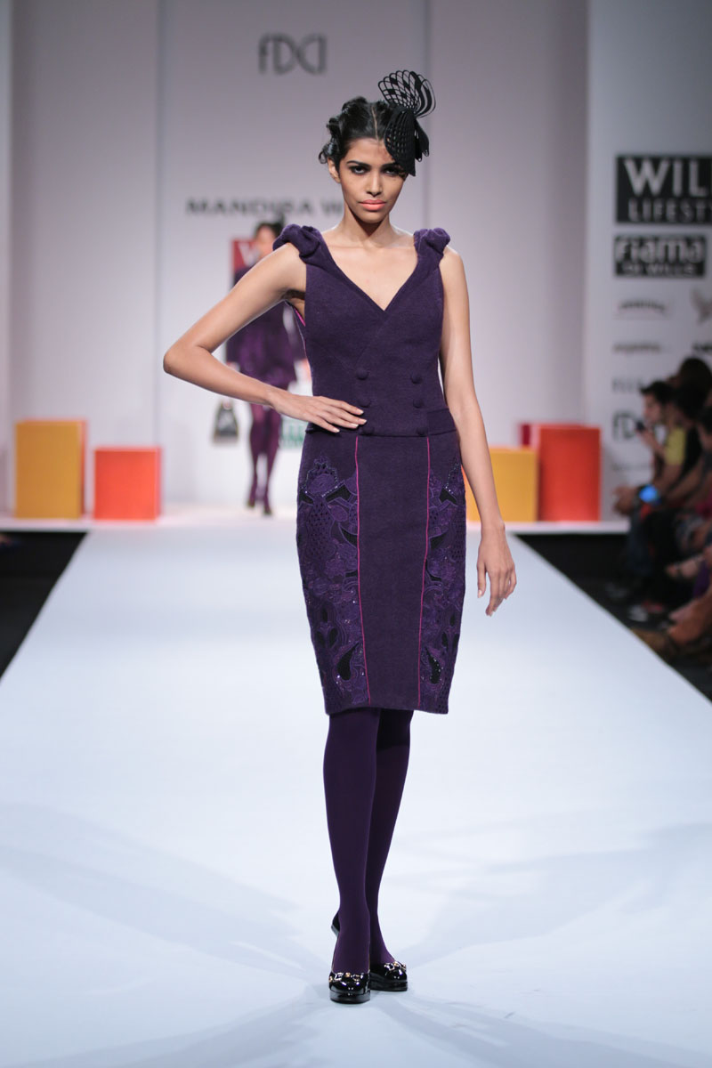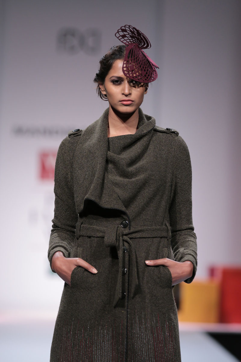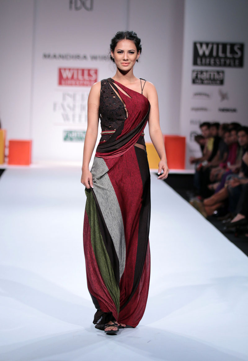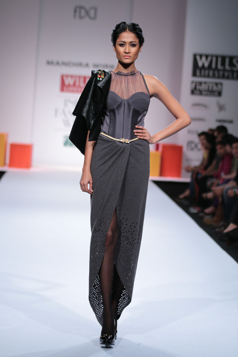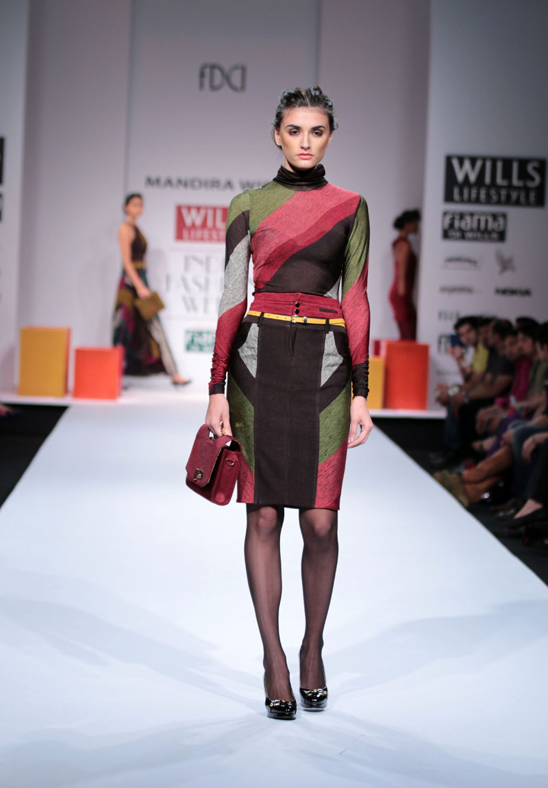 Mandira Wirk a designer wear label that has evolved over the last 13 years as a brand that has been groomed with an exquisite sense of luxury & modernism, symbolic of subtlety, feminity and romanticism. The brand has variety that expresses a consistency in its sensuous cuts, elegant detailing and impeccable quality. n nThe face behind the label, Mandira Wirk is a fashion professional whose inherent creativity was groomed in the most prominent fashion schools in New Delhi and London. Her pragmatism and global sense of fashion were honed in her restless jaunts through the high streets of London, Milan, Paris, Tokyo and New York. Having imbibed the ancestry of the International fashion business & learning through an experimentation process that plays with the seen and unseen senses, her evolution is attested with her brand footprint in cities like Toronto, San Francisco, New York, Los Angeles, London, Hong Kong, Singapore, Dubai, Riyadh, Jeddah , Hyderabad and Mumbai. Her flagship and exclusive store is located in New Delhi at “The Crescent” at the Qutub.n nMandira Wirks Autumn Winter 2014-2015 collection has been inspired by her own sensibility of design and style..The collection is a reflection of her imagination and perception about style-being a synthesis of modern feminity..nModern silhouettes with a touch of English sensibility including Wrap trenches, Sheath dresses, relaxed trousers, Color blocked drape dresses, jumpsuits with soft ruffle drapes ,blazers with geometric cuts ,Cropped jackets with accentuated shoulders, Cloaks, capes, turtle neck tops and skirts with mid calf length..nColors of the collection are Autumn palette from lead grey to terra cotta to Burgundy, amber, somber black and sangria maroon enhancing the effect of the warm colors..nFabrics used are Textured herringbone wool, striped mélange jersey, Touch of suede with Woolen fabrics in shades of Intense Purple and Dark Charcoal adding a Wintery Appeal.nRendering like 3d tonal needlecraft, architectural lasercut and tone on tone thread embroidery. nA new line of classy accessories has been created to be a part of the collection, which includes Baguette bags, Minaudiere, Bow clutches and Satchel bags.nColor block Stilettoes and Thigh boots adds an essence of Elegance to the collection..nBoning headgears inspired by the Latticework keeping Orgametric shape in mind and Braid drape long hand gloves with sheer and embellishments enhances the look.n”OMBRE”- shadow in French, explains the collection to be the reflection of Mandira Wirk herself i.e. elegance..feminity..Sensuality and romanticism n nBuyers ContactnTwinkle AroranM: +91 9811755911nE: crescent.mw@gmail.comnW: www.mandirawirk.comn nMedia ContactnNeha Varma nM: +91 9899198168nT: +91 120 4232153nE: neha@cleapublicrelations.com