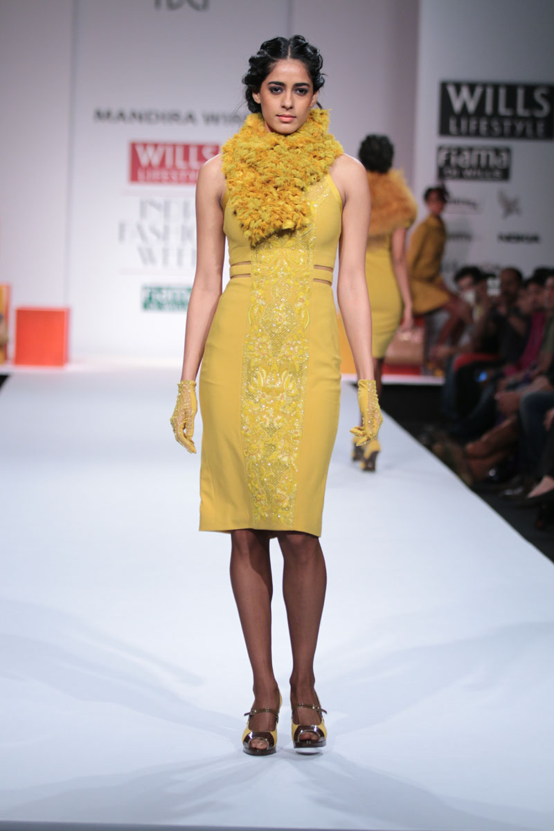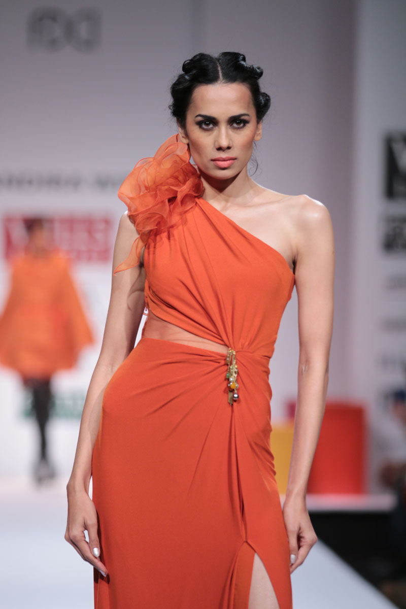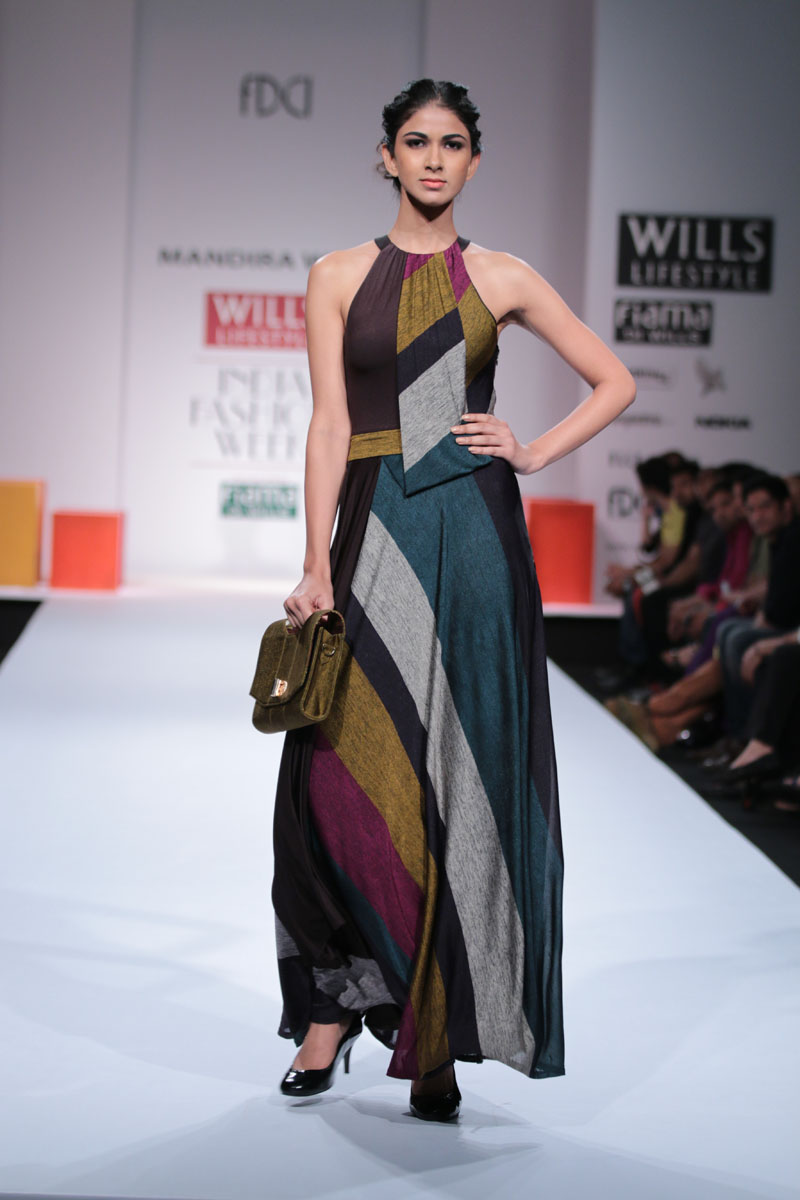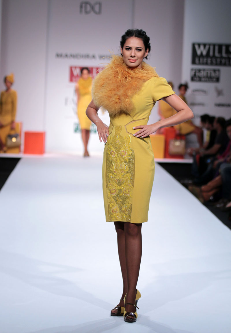 Mandira Wirk a designer wear label that has evolved over the last 13 years as a brand that has been groomed with an exquisite sense of luxury & modernism, symbolic of subtlety, feminity and romanticism. The brand has variety that expresses a consistency in its sensuous cuts, elegant detailing and impeccable quality. n nThe face behind the label, Mandira Wirk is a fashion professional whose inherent creativity was groomed in the most prominent fashion schools in New Delhi and London. Her pragmatism and global sense of fashion were honed in her restless jaunts through the high streets of London, Milan, Paris, Tokyo and New York. Having imbibed the ancestry of the International fashion business & learning through an experimentation process that plays with the seen and unseen senses, her evolution is attested with her brand footprint in cities like Toronto, San Francisco, New York, Los Angeles, London, Hong Kong, Singapore, Dubai, Riyadh, Jeddah , Hyderabad and Mumbai. Her flagship and exclusive store is located in New Delhi at “The Crescent” at the Qutub.n nMandira Wirks Autumn Winter 2014-2015 collection has been inspired by her own sensibility of design and style..The collection is a reflection of her imagination and perception about style-being a synthesis of modern feminity..nModern silhouettes with a touch of English sensibility including Wrap trenches, Sheath dresses, relaxed trousers, Color blocked drape dresses, jumpsuits with soft ruffle drapes ,blazers with geometric cuts ,Cropped jackets with accentuated shoulders, Cloaks, capes, turtle neck tops and skirts with mid calf length..nColors of the collection are Autumn palette from lead grey to terra cotta to Burgundy, amber, somber black and sangria maroon enhancing the effect of the warm colors..nFabrics used are Textured herringbone wool, striped mélange jersey, Touch of suede with Woolen fabrics in shades of Intense Purple and Dark Charcoal adding a Wintery Appeal.nRendering like 3d tonal needlecraft, architectural lasercut and tone on tone thread embroidery. nA new line of classy accessories has been created to be a part of the collection, which includes Baguette bags, Minaudiere, Bow clutches and Satchel bags.nColor block Stilettoes and Thigh boots adds an essence of Elegance to the collection..nBoning headgears inspired by the Latticework keeping Orgametric shape in mind and Braid drape long hand gloves with sheer and embellishments enhances the look.n”OMBRE”- shadow in French, explains the collection to be the reflection of Mandira Wirk herself i.e. elegance..feminity..Sensuality and romanticism n nBuyers ContactnTwinkle AroranM: +91 9811755911nE: crescent.mw@gmail.comnW: www.mandirawirk.comn nMedia ContactnNeha Varma nM: +91 9899198168nT: +91 120 4232153nE: neha@cleapublicrelations.com