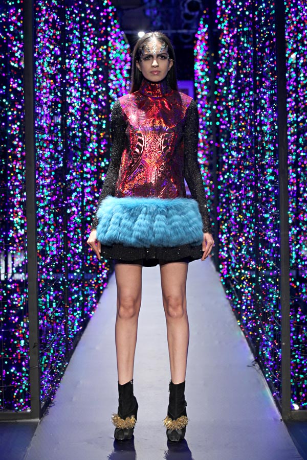 Manish Arora launched his Label MANISH ARORA and started retailing in India in 1997.n nIn 2000, Manish showed his ready to wear collection at the first ever India Fashion Week in New Delhi. An year later he launched his diffusion label FISH FRY and showed this collection in six leading cities in India. The opening of his first flagship store Manish Arora Fish Fry in New Delhi followed this. In 2002, he has a successful show at the India Fashion Week in Mumbai and started stocking at Maria Luisa, Paris. He entered into partnership with authentic sportswear brand Reebok to jointly market a line of contemporary sportswear under the brand Fish Fry for Reebok.n nManish had a successful debut at the London Fashion Week in September 2005. Manish exhibited some of his work at the Victoria & Albert Museum in London for an exhibition called “Global Local” in association with the British Council, India. He is stocked in 75 well known stores worldwide. A coveted fashion jury in a leading Indian publication Outlook adjudged him to be the Best Indian Fashion Designer and featured him on the cover of its March 2006 issue. He opened his first Manish Arora franchise store in Villa Moda, Kuwait and another Manish Arora Fish Fry store at Crescent at the Qutub, New Delhi. Manish showed a retrospective of his London Fashion Week collections at the very prestigious Victoria & Albert Museum, London in August 2007. Manish had a successful debut with his Spring Summer 2008 collection at the Paris Fashion Week in September 2007.nIn 2008, “Adventures of a Ladies Tailor”, a style documentary on Manish was aired on Discovery Travel & Living with him as the host of this highly acclaimed T.V show. Manish Arora Eyewear was launched worldwide through a licensing agreement with Inspecs UK. 5th Manish Arora store opened in August 2008 at India’s leading luxury mall Emporio in New Delhi. MAC Manish Arora limited edition collection of cosmetics was launched globally. Interview Magazine September 2008 Cover featured Kate Moss wearing Manish Arora. Katy Perry wore Manish Arora carousal dress at MTV Europe Music Awards 2008.n nIn 2009, Beautifully pregnant M.I.A. walked the red carpet at the Grammy awards in a Manish Arora dress. Britney Spears wore an India Inspired creation by Manish Arora for her Circus Tour. Rihanna performed in New York and London wearing Manish Arora SS’10. SWATCH The Manish Arora Collection of a limited edition of watches is launched globally in May 2009. Manish was elected as a member of the Chambre syndicale du Prêt à Porter des Couturiers on 7th May 2009. NIVEA Soft Manish Arora limited edition body care was launched globally in summer 2009. Lady Gaga wore Manish Arora AW’09 to Soho House, NYC. Carte blanche by Manish Arora, an invitation by the Minister of Culture France to exhibit his work for two months to the public at the windows of Palais Royal in Paris in association with Ministry of Tourism, India. POMMERY by MANISH ARORA, a special edition wraps designed by Manish for Pommery Champagne to be launched in 2009.n nIn 2010, Manish and Mercedes Benz India joined hands to show the best of his collections in the leading cities in India coinciding with a launch of a new model of their car. Inspired by Mercedes Benz collection of apparel and accessories is launched in all the Mercedes stores across India in August 2010. Katy Perry wears Manish Arora SS’10 to the 2010 ASCAP Pop Music Awards. Manish creates a global marketing campaign for Nespresso (A division of Nestle) called N-Art “Manish Arora for Nespresso”. The campaign is launched in November 2010 for three months and nearly 250 Nespresso boutiques globally including the flagship boutiques in Paris, Miami, New York, Munich, Sydney etc. will be designed by Manish. Manish Arora features in a global ad campaign for Swarovski Elements. He creates a line of limited edition Swarovski hearts. n nIn 2011, Manish Arora was appointed as Creative Director of Paco Rabanne. Manish showcases his first collection for Paco Rabanne at Paris Fashion Week SS’12. ?Manish Arora wins Clover Group Outstanding Fashion Innovator at the WGSN Global Fashion Awards 2011. Lady Gaga wore 6 looks from the Paco Rabanne SS’12 for the MTV Europe Music Awards. Manish Arora designed a limited festive collection for Monoprix. Manish Arora designed an exclusive Swarovski instillation for the Swarovski 10th Year Celebration, New Delhi, India. Manish won Marie Claire Awards: ‘Fashion Label With Best Retail Vision’ and ‘Editors Choice Award’. n nIn 2012, Manish Arora designed a customized stuffed Pug toy for Luisa Via Roma as part of the ‘Happy Dogs For Happy Kids Project”. Ellie Komper wore Manish Arora SS’12 to the Golden Globes Award Party. Louisa Roe wore Manish Arora AW”09 to the Nylon, Music Issue Launch Party. n n nBuyers ContactnN: Radhika Gupta nM: +91 919810520907nT: +91 120 4018400nE: radhika@threeclothingco.comnW: www.manisharora.wsn nMedia ContactnN: Sonja Krippendorf nM: +91 9582317893nT: +91 120 4018400nF: +91 120 2425562nE: sonja@threeclothingco.com