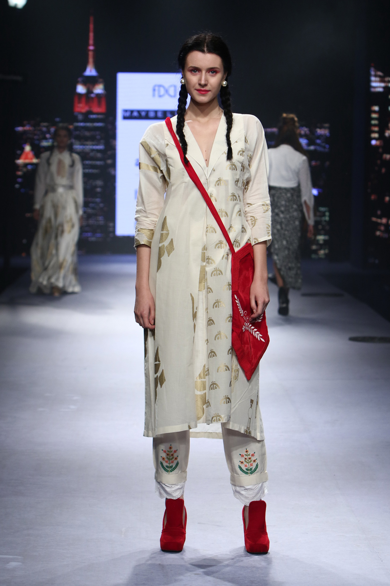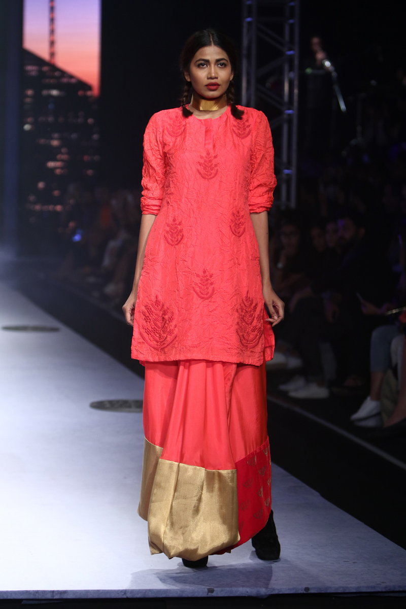 nThe label made its fashion week debut at Lakme Fashion week, titled Gen next. The strength of the label lies in the ability to marry traditional Indian sensibilities and aesthetics while keeping the modern context alive. Since its inception the label has worked intensively with prints,and the ability to turn mundane everyday objects into prints has been the strongest USP of the label which have translated into huge trends in the country. With the target age group between 18-30yrs the label has also worked to make the traditional Indian silhouette of the sari more consumer friendly. Apart from being an ever evolving label we have worked with weavers from many remote areas in India like Himachal , Bangalore and Hyderabad and created woven designs. The biggest plus of the silhouettes are that they are age versatile as well as those that can be easily worn around the world. The fabrics used are extremely lightweight and easygoing and Indian textile and handloom merged with quirky,outlandish prints in vibrant colors with comfortable & fuss free garment construction is our main area of expertise.