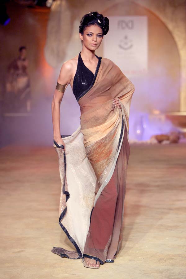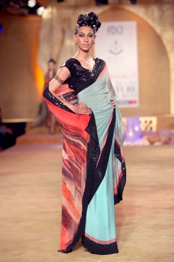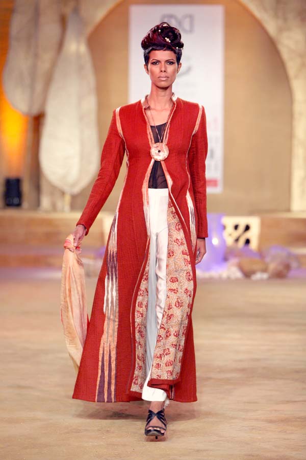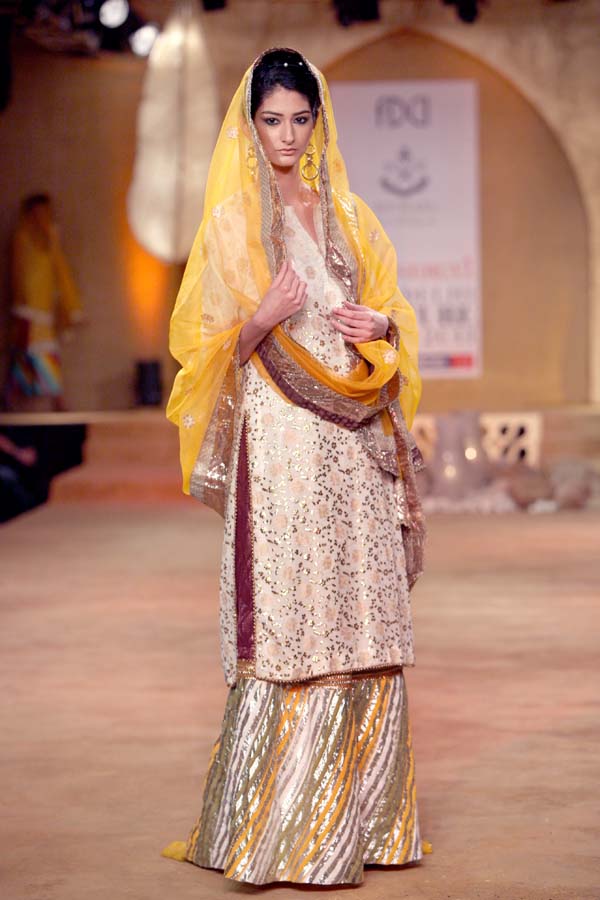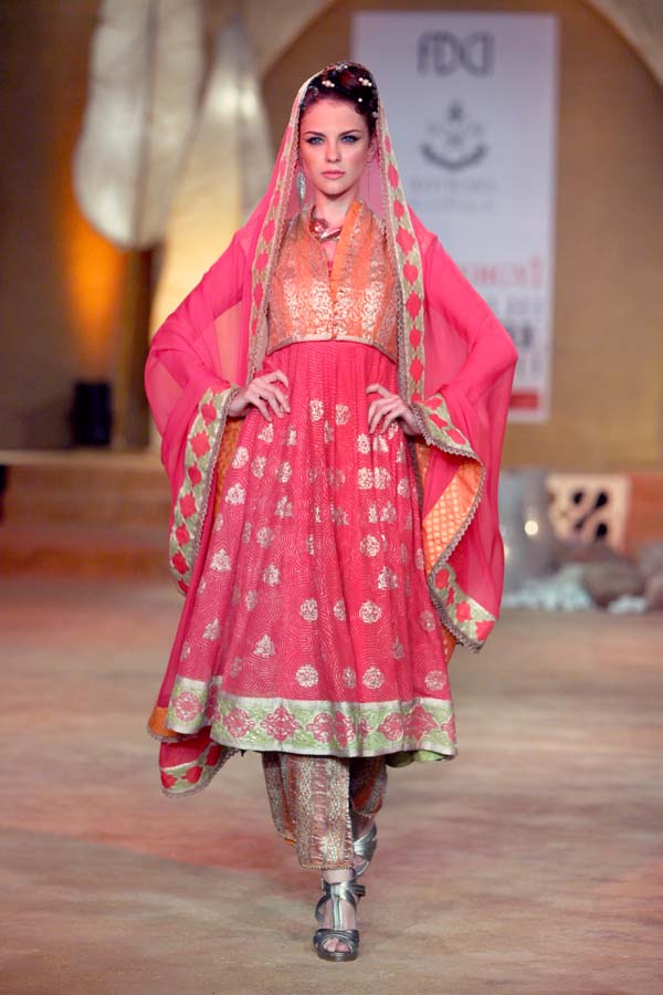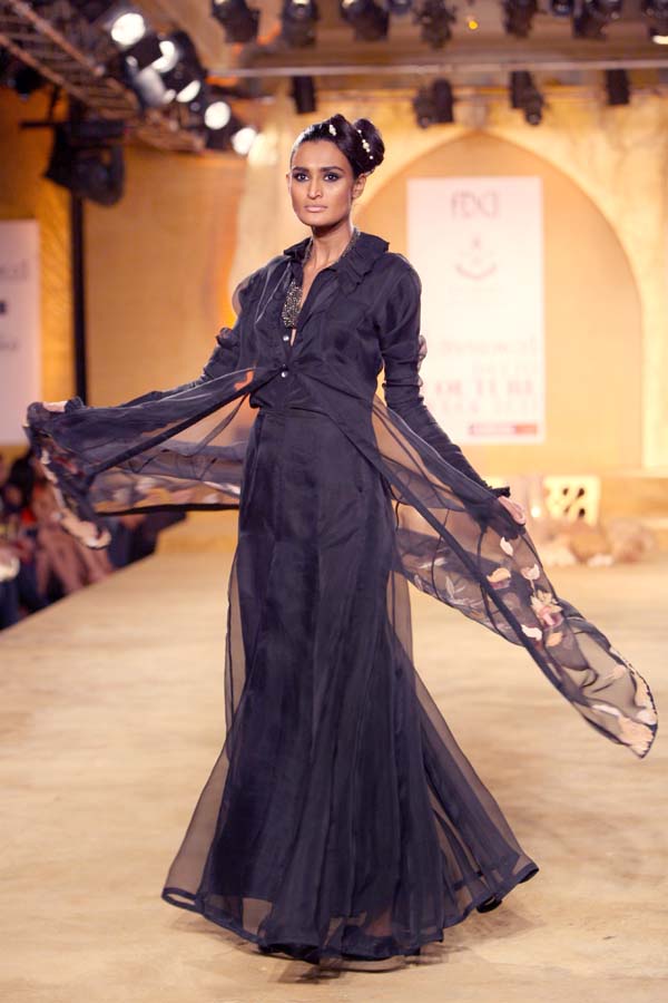 The collection at this Couture Week in Delhi showcases 4 diverse inspirations. Kotwara by Meera and Muzaffar Ali has often used paintings by Muzaffar Ali both as a palette and as a form. This collection opens with pastels by Muzaffar Ali in earthy and natural tones printed on crepe de sheen and chiffon in flowing silhouettes. This is followed by the ikat collection, an evolution of appliqué, inspired by the traditional ikat weave in quilted occasion wear coats. The same appliqué technique has been applied to the chintz form, creating silhouettes in layers of organza’s, chiffons and net. The collection ends on Awadhi opulence, a sequence of farshi ghararas, lehngas, peshwaz, choghas and saris.n nBUYERS CONTACT nMawi Gangte nM: +91 9999013526 nT: +91 11 46695871 nE: ali.meera@yahoo.com nW: www.muzaffarali.comn nPRESS CONTACT nMs. Heena Khanna nM: +91 9818800306