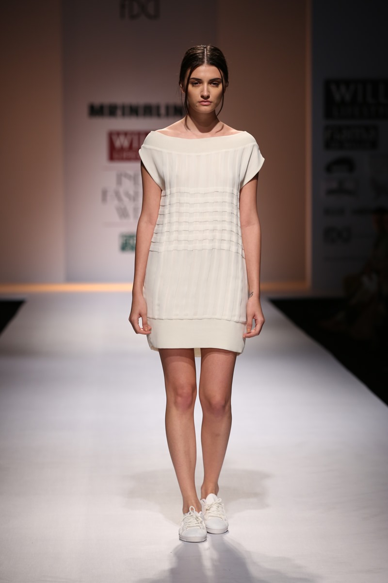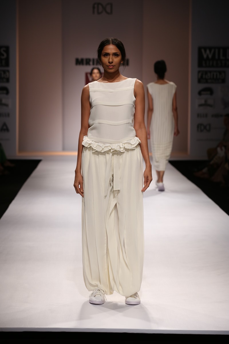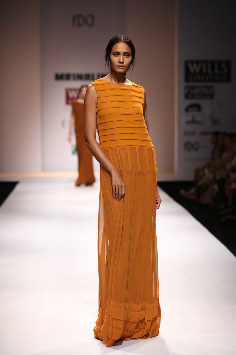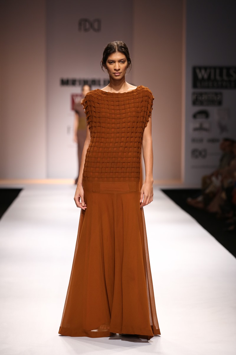 An eponymous label, Mrinalini was launched in 2008. Following a linear momentum, Mrinalini aims to filter fashion down to design, distill tradition and counter influences to create a line for people who don’t like just ‘lines’ without designs.n nMrinalini launched in India in 2007, a philosophy seeking to merge left with right, to power into a universal culture with the cable connecting to India. The brand currently retail across India, the Middle East and NYC.n nThis SS-14 collection plays on “De-saturate”, where the saturate aims to peel of layers of artificial varnish to reveal the natural tones underneath. Lounge dresses, wedge hemlines, wood block jackets, and windowpane shirts in a palette of Wood, white sand, tan, stone and gravel. The Spring Summer 14 collection is an escape line n nBuyer’s Contact:nMrinalini Gupta nMobile: 91 9999010769nTel (with area code): 0120 2536696n nMedia Contact:nNandini Vaish/Mrinalini GuptanMobile: 919873243428/919810912332nTel (with area code): 0120-2536696