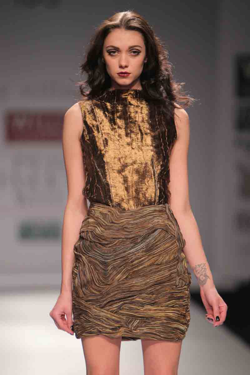 Rimzims label, my village was established in October 2007.nIt reflects her simple design philosophy of understated, chicngarments. An alumnus of Pearl Academy of Fashion, Rimzim is anminimalist by nature and is inspired by the imperfections around.nA believer in the concept of fashion being an art form, Rimzimnworks on creating new surfaces and innovating different fabricntextures.