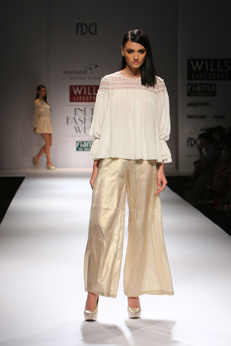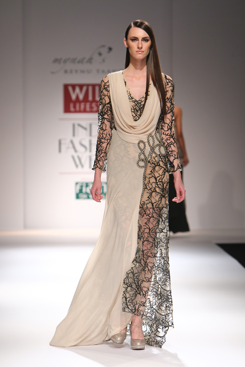 Some people extend their passion and make it a profession and thats when you completely enjoy every moment of work. Such is the case with Reynu Taandon whose clothes exuberate a great deal of spirit and energy with the colors and Embellishments she feels free to indulge in. She brings out a flamboyant perspective to colour and contour. The hallmark of every design is elaborate draping, exquisite construction and immaculate finish. With clean, clear silhouettes and an extraordinary sense of style, her designs speak an international language. Her couture is a perfect paean to an individual expression where each piece created enhances the identity of the wearernReynu Taandon with a belief in high-end fusion she aims at her garments being graceful and elegant which oozes femininity and sensuality. Reynu aspires to make Indian fashion more popular and affordable and she is having fun unlimited on the fashion track.nREYNU TAANDON earlier was a registered member of FDCI and in Recognition of her Excellent Performance in Fashion Industry, the FDCI in Dec, 2012 has upgraded her membership to associate category, thus according her an opportunity to be more involved in the affairs of FDCI.n nBuyers Contact:nReynu TaandonnM: +91 9811016638nE: mdreynutandon@gmail.comn nMedia Contact:nRashi RohtaginM: +91 9810174614nE: rashi@wfive.innW: www.wfive.inn n