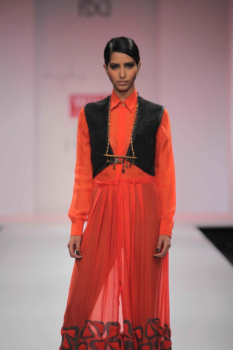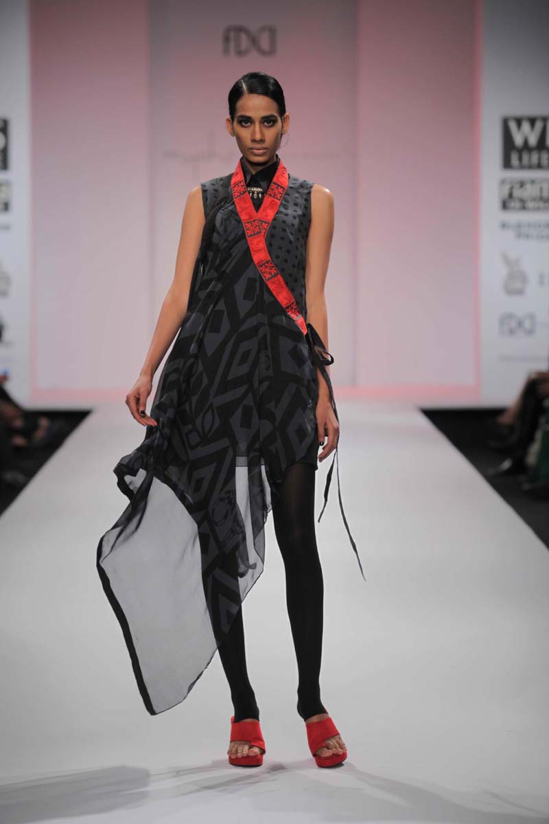 Easy, relaxed and organic each Myoho ensemble is derived fromna storehouse of earthy Indian handlooms.nKeeping the handwriting essentially subtle & maintaining anrefined aesthetic, Myoho stands for understated elegance &neasy, relaxed wearability. Maintaining a definite contemporarynlanguage, we attempt to blend the essence of Indian handloomsnwith a subtle modern sensibility dipped in a palette dominatednin magical Indian tones.nWith their unique touch of delicate details, simple harmoniesnand rich textures the brand has come to epitomize a relaxednsensibility and an eternal feminity.