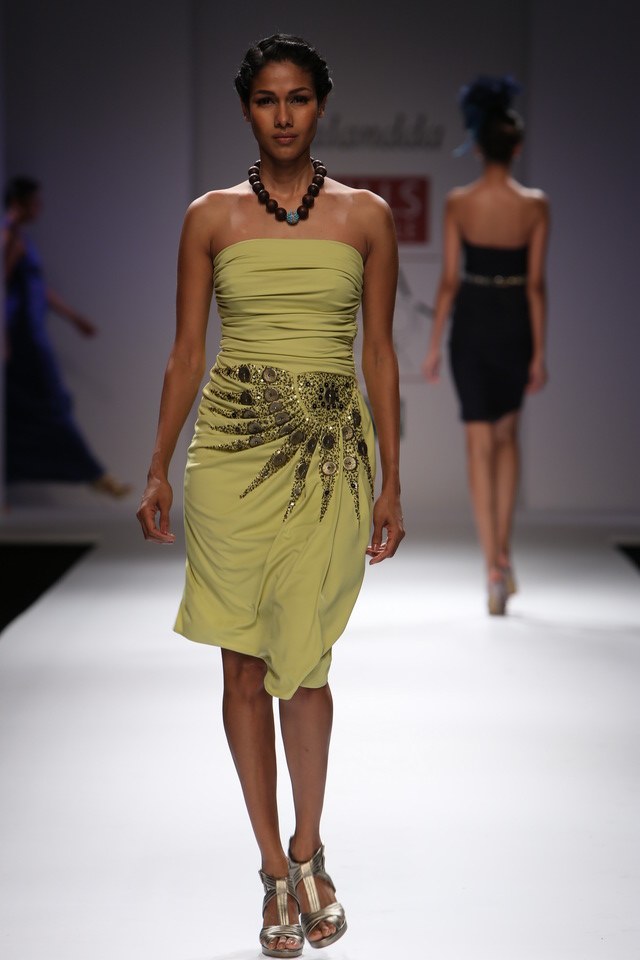 Nalanddas SS 2013 collection is called The Je Taime Girl. The collection is about the girl everyone loves to love, a confident woman of strength. The collection offers a range of silhouettes slim cut business classics, cowl dresses, flowing gowns and resort wear.