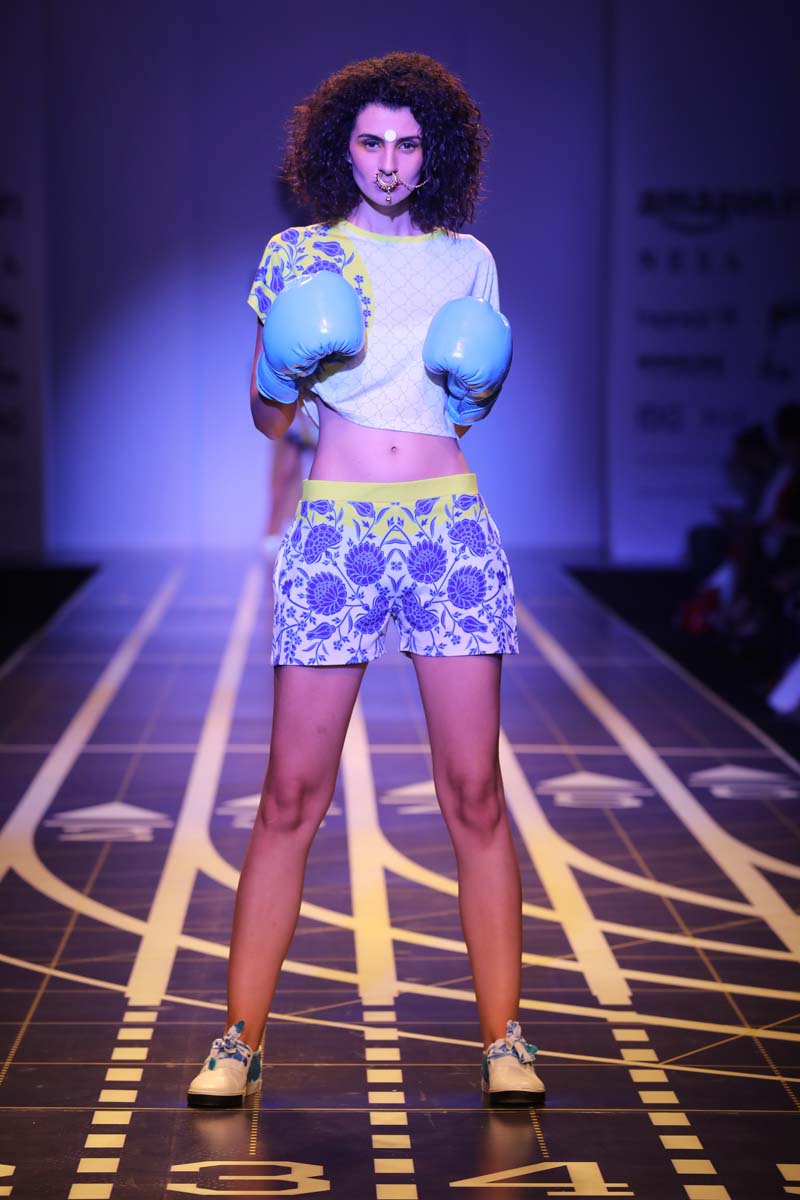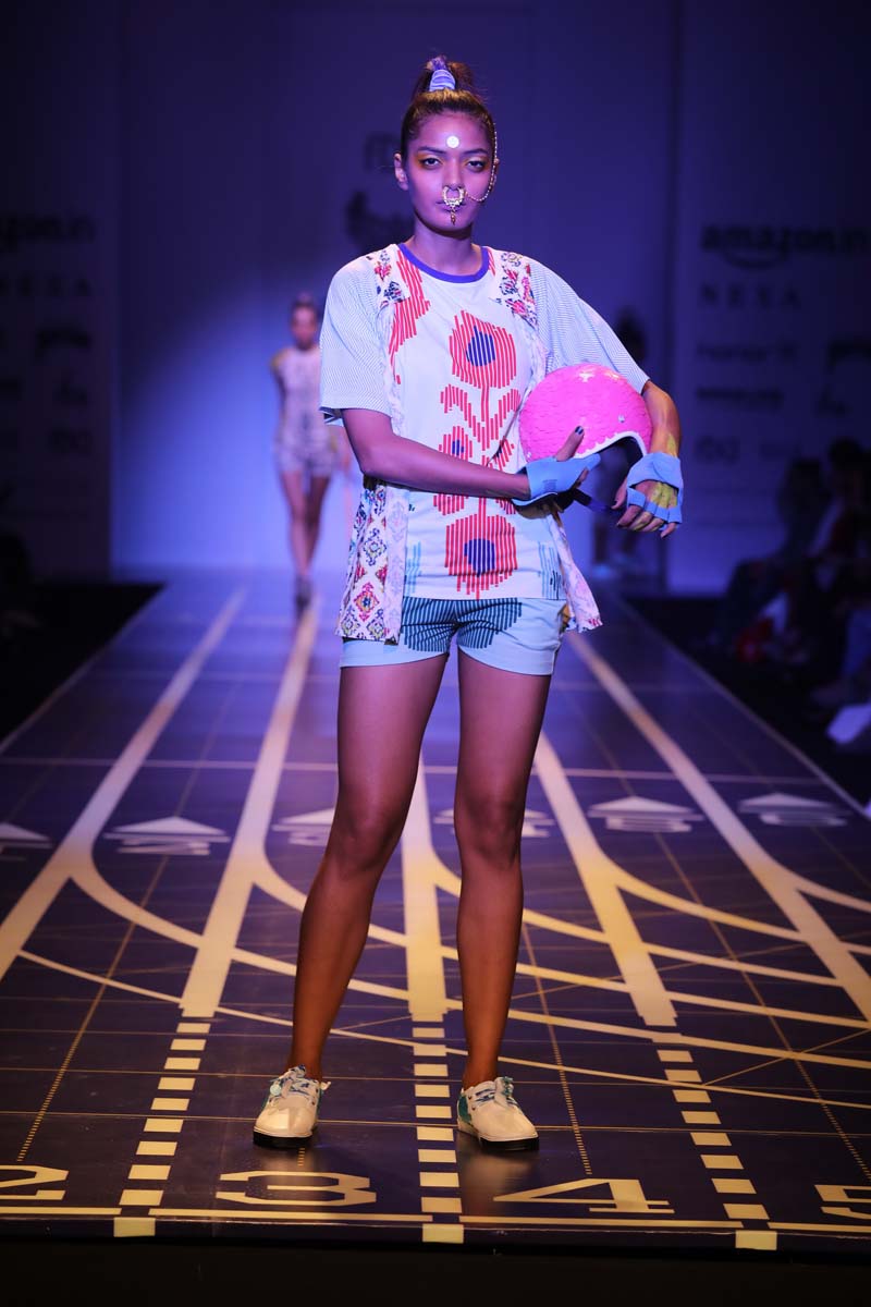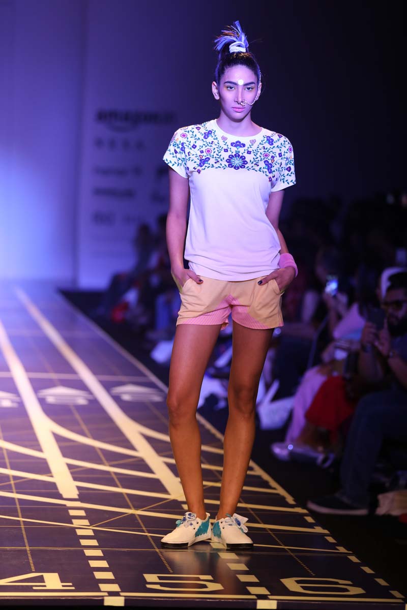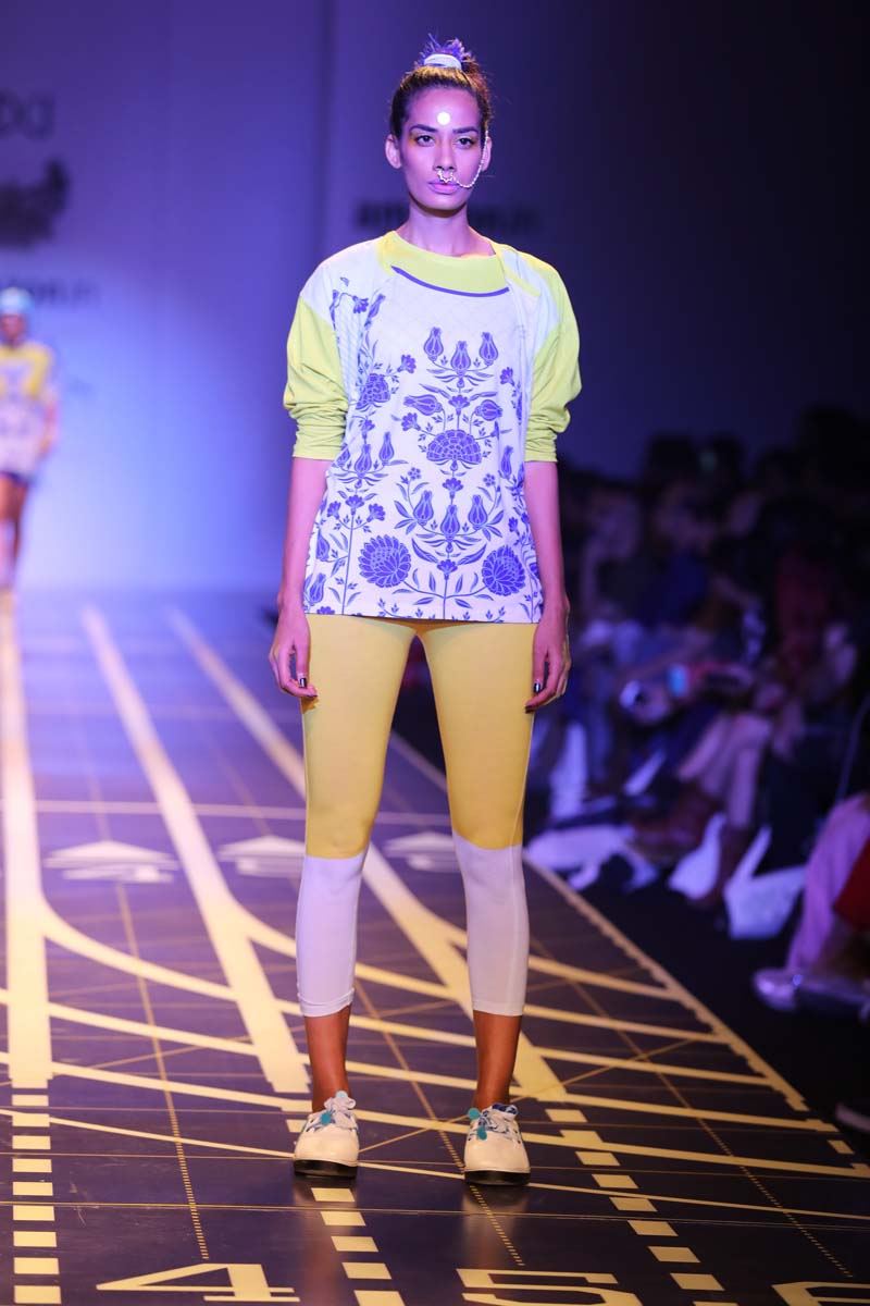 nThis is a collaboration between Nida Mahmood and Deivee (co-created by milind soman and darshan m). The very famous initiative pinkathon by milind soman is the basis of this collection. The collection is an atheleisure/sporty line which is inspired by the four zones of india.