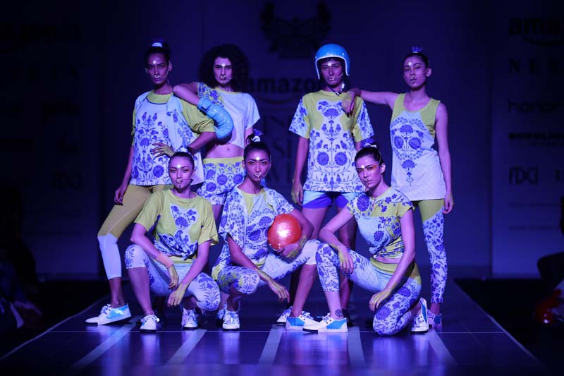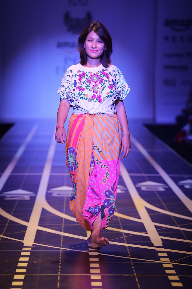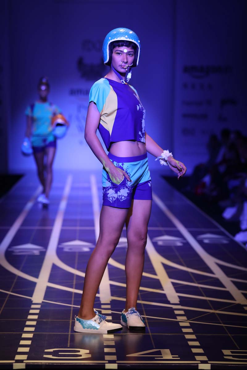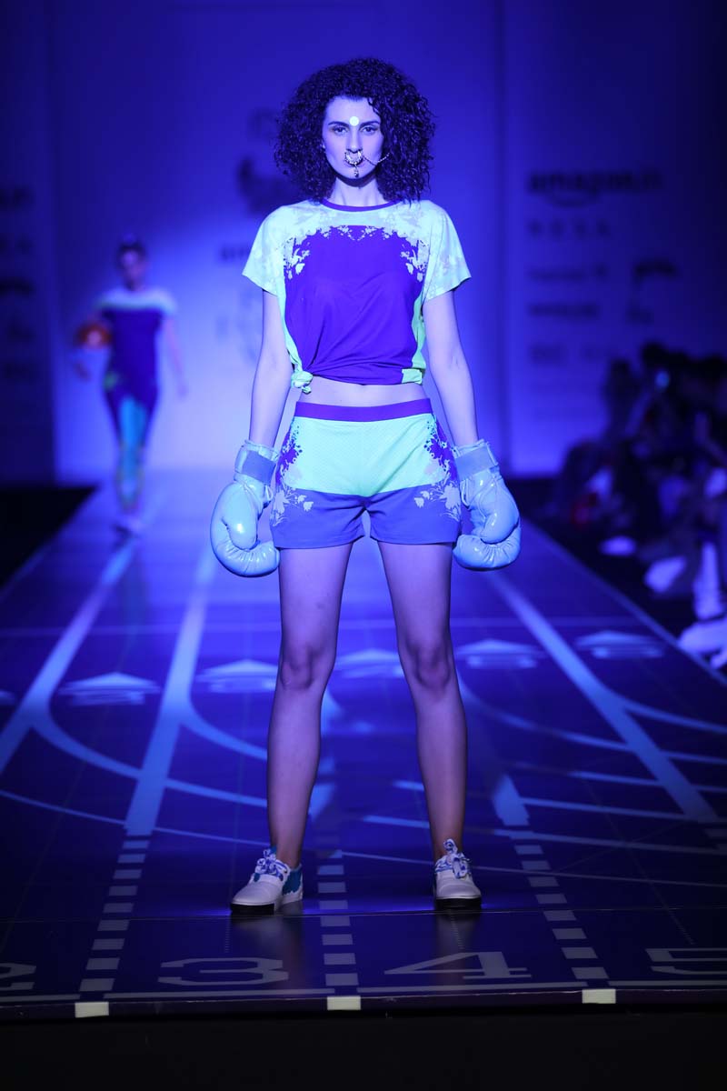 nThis is a collaboration between Nida Mahmood and Deivee (co-created by milind soman and darshan m). The very famous initiative pinkathon by milind soman is the basis of this collection. The collection is an atheleisure/sporty line which is inspired by the four zones of india.