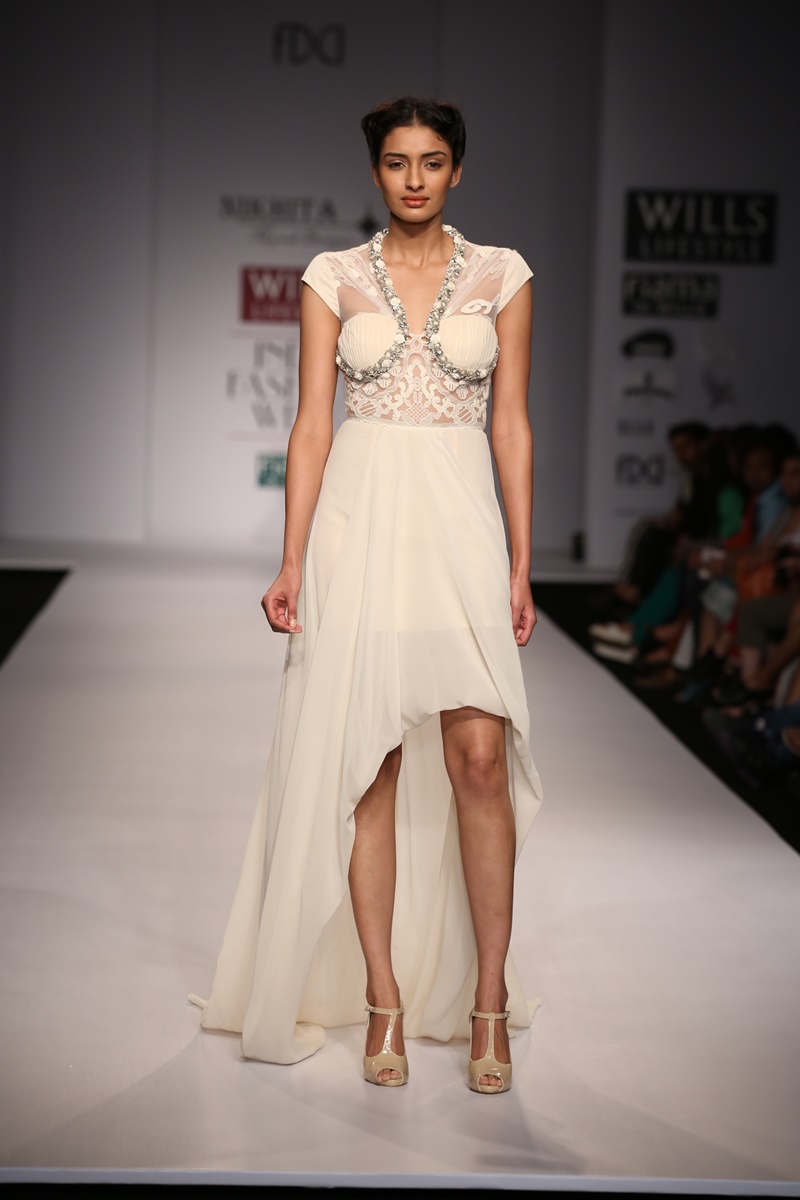Being surrounded with at what it takes to become a designer – fabrics, threads, scissors & family members that worked all life in designing & exports, Nikhita decided to enter the enticing would of fashion in 2007.n nAfter joining her mother in designing & making evening gowns, Nikhita recognized her true fervour of Fashion, in which, led to the birth of the brand Nikhita – Mynah Designs. n nNikhita commenced her career with solely designing intricate, refined yet nicely priced evening wear gown for the in vogue & graceful woman.n nIn 2009, Launched Gowns Collection with FDCI in WILLS Fashion Week, Delhi , since then the label has actively increased its market in Delhi, Bombay, Dubai, Riyadh, Paris New York & many more. nSpring Summer 2014 collection of Nikhita revolves around three colors ivory, pale pink & coral all florals around the necklines. Extensive use of lace, crotchet & self embossed georgette is seen. nApart from the usual drapes of Nikhita, this time collection has some interesting long sheer dresses paired with trousers and extremely short dresses that can make red carpet cameras pop.nGowns this season is more edgier with a younger feel to it.nCollection can be princessy at times but tempered with roomy trousers & sheen laces, it has a welcome freshness too…..n n nBuyer’s Contact:nNikhita TandonnMobile: +91 9899104122nTel: +911126659487nEmail ID: nikhitatandon@gmail.comn nMedia Contact:nNikhita TandonnMobile: +91 9899104122nTel: +911126659487nEmail ID: nikhitatandon@gmail.com