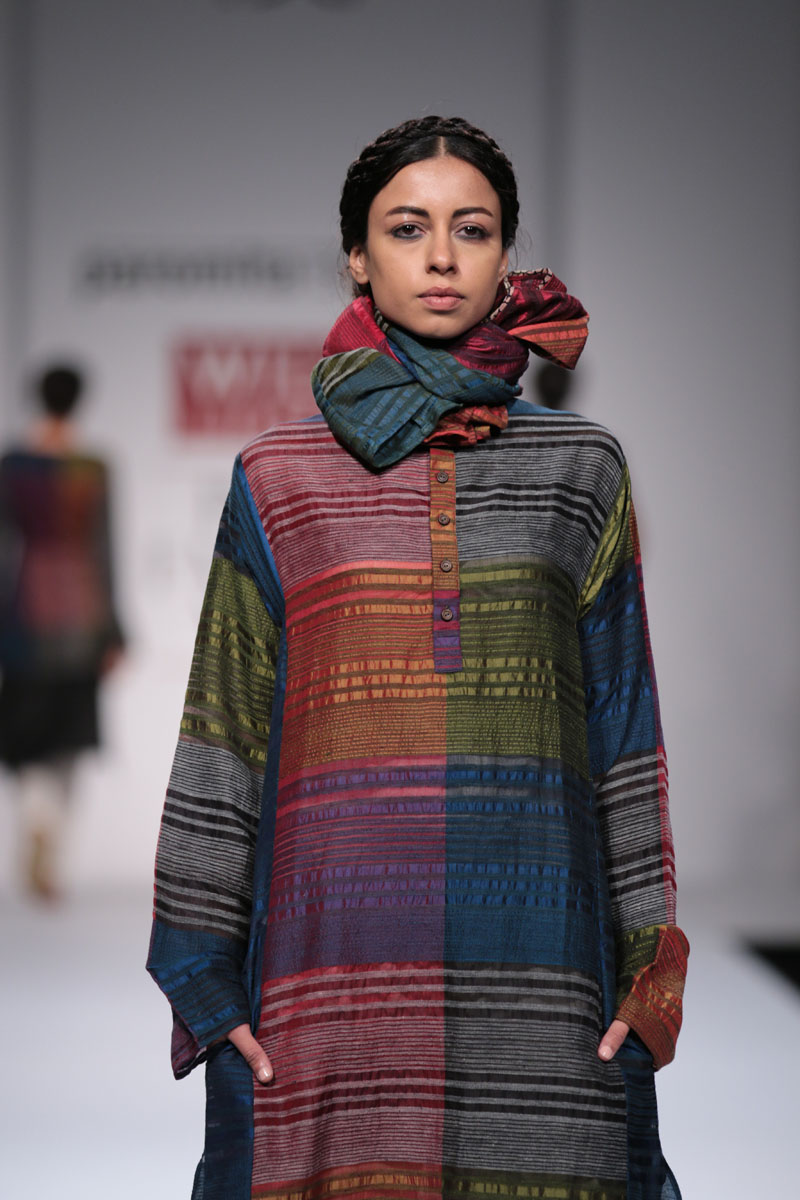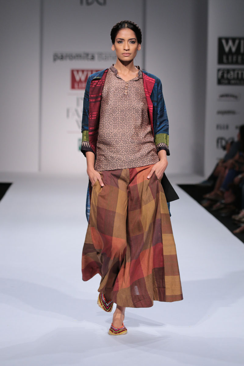 Initiated by a textile design graduate from the National Institute of Design (NID) Ahmedabad, the brand works closely with artisan and craft clusters around India narrating the saga of the craft persons and their weave through simple and effective garments. The garments are a mode of storytelling emphasizing the feel of the “handmade”. n nThe fashion week collections of the brand are about telling a tale through the clothing : a tale of the hand-made and the hand-loomnThis Fall/Winter 2014 collection consists of 3 stories : Starting the collection are textured handwoven cotton weaves woven by women weavers to Handwoven silks in colour blocks. The third story is a block-print story using the natural dyed technique of Ajrakh. This ancient print technique dating back to atleast 4000 years uses the geometric forms along the lines of the Islamic grid structure. The designer has also explored with wool for the first time with merino wool stoles inspired by Kinnaur motifs from Kangra valley. A collection to appeal to an Indian or pan-Indian context in a contemporary settingn n nBuyers ContactnParomita Banerjee nM: +91 9903383139nT: +91 33 4067 4107nE: paromita.designs@gmail.comnW: paromita-banerjee.blogspot.comn nMedia ContactnParomita Banerjee nM: +91 9903383139nT: +91 33 4067 4107nE: paromita.designs@gmail.com