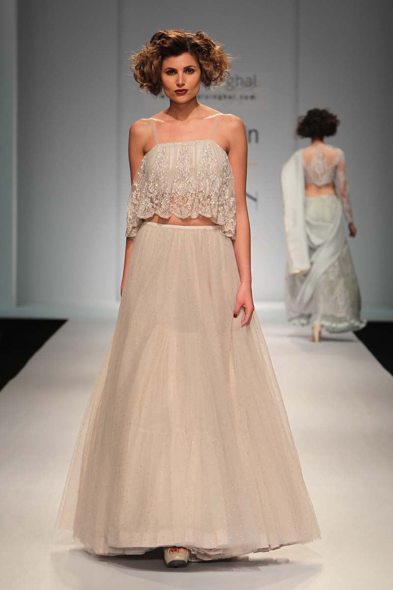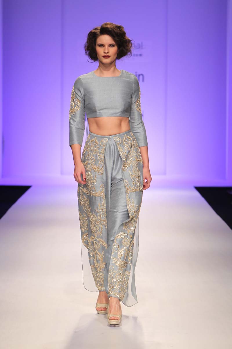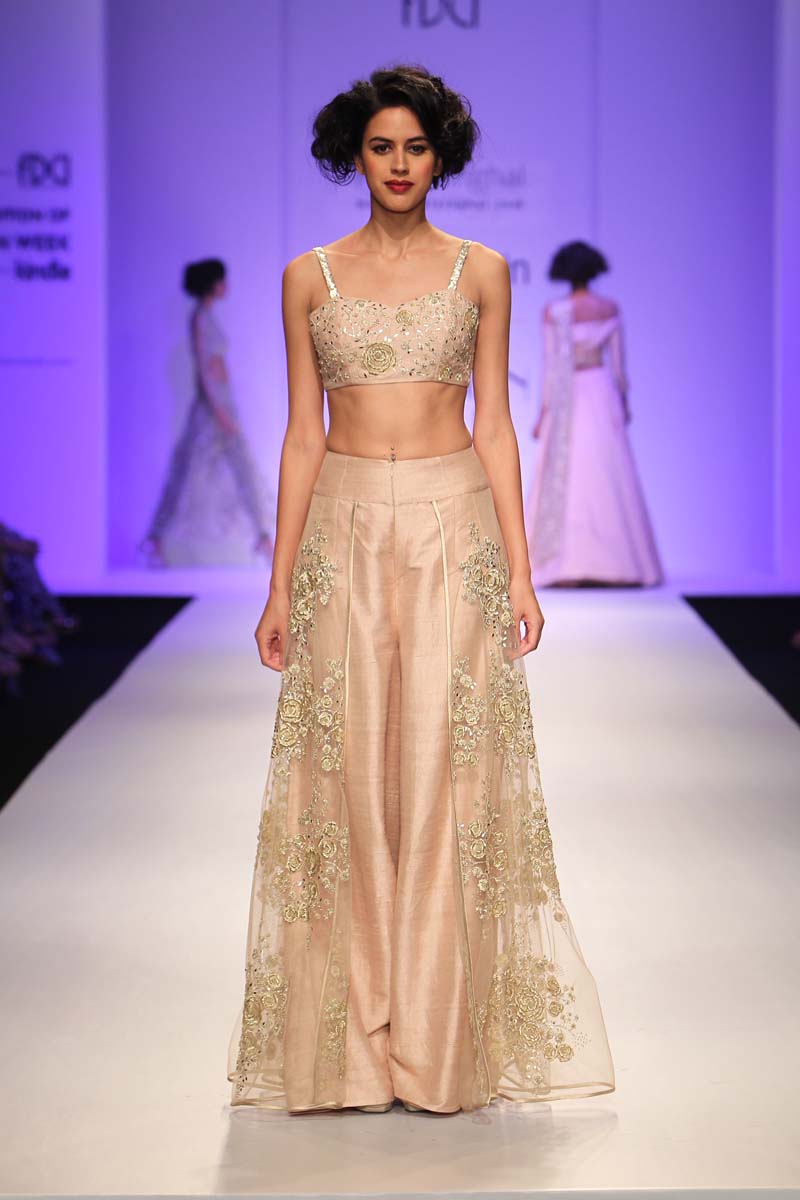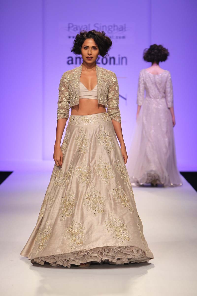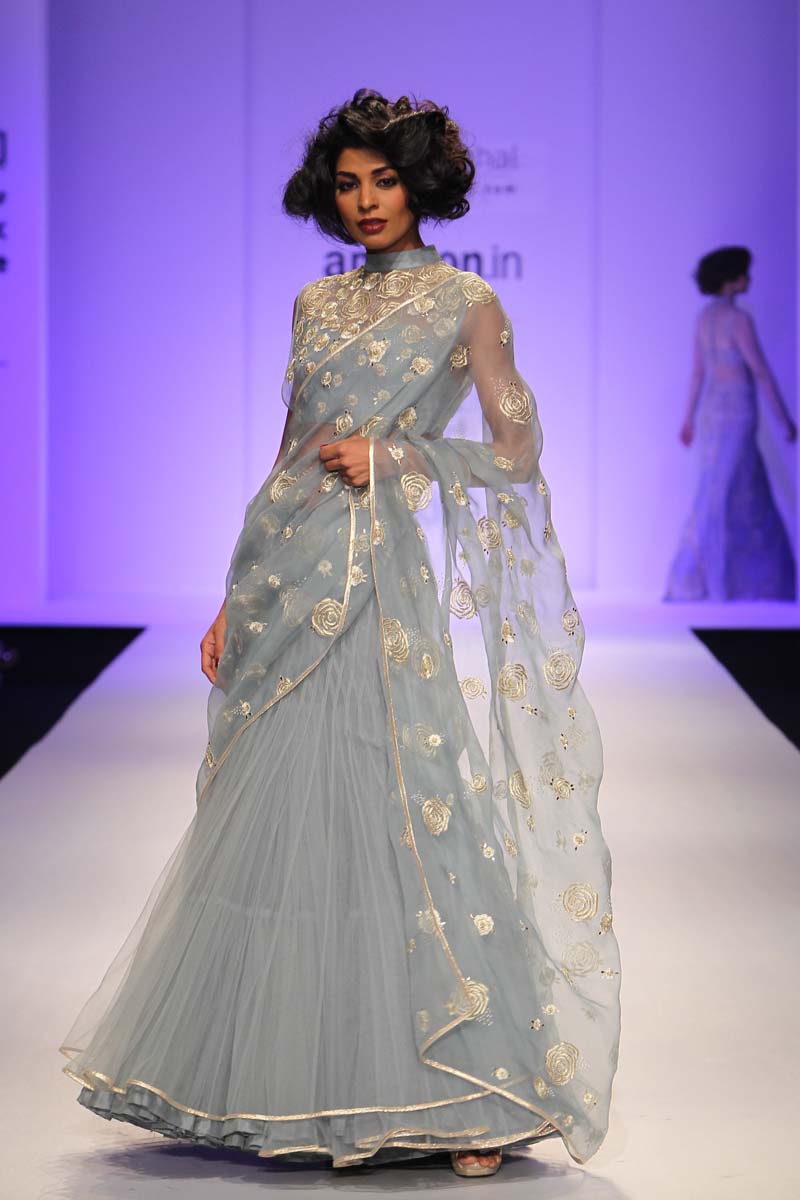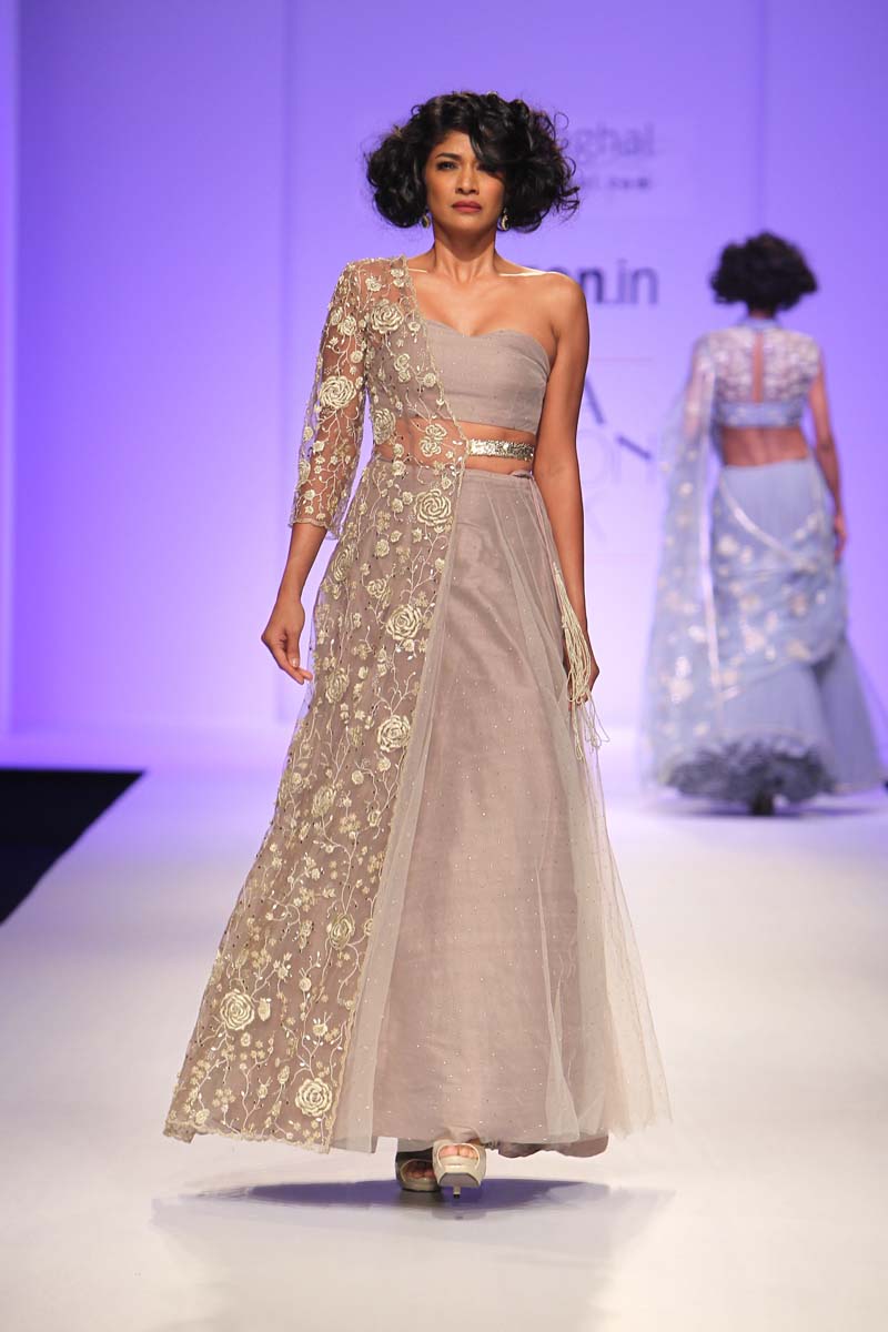 Payal Singhal is a leading South Asian fashion house established in 1999. Singhal designs for the quality and design conscious who value and appreciate the art of fashion. The ‘Payal Singhal’ signature look is contemporary Indian clothing and translates effortlessly from Indian to Global. Singhal’s line is available at www.payalsinghal.com , retail stores across the world, online stores and travels with its unique trunk shows world over. The Payal Singhal AW ’15 presentation is a collection of contemporary evening and bridal wear in muted muddy pastels with delicate gold embroideries done in tulle, silk and organza.n n