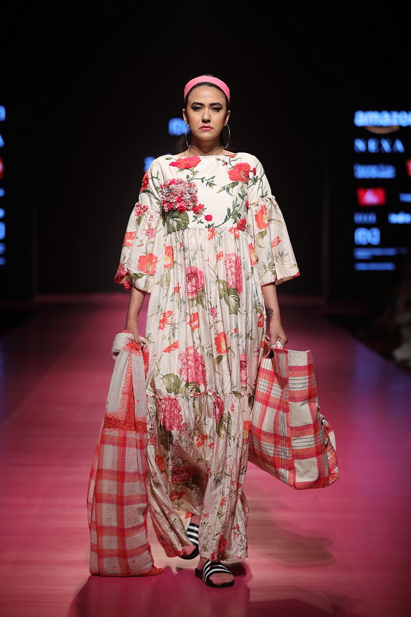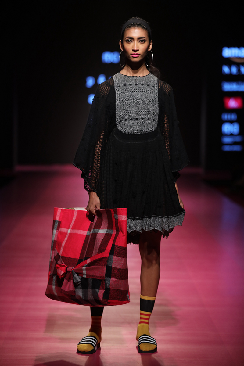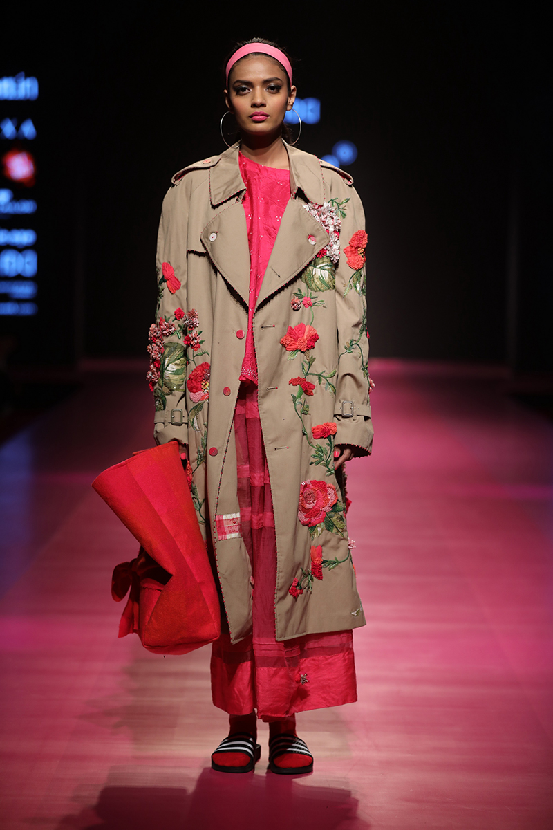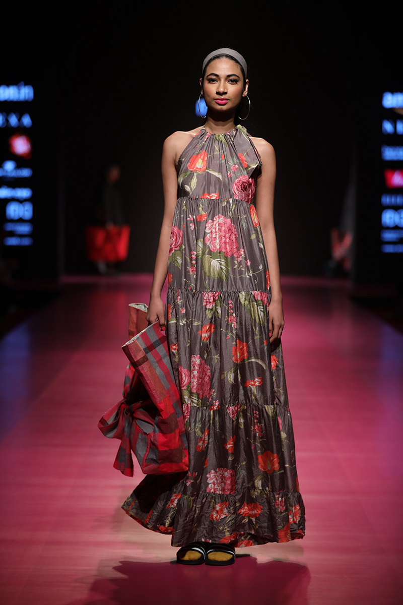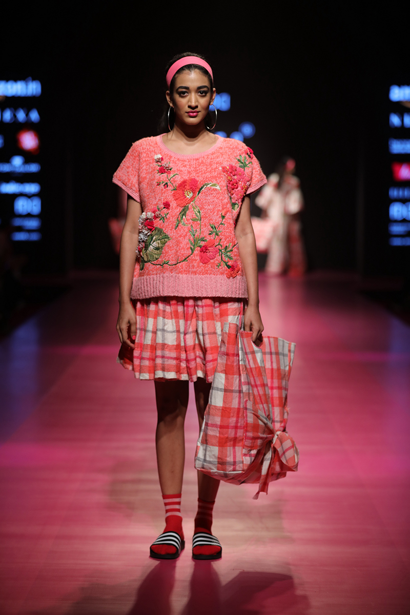 nAW 18 is an attempt to unite the modern with the traditional and international silhouettes through carefully hand crafted clothing using natural fabrics. The resulting designs are finely-detailed with a worn-in quality that makes them very wearable. The fabrics used are all handwoven wool, linens , silk and Khadi cottons woven in different parts of India. Block Printed florals and other bright colors are incorporated to add lightness and to compliment the geometry and seriousness of checks and stripes.n