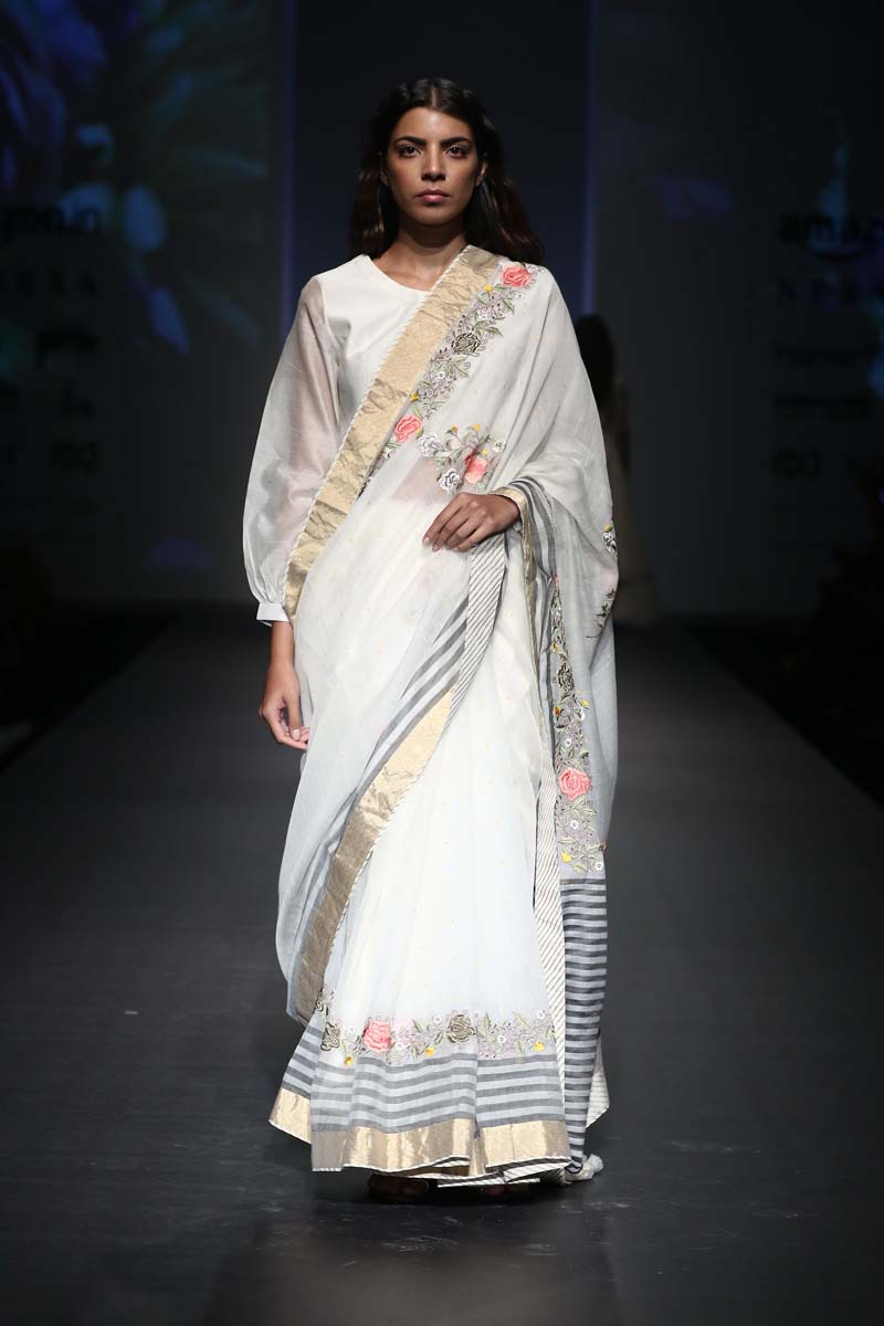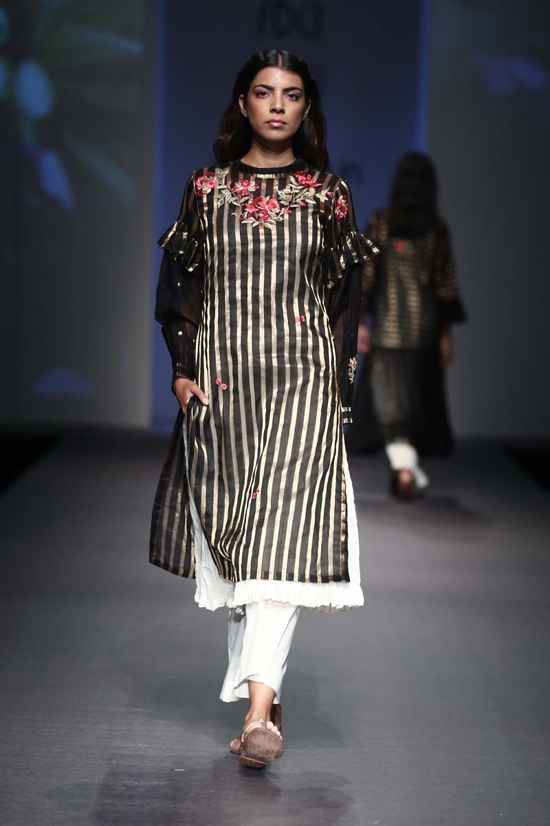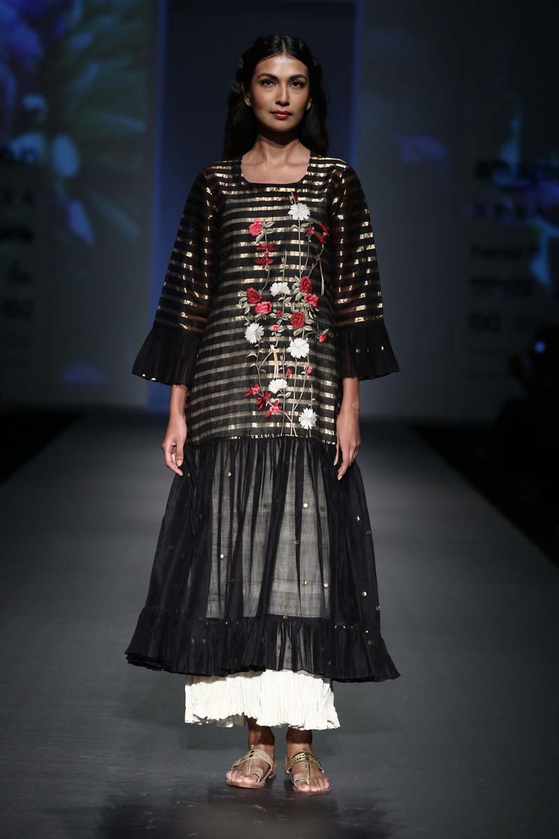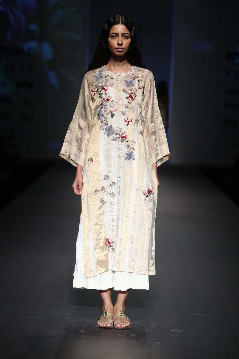 Pratima Pandey is a NIFT, alumni and winner of Grazia Young Awards in 2011 in the category of eco-friendly fashion. Her label Prama lays emphasis on natural fabrics and indigenous embroidery techniques thereby encouraging craftsmanship and sustainability.