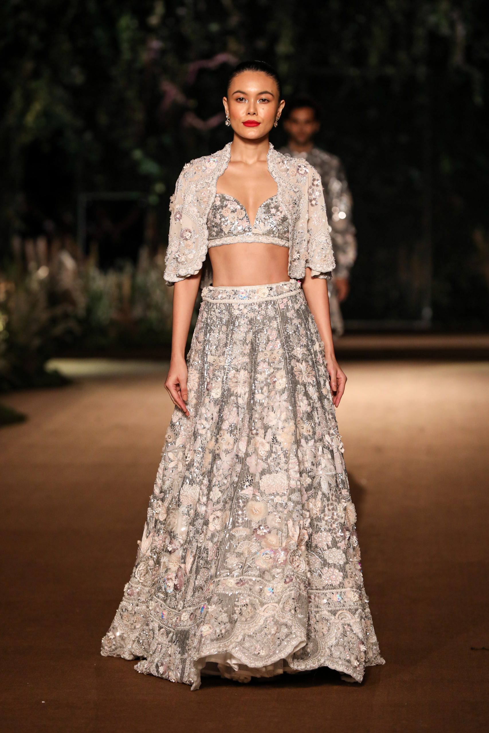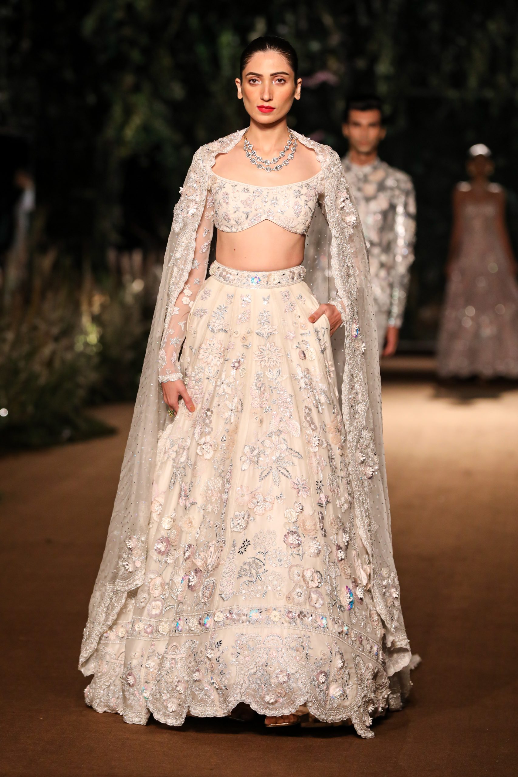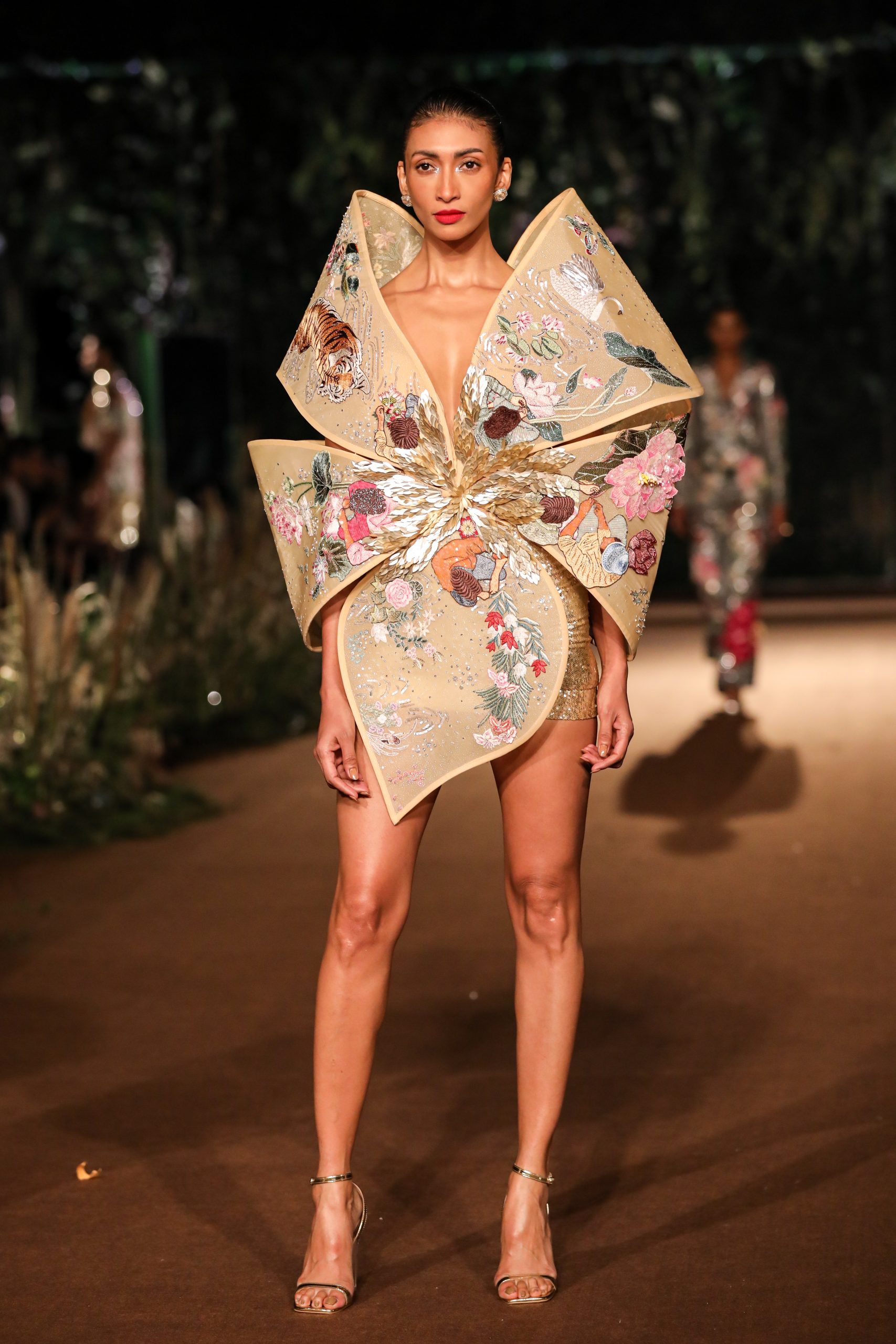 With reality and imagination woven into its fabric, Rahul Mishra’s Couture 2023 collection ‘We, The People’ strives to draw the enablers of couture, the artisans, to the face of its narrative. It envisions them as the juncture where artistic expression meets age-old craft and technical prowess that allows them the godlike ability to turn imagination into reality. The surfaces of the collection are an articulation of the fashion worker’s trance interlaced with their immediate reality.