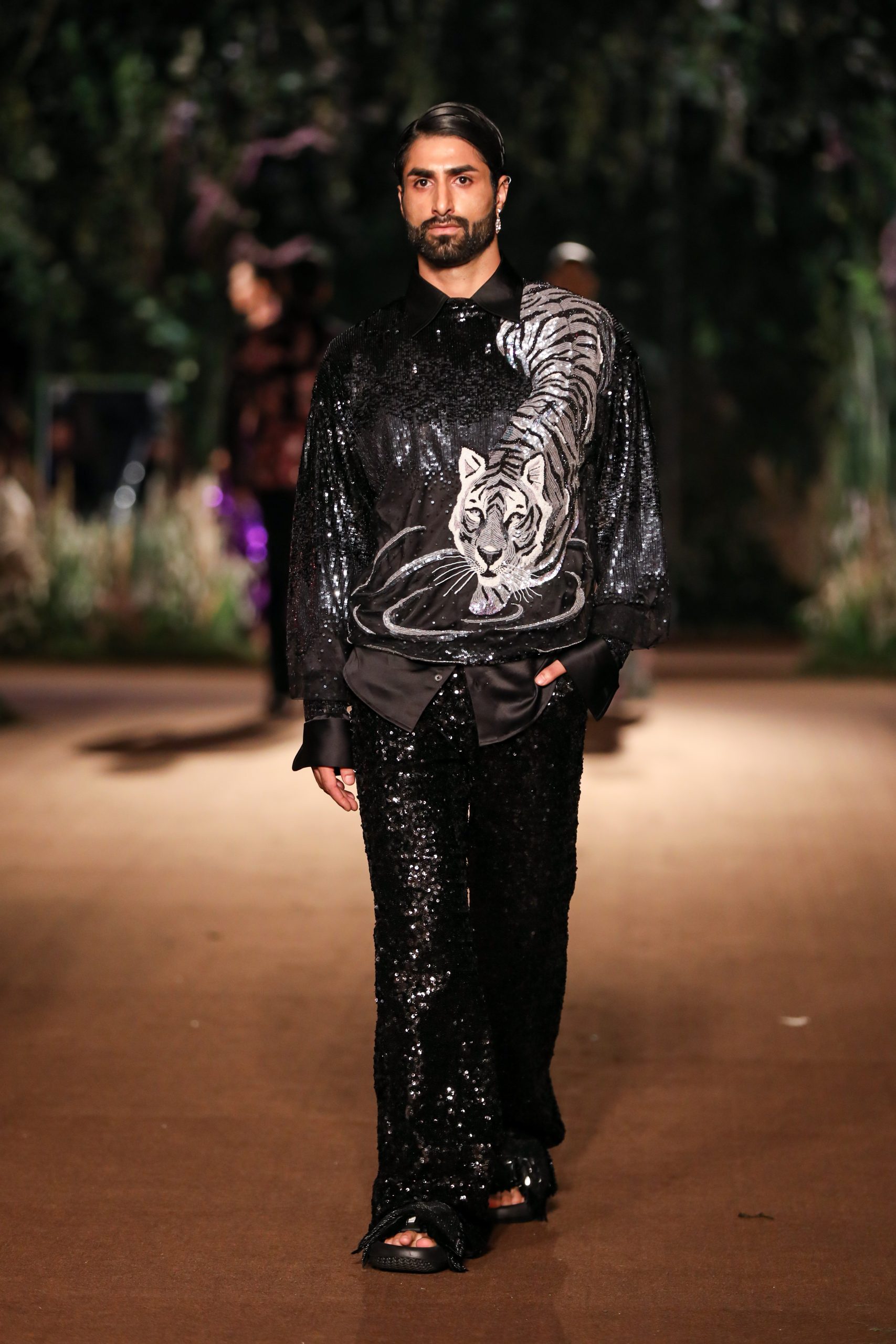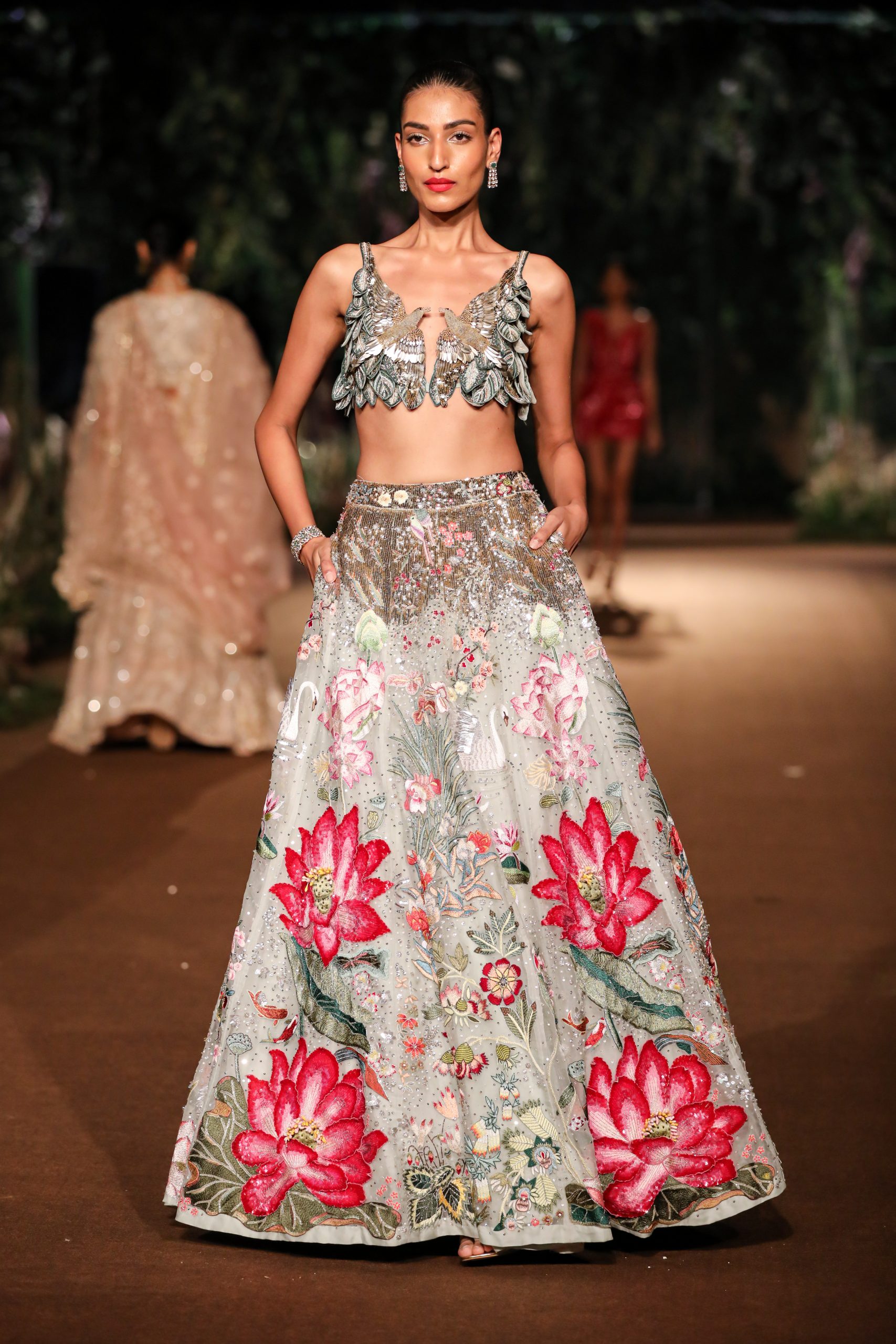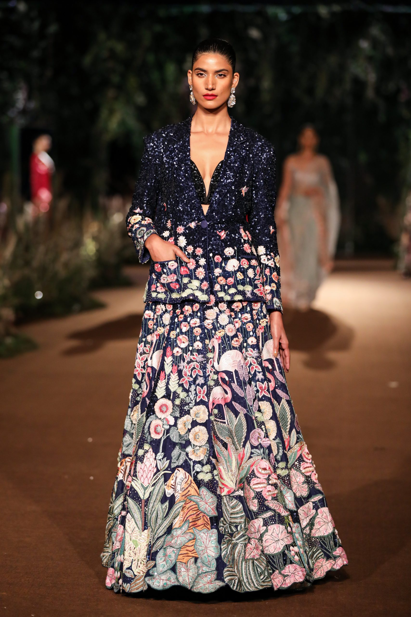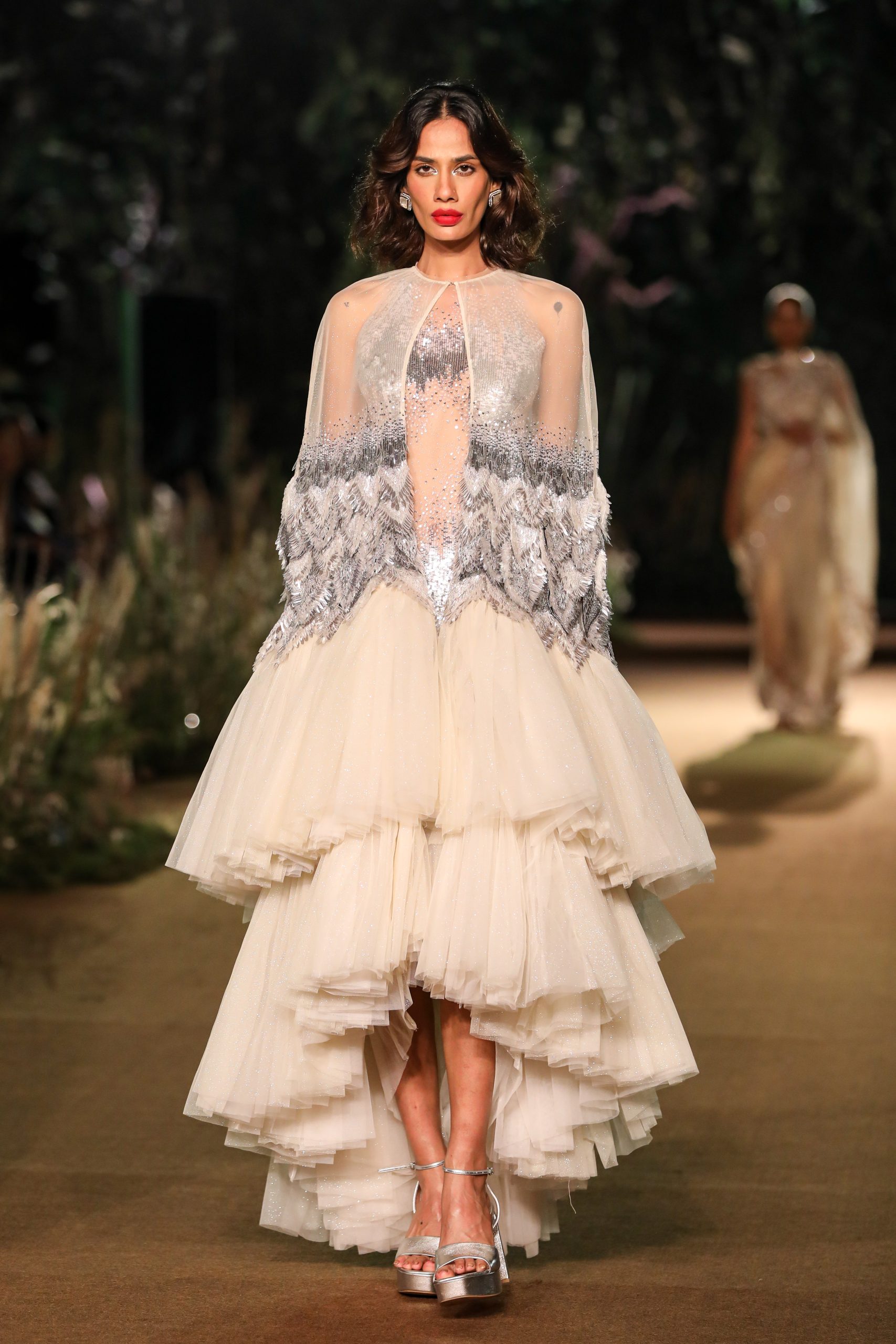 With reality and imagination woven into its fabric, Rahul Mishra’s Couture 2023 collection ‘We, The People’ strives to draw the enablers of couture, the artisans, to the face of its narrative. It envisions them as the juncture where artistic expression meets age-old craft and technical prowess that allows them the godlike ability to turn imagination into reality. The surfaces of the collection are an articulation of the fashion worker’s trance interlaced with their immediate reality.