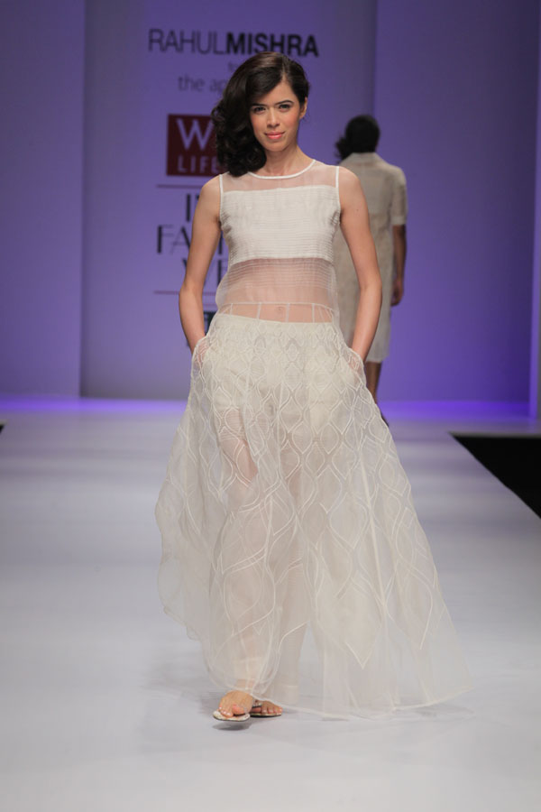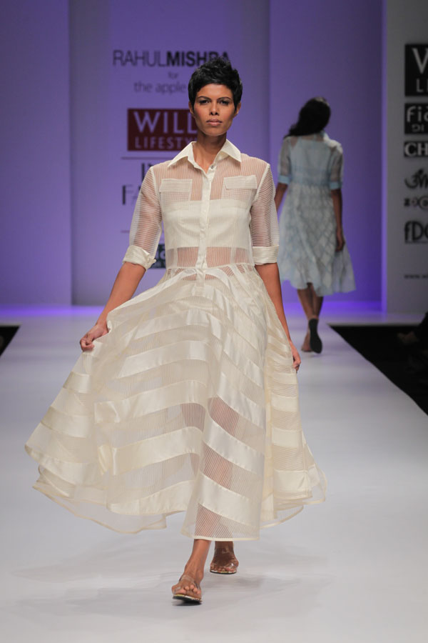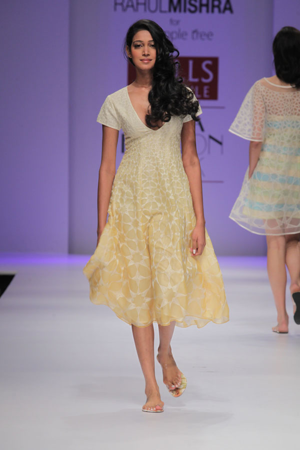 Rahul Mishra, described as the talent to watch out for by French fashion doyen Didier Grumbach. An NID Graduate, won the Best Student Designer award, followed by winning Pride of NID. Rahul went on to be the first Non European to win the Scholarship at Milans Istituto Marangoni. Much rewarded and awarded, Rahul was voted as Pepsi MTV Youth Icon for year 2009, & also won the International Designer of the Year award at IAF, Netherlands. n nRahul was featured in the list of top 20 young Indians who would shape India’s future for VISION-INDIA 2020. In 2010, Rahul was amongst top 9 International Artists invited by the Hong Kong Polytechnic University for prestigious Landmark Exhibition. Recently, a documentary film on Handlooms of India, made for National Geographic Channel profiled his philosophy and work. This film was made in collaboration with UNESCO & Ministry of Textiles, India.n nBUYERS CONTACTnNicky MehtanM: +91 9821146006nE: info@theappletree.co.inn nPRESS CONTACTnRahul MishranM: +91 9324578945nE: info@theappletree.co.in
