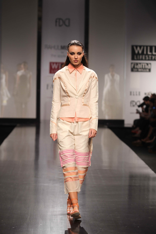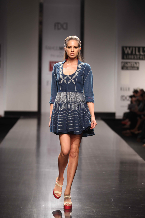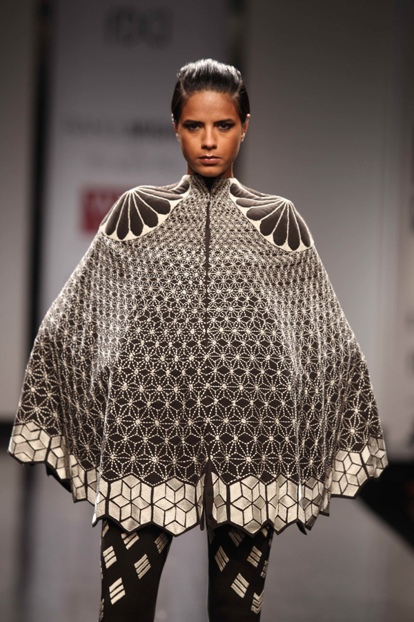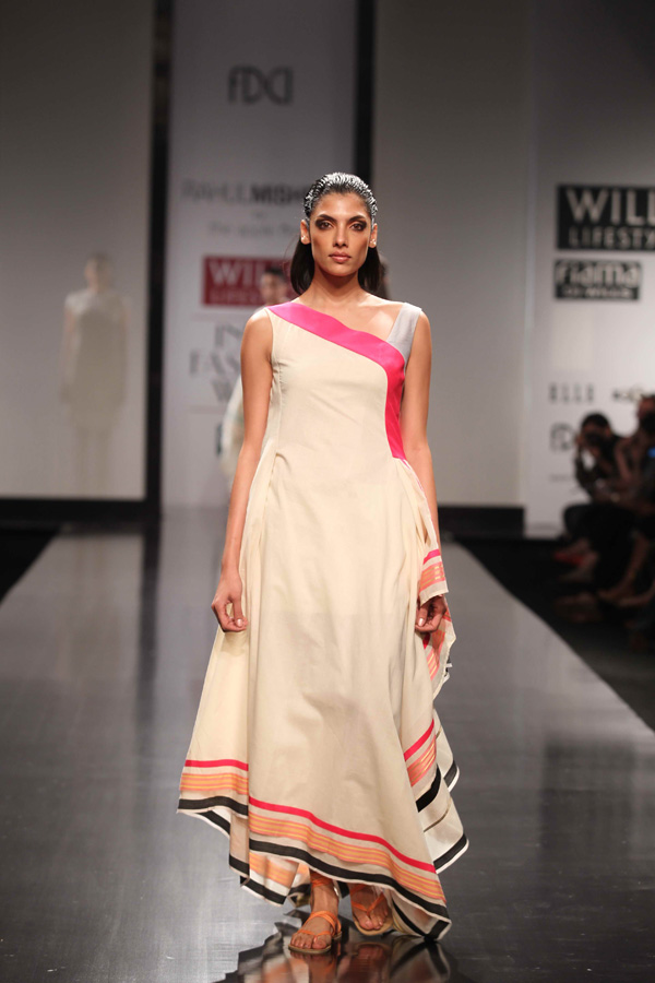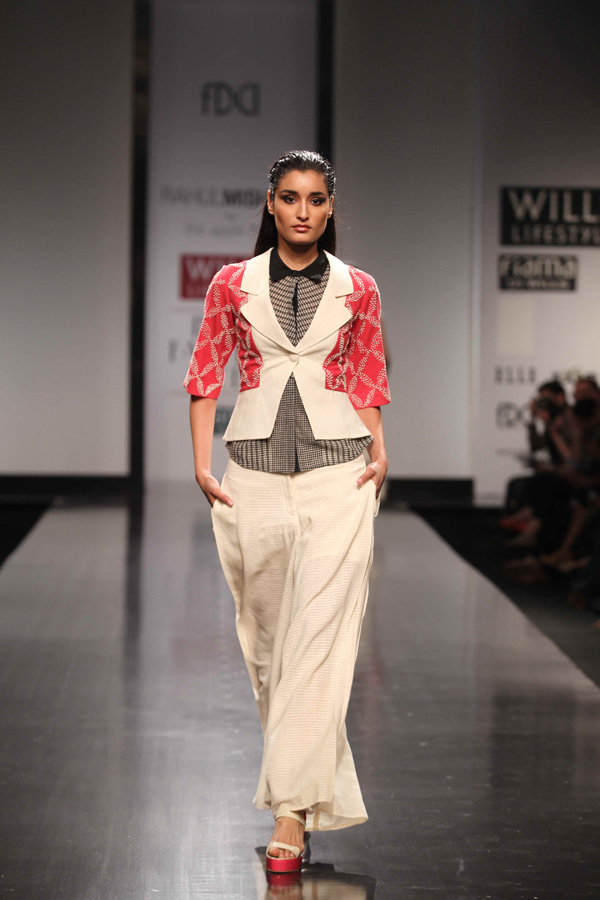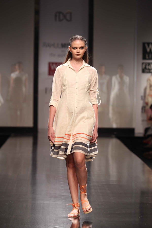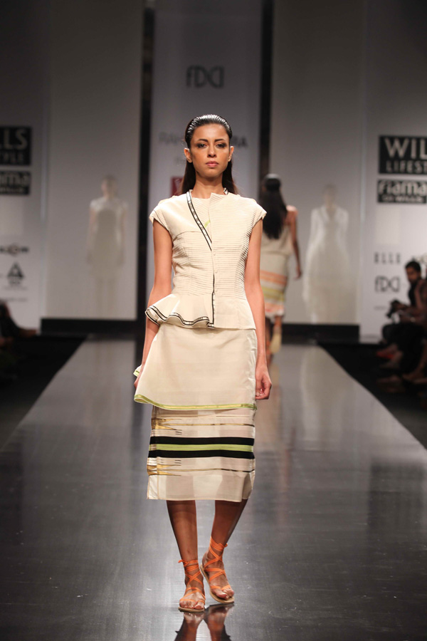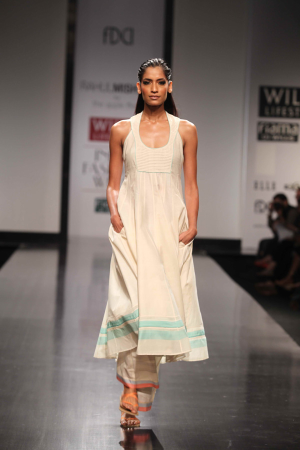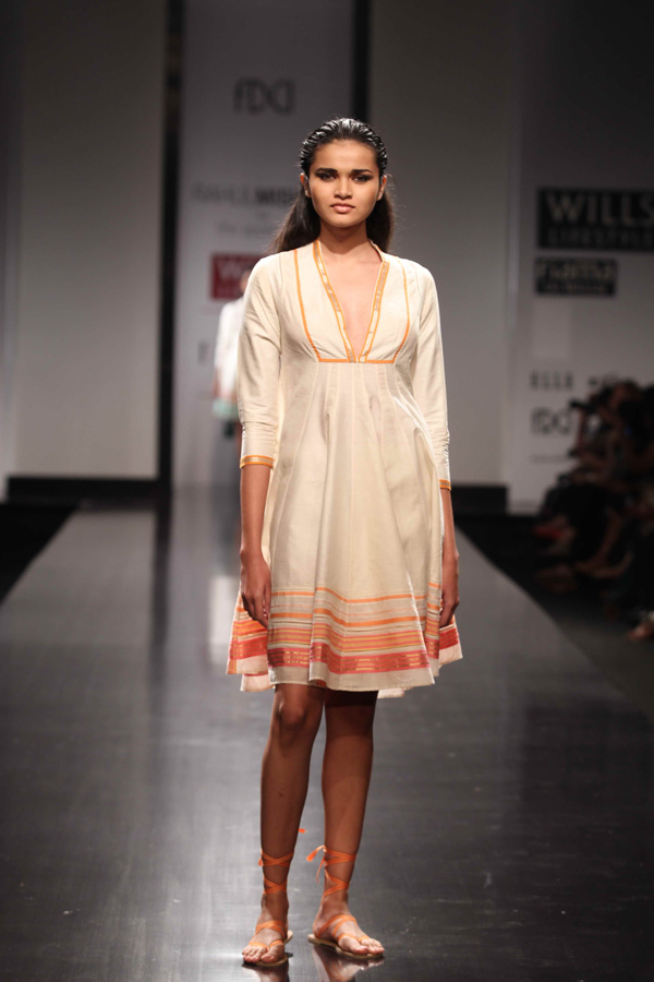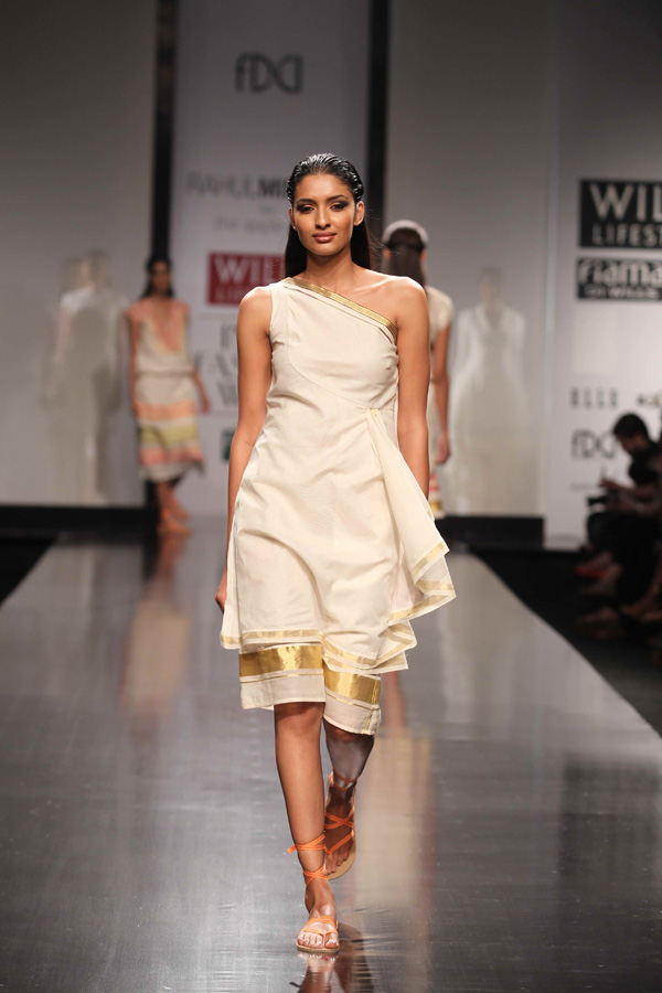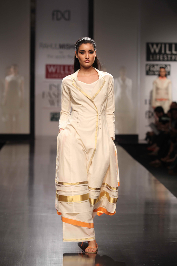 His SS 13 collections reflects slow, sustainable and thoughtful attitude. A strong graphic statement is an integral part of the collection with textiles, dominant of organic and hand-woven Kerala mundus.