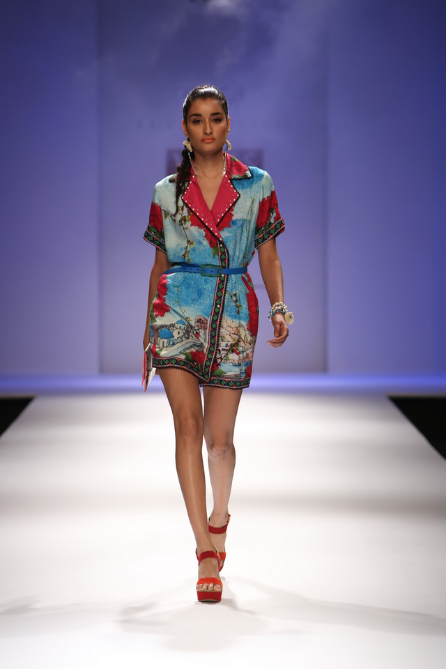 His SS 2013 collection is titled ‘Santorini’ and is inspired by the island’s strong neoclassical and baroque influences. The whole collection is made mostly in ivory accomplished with vibrant colours like Aruba blue, Raspberry, Calypso Coral, Parakeet green, Mandarin and Banana yellow.