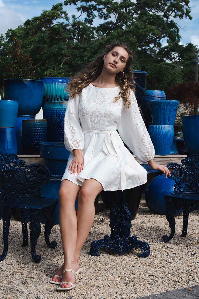 The white-on-white story offered white palazzos with a moulded blouse, while the cutout summer dress and the swirling mini with billowing, dolman sleeves and deep rear neckline were visually appealing.