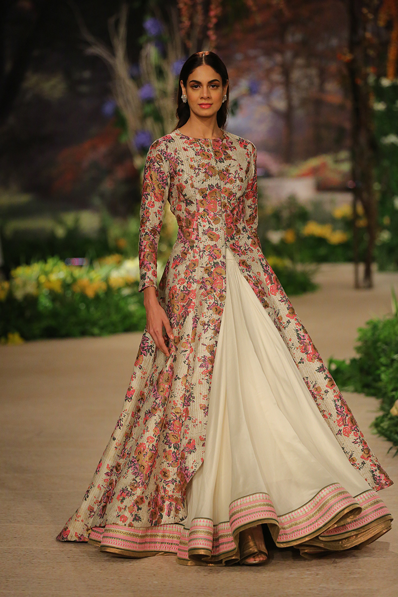 ‘Once Upon a Dream’ by Reynu Taandon, celebrates the surreal and the whimsical florals around the globe. This collection is all about a beautiful blend of pastel tones & tender flora, intricate detailing and surreal sequin work that gently weave in the magic and mysticism of rich luminous hues. Evoking a tranquil spirit , the color palette chosen is a fresh take on the simplicity of nature!