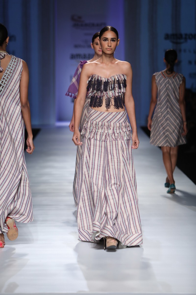 Currently she is known more for her mix & match and innovative textile skills in Indian wear and her international sensibilities for western outfits.
