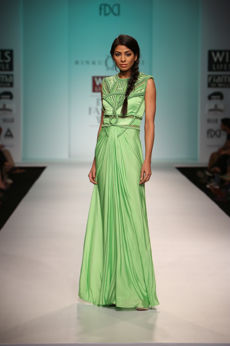 Rinku Sobti stands for creative liberty for every woman, where each garment is treated like a piece of art. She presents her creations on strong and a confidant lady, each one backed by her own personal and professional life. The brand has high imagination input. Her eternal styles stand out from other fleeting trends of the moment. nThe designer’s main markets are Asia, Australia, London and Middle East. n nThis SS14 season the designer is inspired by the beauteous style of using knotting, twisting and roping coupled with my trademark filigree of 3-Dimensional embroidery techniques. The collection comprises of maxis, gowns, jackets, jumpsuits and dresses. The color palette is bright, full of vitality and liveliness. It has been a delight to transform fabric into knots, eventually translating into a luxurious ensemble. Knotting, where fabric runs into each other adds a modern edge to collection for chic yet sweet summer style.n nBuyer’s Contact:nInnu sabharwalnMobile: 9312256734nE-mail ID: rinku.sobti@rinkusobti.com nWebsite: www.rinkusobti.comn nMedia Contact:nNavleen ChadhanMobile: 9911725052nEmail ID: navleen.chadha@rinkusobti.comnWebsite: www.rinkusobti.com