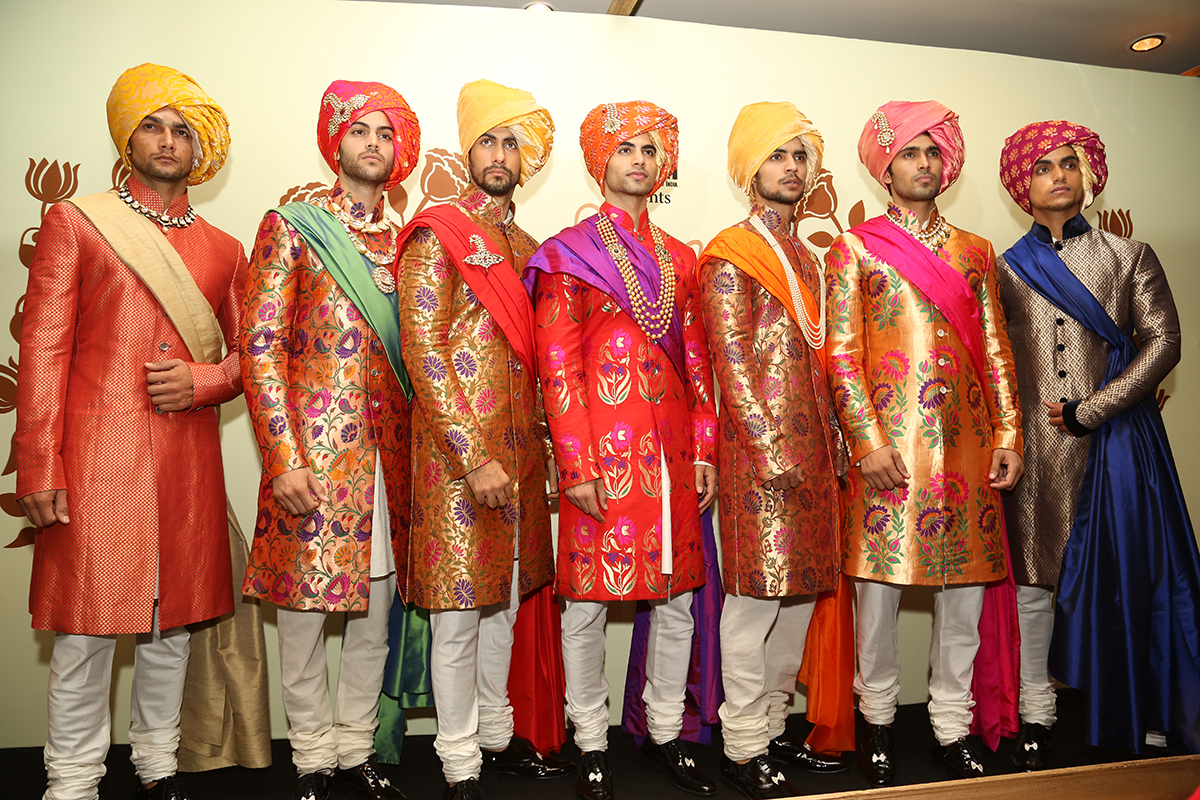 nRohit draws from influences, wide and varied. From the village crafts and traditional methods of design that India is so rich in, to the transient phenomenon of the sub continents urban landscape, the designer brings them all to life in his spectacular yet original language.n nThe collection titled Nazar is actually representative of a subtle and gentle play on tonal shades of ivory and glimpses of gold. Organic in its structure and form it is based on the age old concept of the Jharoka. nIt has patterns and motifs taken from jaalis and antique marble screens. The ensembles are layered with fabrics like muslin, chanderi and voilles . There is tonal embroidery with an ample and generous use of gold. Silver and Gold sequins lend a gentle and serene sparkle to the otherwise understated and demure feminine feel of this couture collection. The men strut about like guilded peacocks, in their opulent and glamorous brocades.n nIt is as if being transported into the Durbar of a kingdom long lost to the ravages of time only to be born again even if its just only for a moment, one Nazar…. n n n