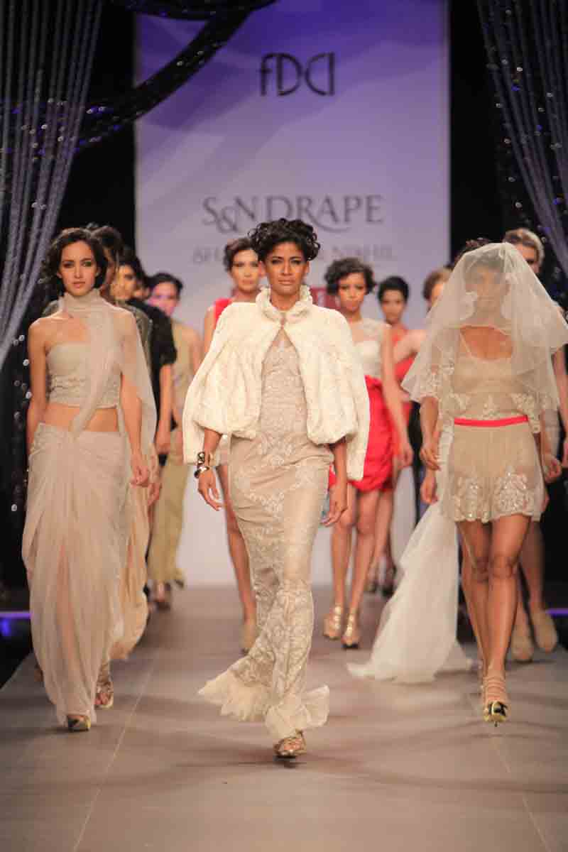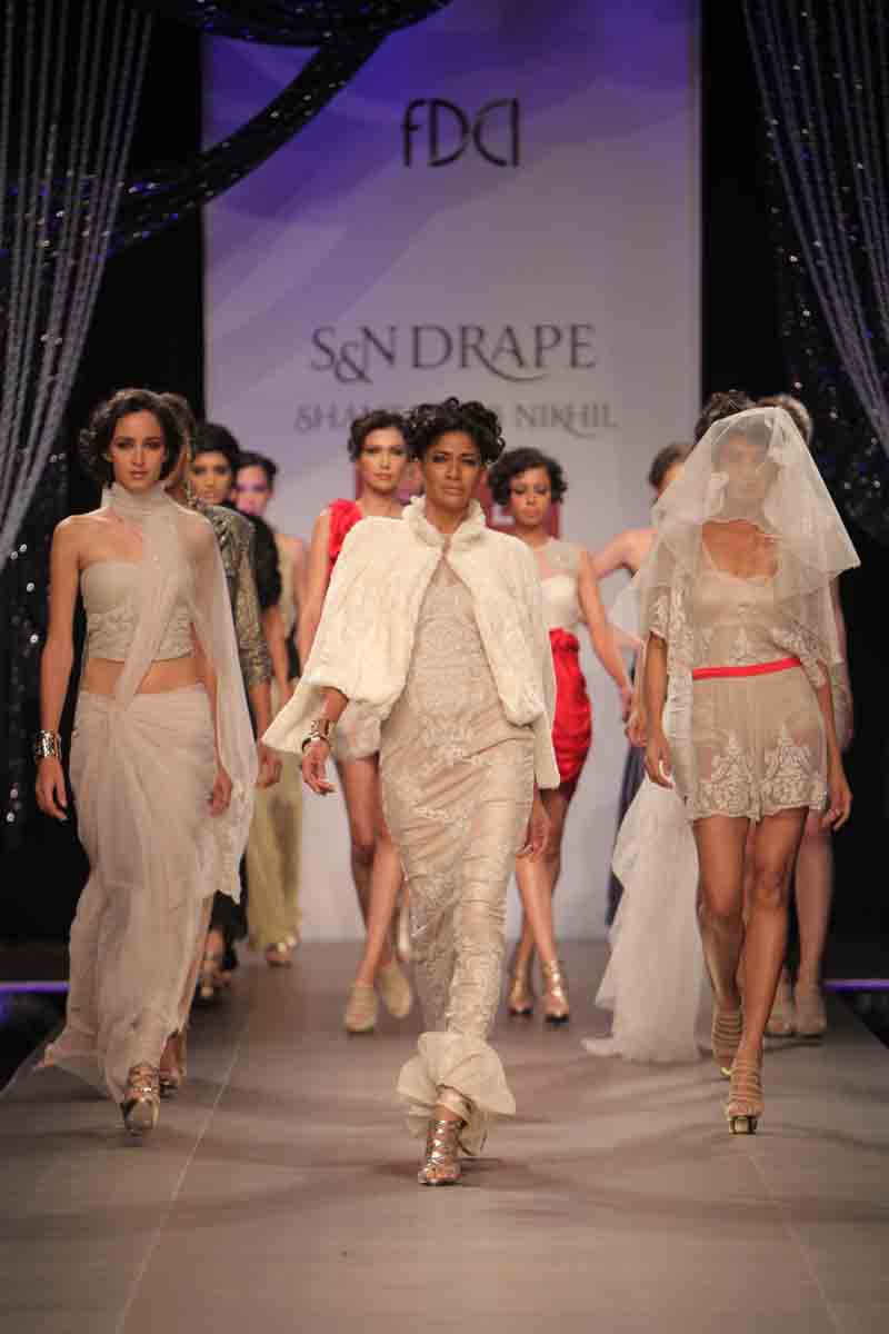 Culling the essence and emotions of Indian culture and marryingnit with a modern western sensibility, Shantanu & Nikhil havena deeper, less obvious take on this new exotic fusion. Theirnensembles present eternal femininity draped in lush classicism.nS & N Drape, the bridge brand of Shantanu & Nikhil philosophizesnthe use of Indian drapes in a modern setting which is extremelynbody conscious and sensual, portraying the glamorous, edgy,nexciting, young and sexy woman of today. Drawing inspirationnfrom the Indian vintage colours and culture, the clothes opposenthe rigid unyielding style to being cheerful and sexy, exuding realnfashion through mainstream silhouettes and drapes.
