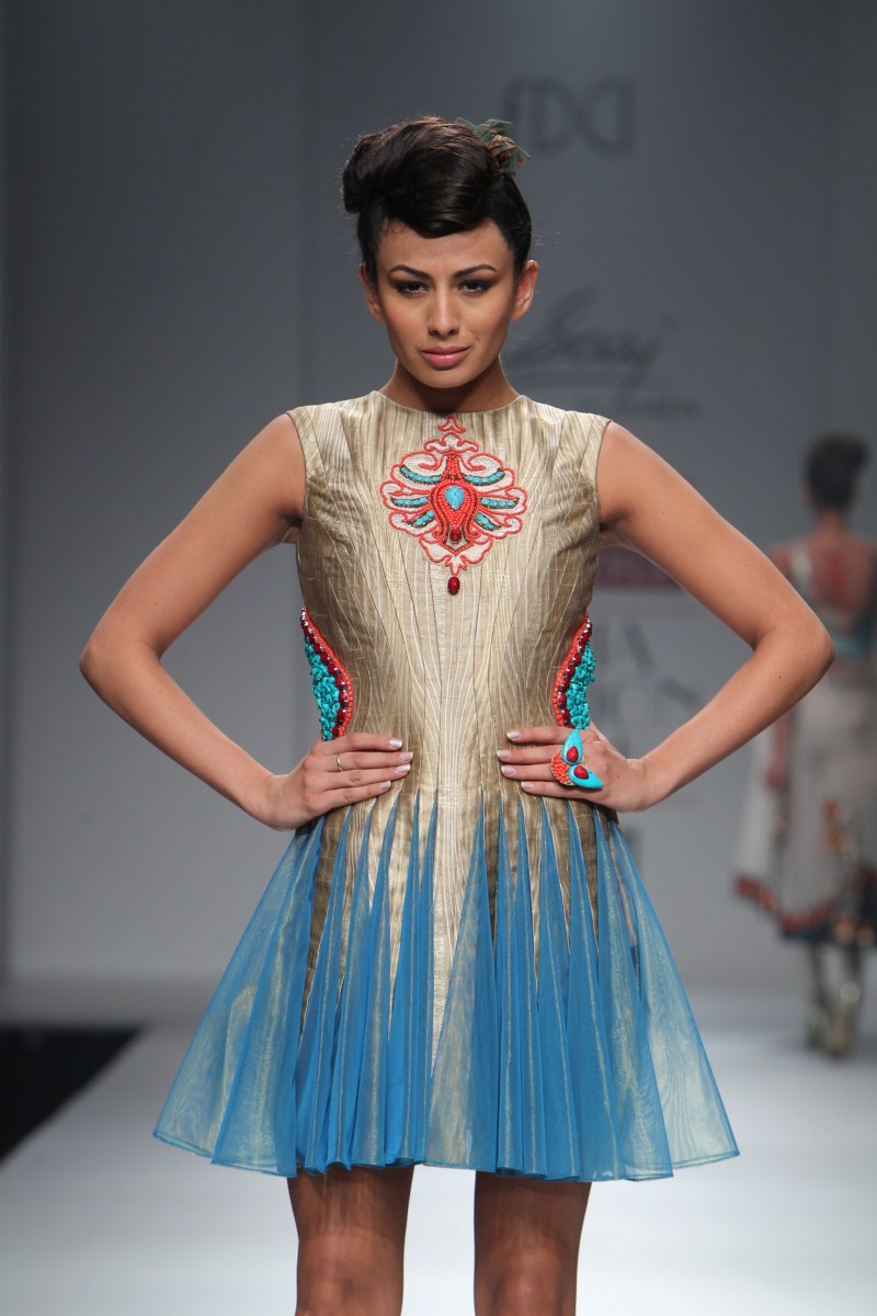 Ankita Chaudhry believes that “Colors are the route and the portrayal of happiness”; therefore the essence of her label SAAJ is the playful, feminine and eclectic use of colors. Having learnt how to work the trade in SRCC, Ankita polished her inborn creative and aesthetic capacities at the NIFT, New Delhi, gaining expertise in the field of fashion and design.n nSAAJ today not only capitalizes Ankita’s creative traits to conjure masterpieces of great elegance and grandeur, but also SAAJ team’s exceptional & immense tact and insight to steer the company on to a path of growth and success.n nBUYERS CONTACTnN: Avantica ChaudhrynM: +91 9711194298nE: saajbyankita@gmail.comnW: www.saajbyankita.comn nPRESS CONTACTnN: Ankur TalwarnM: +91 9811804811